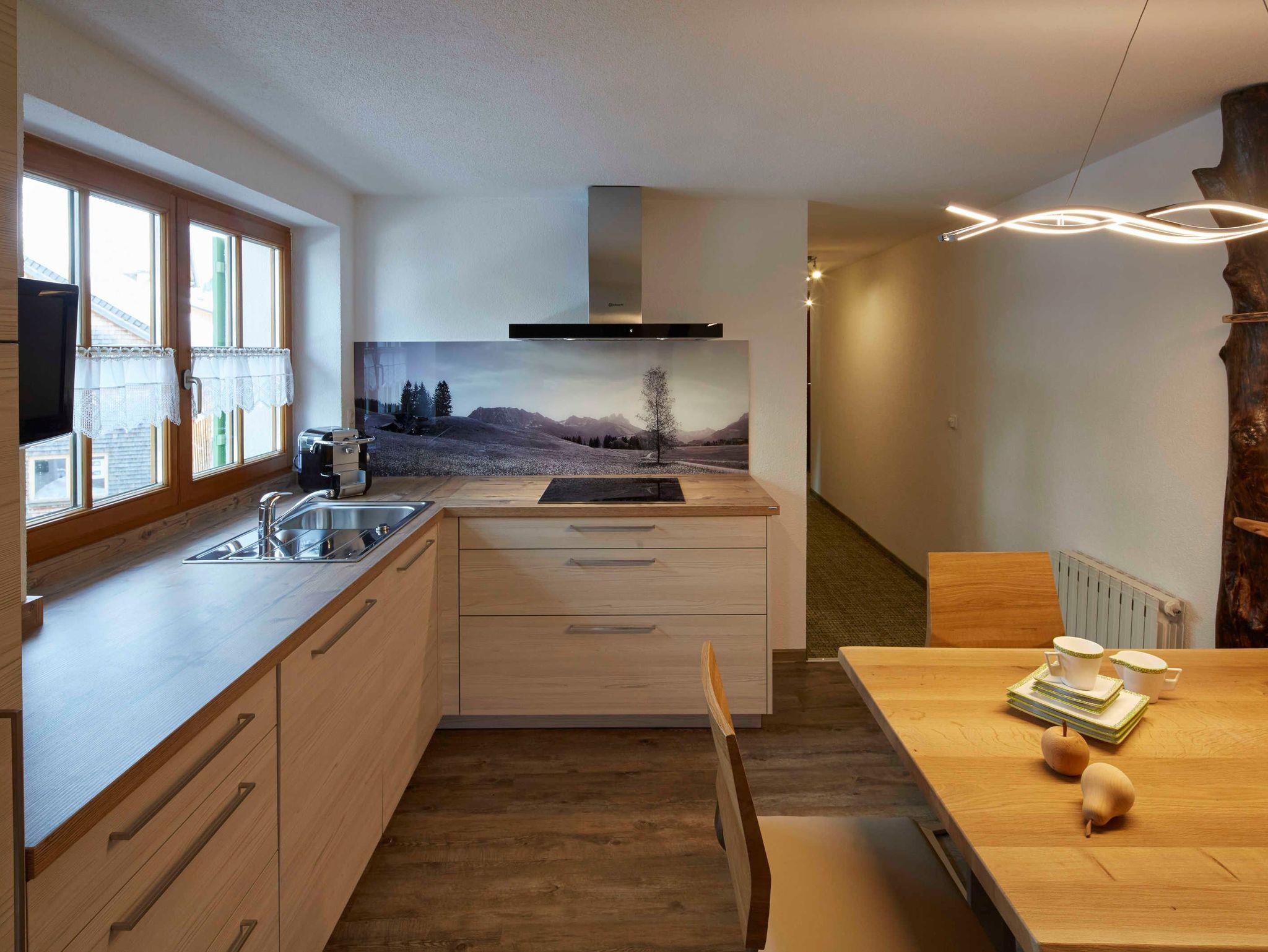 Große Küche mit Induktionsherd, Spülmaschine, Mirko, Wasserkocher, Kaffeemaschine, Kühlschrank.Offener Wohn und Essbereich ergänzen das Angebot, 95m².