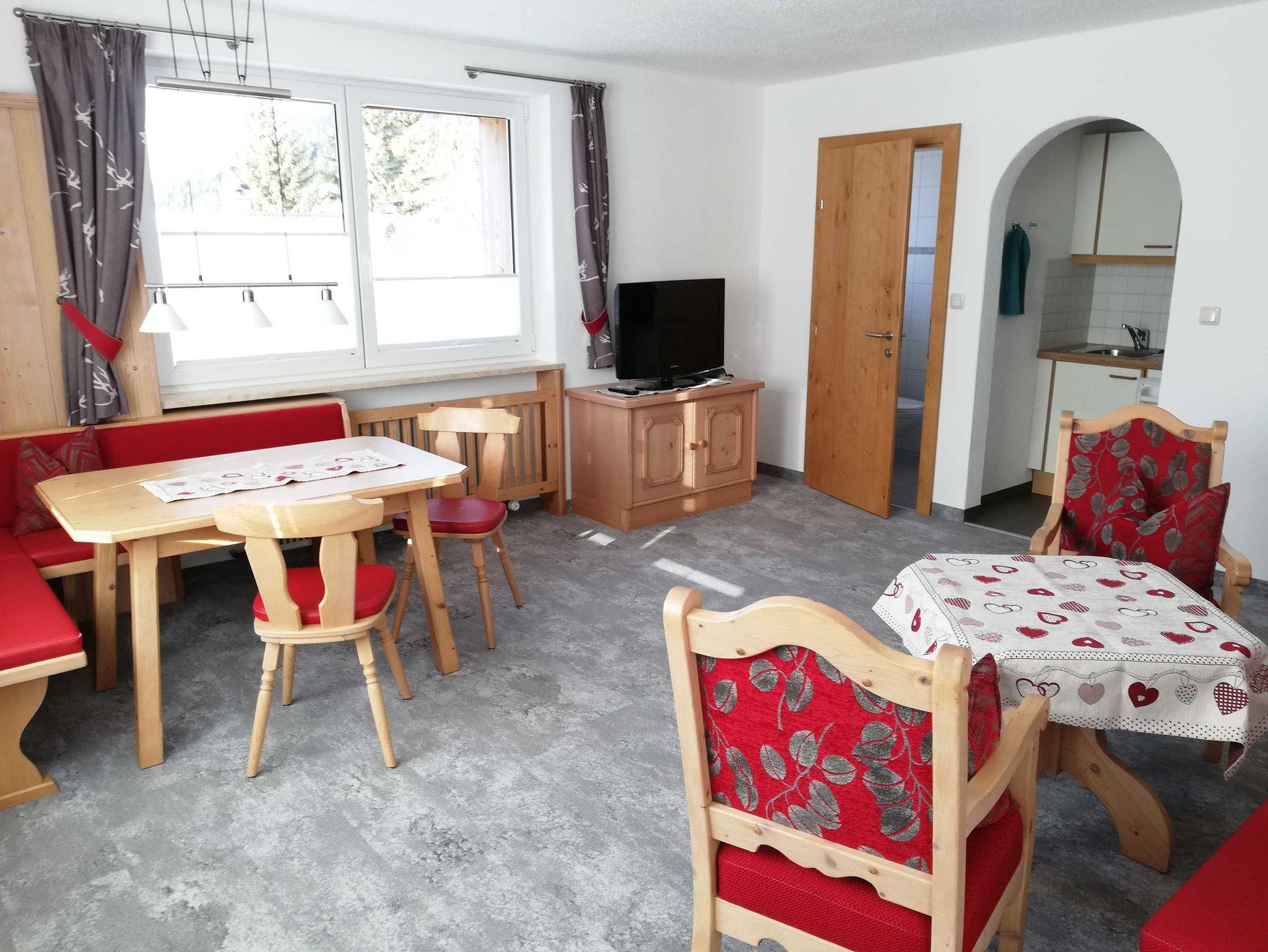In der hellen, freundlich und liebevoll renovierten Ferienwohnung mit ca. 55 m² gibt es ein getrenntes Schlafzimmer. Das Wohnzimmer mit gemütlicher Couch lädt zu entspannten Stunden mit Freunden oder der Familie ein, am Essplatz für vier Personen genießen Sie die Morgen- und Abendsonne rund um Tannheim. Die neu renovierte, geräumige Küche ist modern ausgestattet mit Vier-Platten-Ceranfeld, Backofen, Geschirrspüler, Kühlschrank mit Gefrierfach, Toaster, Wasserkocher und Kaffeemaschine. Das frisch modernisierte Tageslichtbad verfügt über eine ebenerdige Dusche, WC und Fön, Hand- und Badetücher liegen bereit. Über das Wohnzimmer gelangen Sie auf den möblierten Südbalkon, von dem aus Sie die Ruhe und den Blick auf die Berge genießen können.
