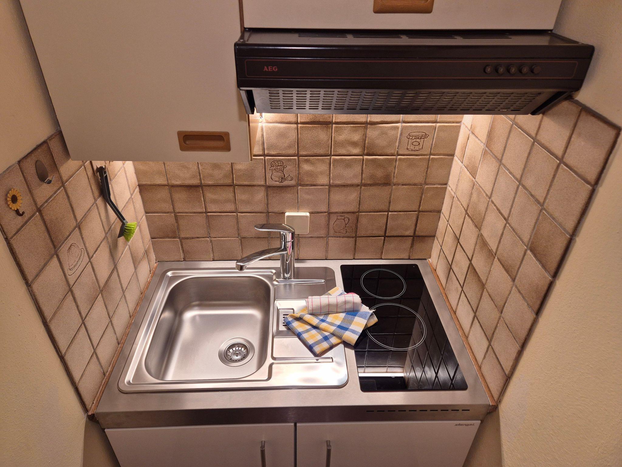 Diese Ferienwohnung verfügt über ein Schlafzimmer, ein Wohnschlafzimmer, DU/WC, Kochnische, Südbalkon schnelles Internet (Glasfaser) 38m²