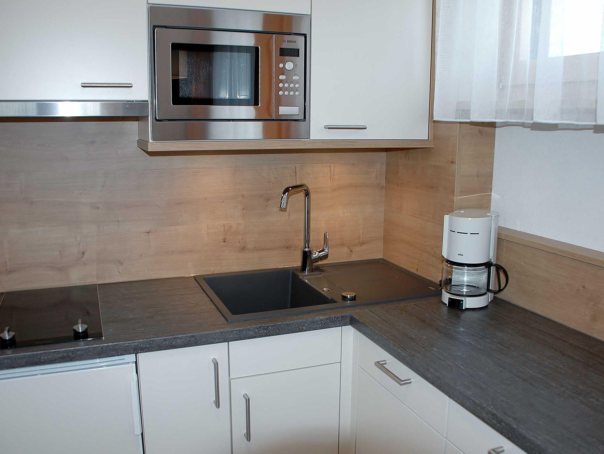 Helles Einraum-Appartement (ca. 30 m²) mit Morgensonne und Blick über Bach und Wiesen zum Neunerköpfle. Wohn-Schlafraum mit Doppelbetten, Sitz-und Essecke, Kochnische, Dusche/WC, Ostbalkon, TV/Radio, Telefon.