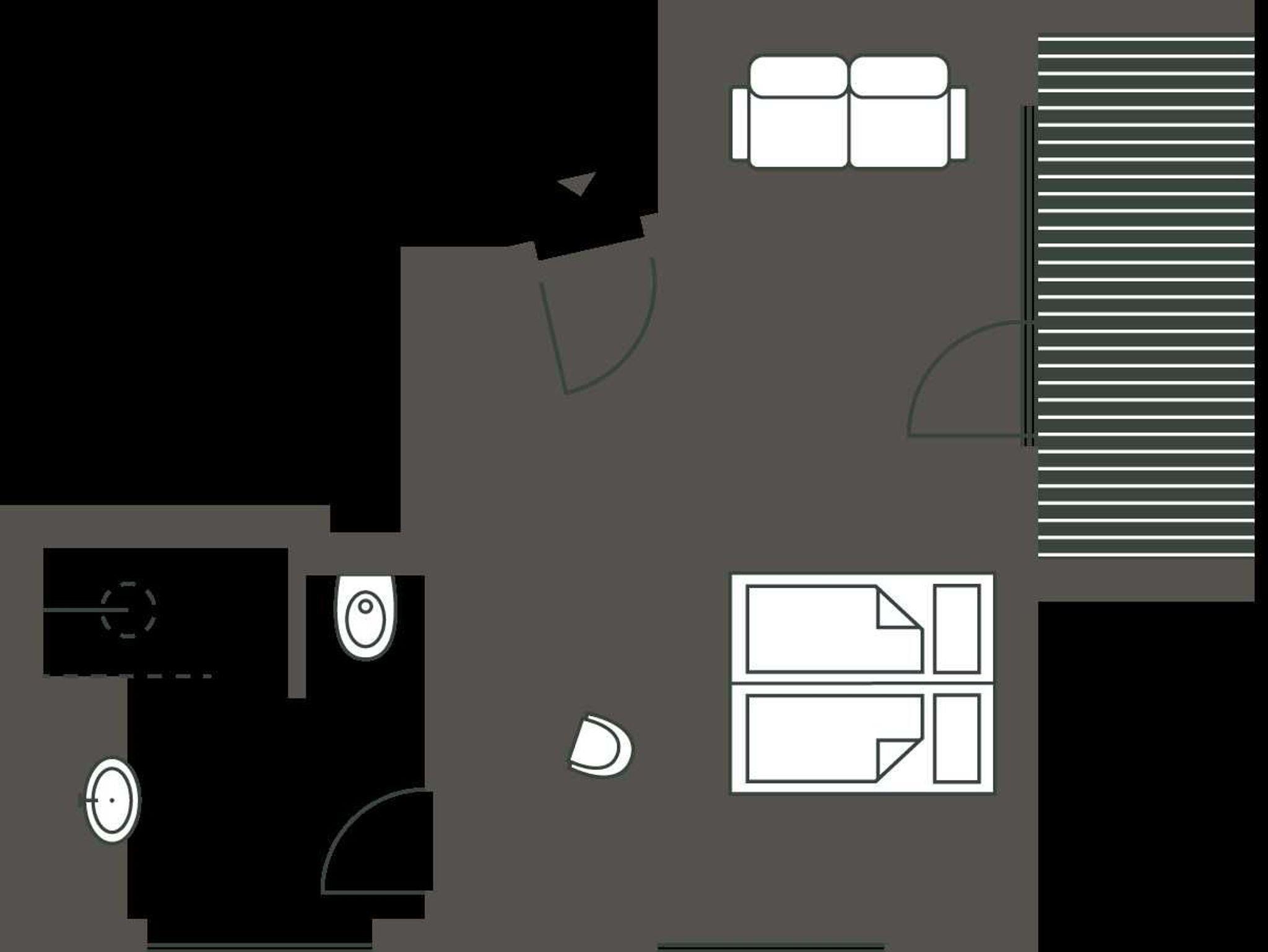 Das Doppelzimmer bietet mit ca. 28 qm Platz für 2 Personen und