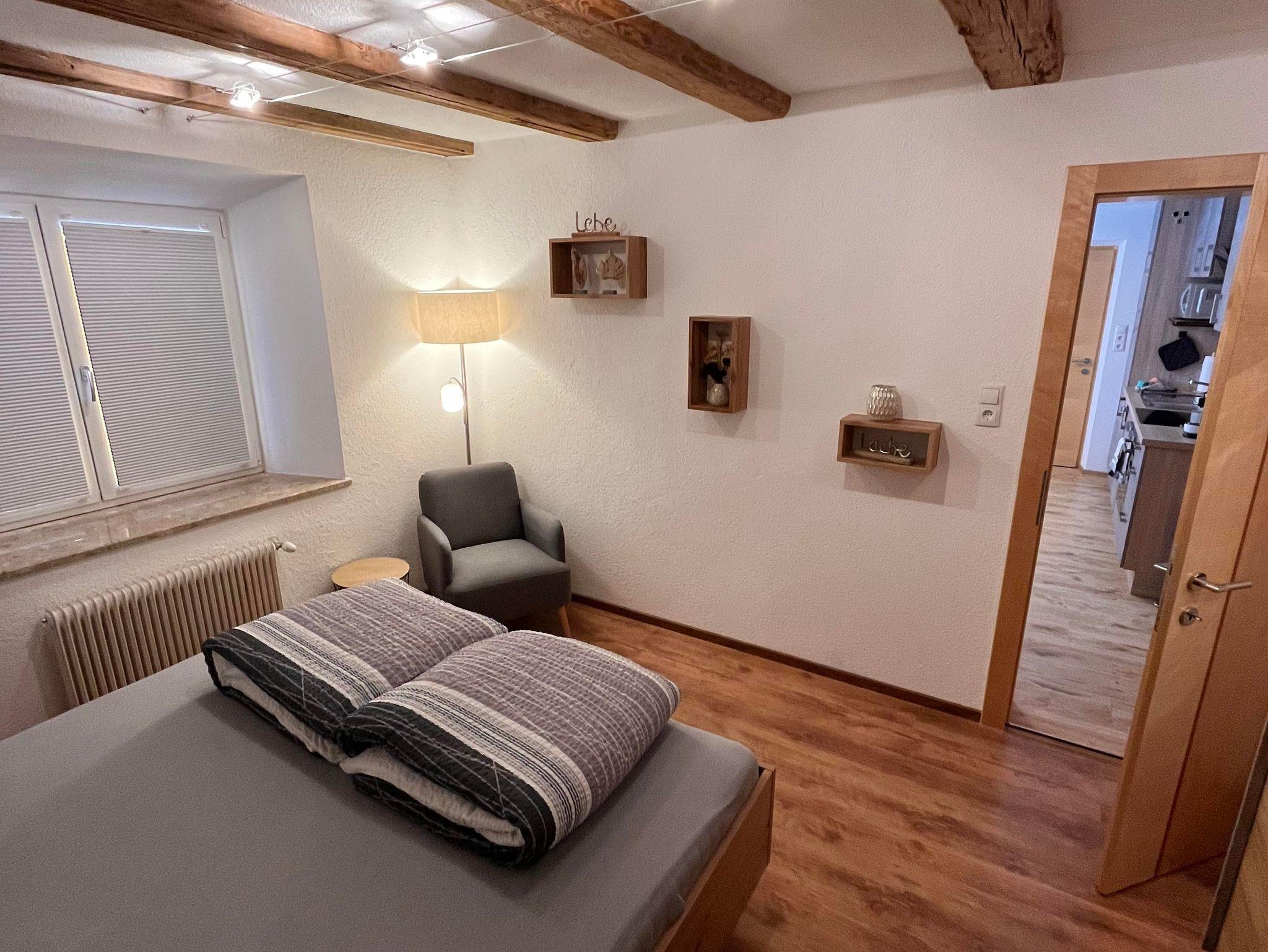 Das Apart Mark verfügt über eine Wohnküche (mit Schlafcouch), ein Schlafzimmer und eine Dusche mit WC.