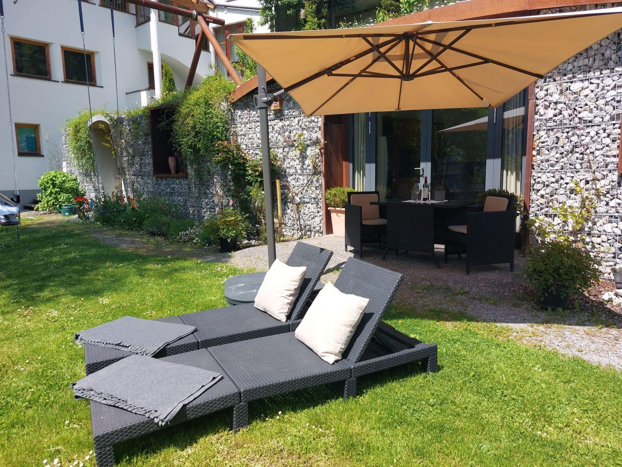 Ihr persönlicher 100m² große Garten bietet mit Feuerstelle, Grillmöglichkeit, und Riesenschaukel direkt vor der Haustüre alle Vorraussetzungen für Ihren ganz speziellen Erholungsurlaub in den Tiroler Bergen.