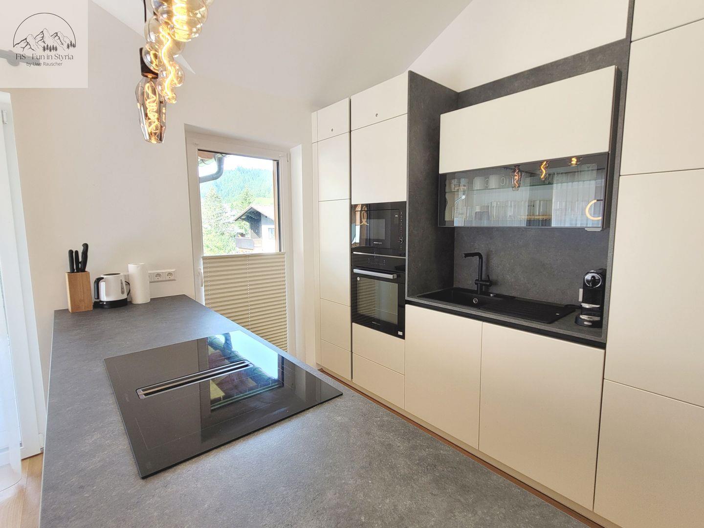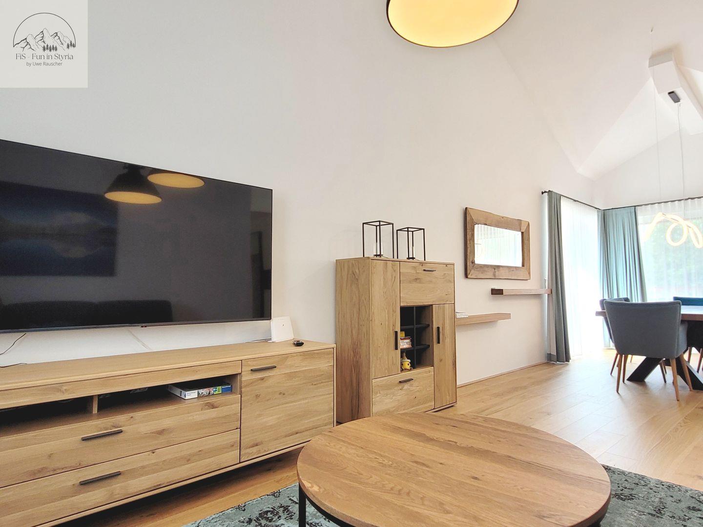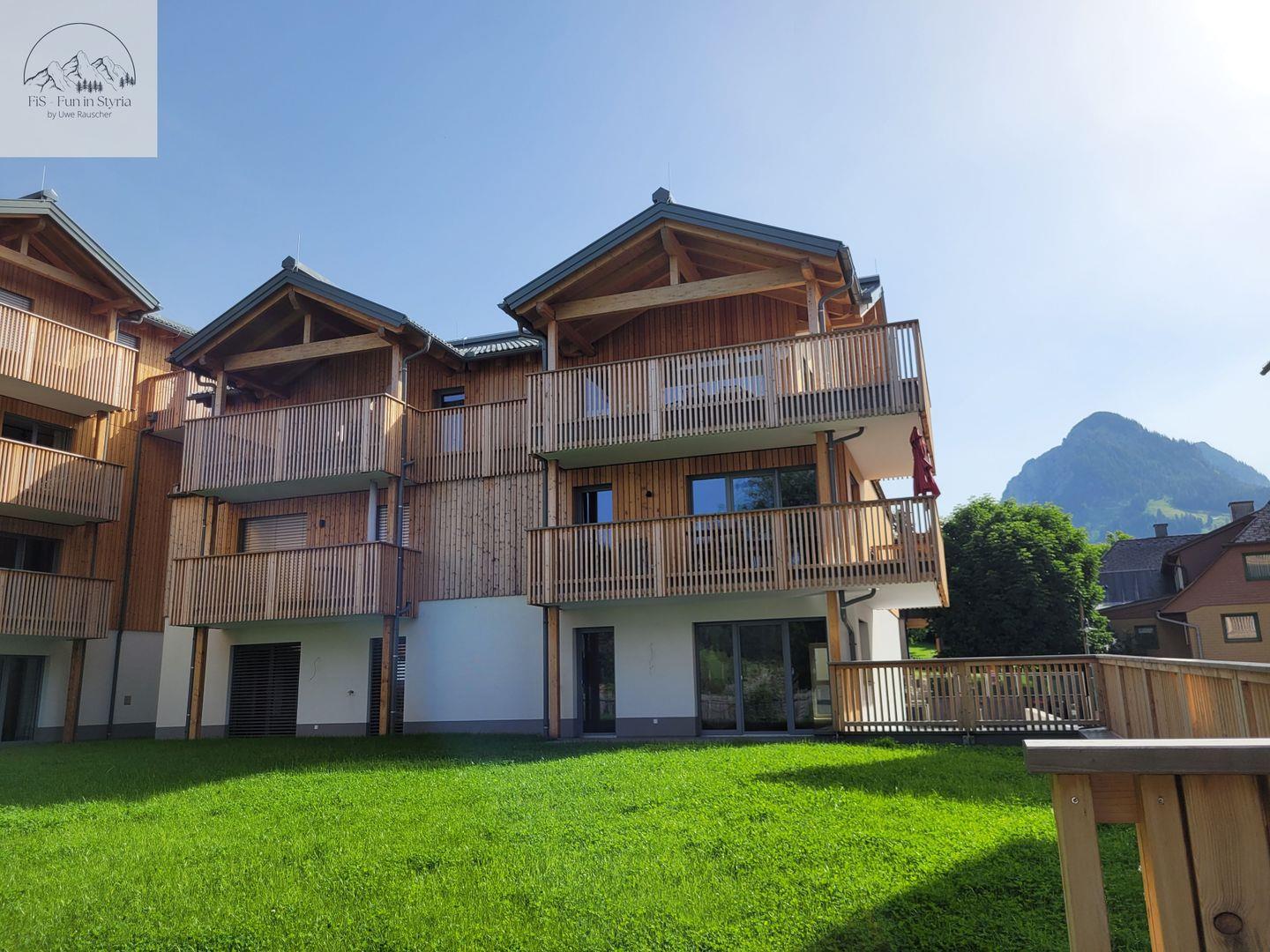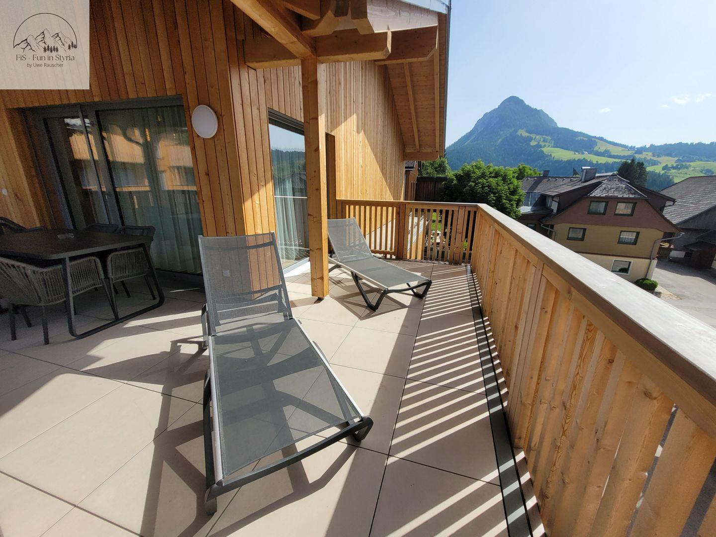 Eines der Highlights ist der überdachte Balkon, von dem aus Sie einen außergewöhnlich guten Blick auf die umliegende Berglandschaft, das Tal und den Garten genießen. Auch eine Liegewiese und Gartenmöbel stehen bereit. Die Lage eignet sich ideal für Aktivitäten zu jeder Jahreszeit: Der Skilift ist nur 200 Meter entfernt, und im Sommer verlocken zahlreiche Wander- und Radwege, Wasserfälle, botanische Gärten sowie Seen in der näheren Umgebung zu abwechslungsreichen Ausflügen. Restaurants, Spielplätze und weitere Einkaufsmöglichkeiten sind ebenso wie der nächste öffentliche Nahverkehr und ein Arzt in weniger als 200 Metern erreichbar. Einkaufsmöglichkeiten finden Sie im ca. 7 km entfernten Bad Mitterndorf.