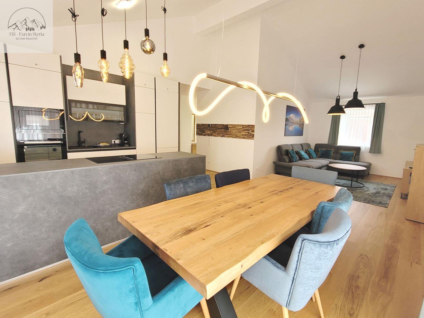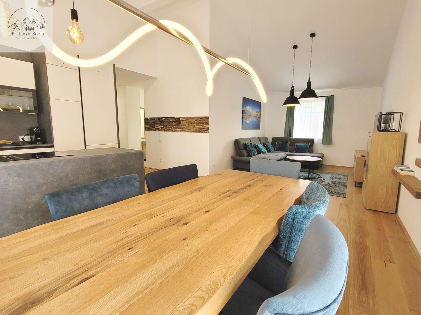 Das Penthouse Apartment Bergkristall by FiS – Fun in Styria empfängt Sie in exklusiver Lage auf 900 Metern Höhe im idyllischen Tauplitz im Ausseerland, Bad Mitterndorf. Das großzügige Penthouse bietet mit 120 m² Wohnfläche und drei komfortablen Zimmern ideale Bedingungen für bis zu sechs Übernachtungsgäste. Die Unterkunft liegt in einem modernen Neubau aus dem Jahr 2023, der nach neuesten Standards errichtet und ausgestattet wurde und garantiert zeitgemäßen Wohnkomfort sowie ein gepflegtes Ambiente.