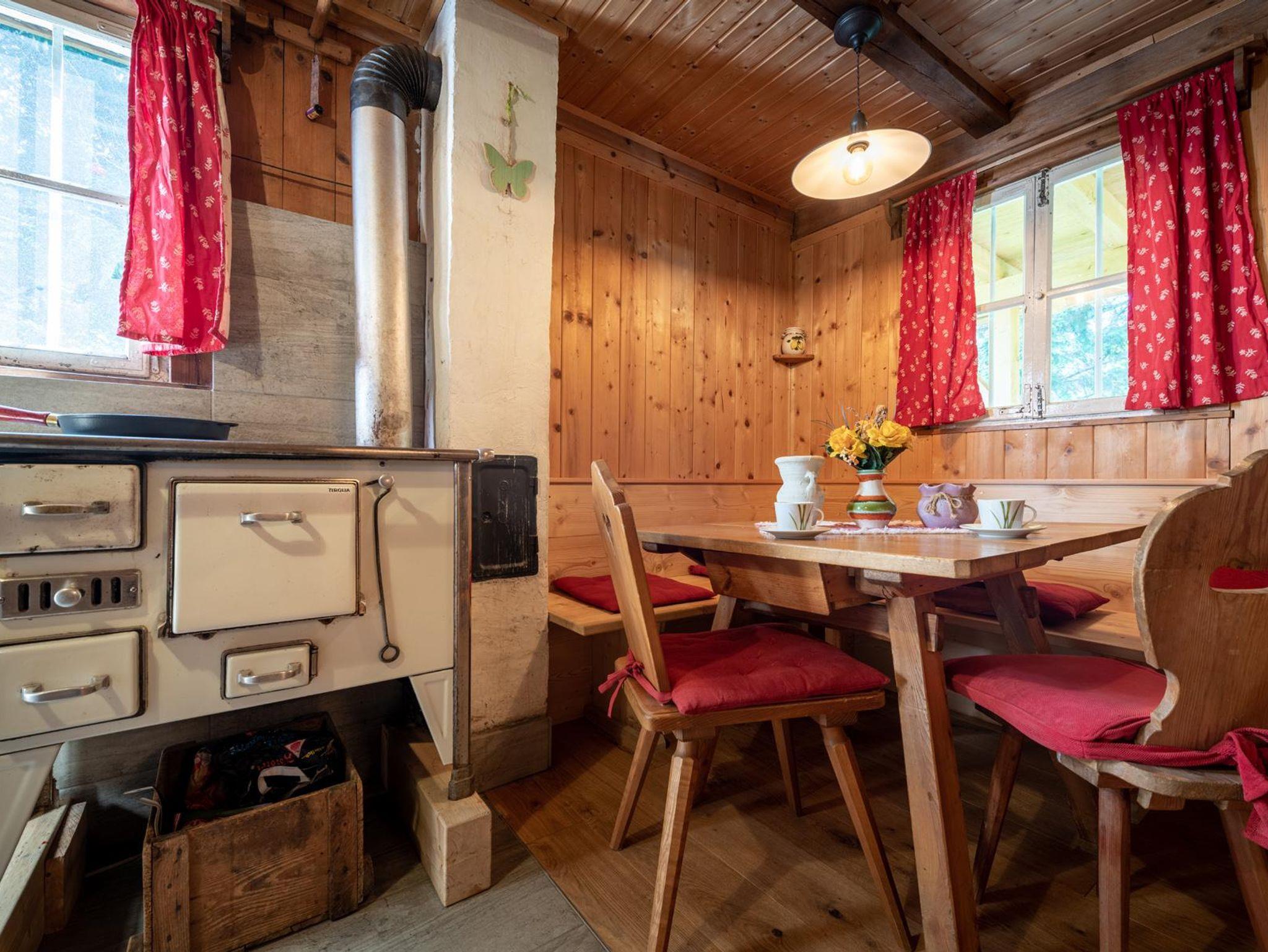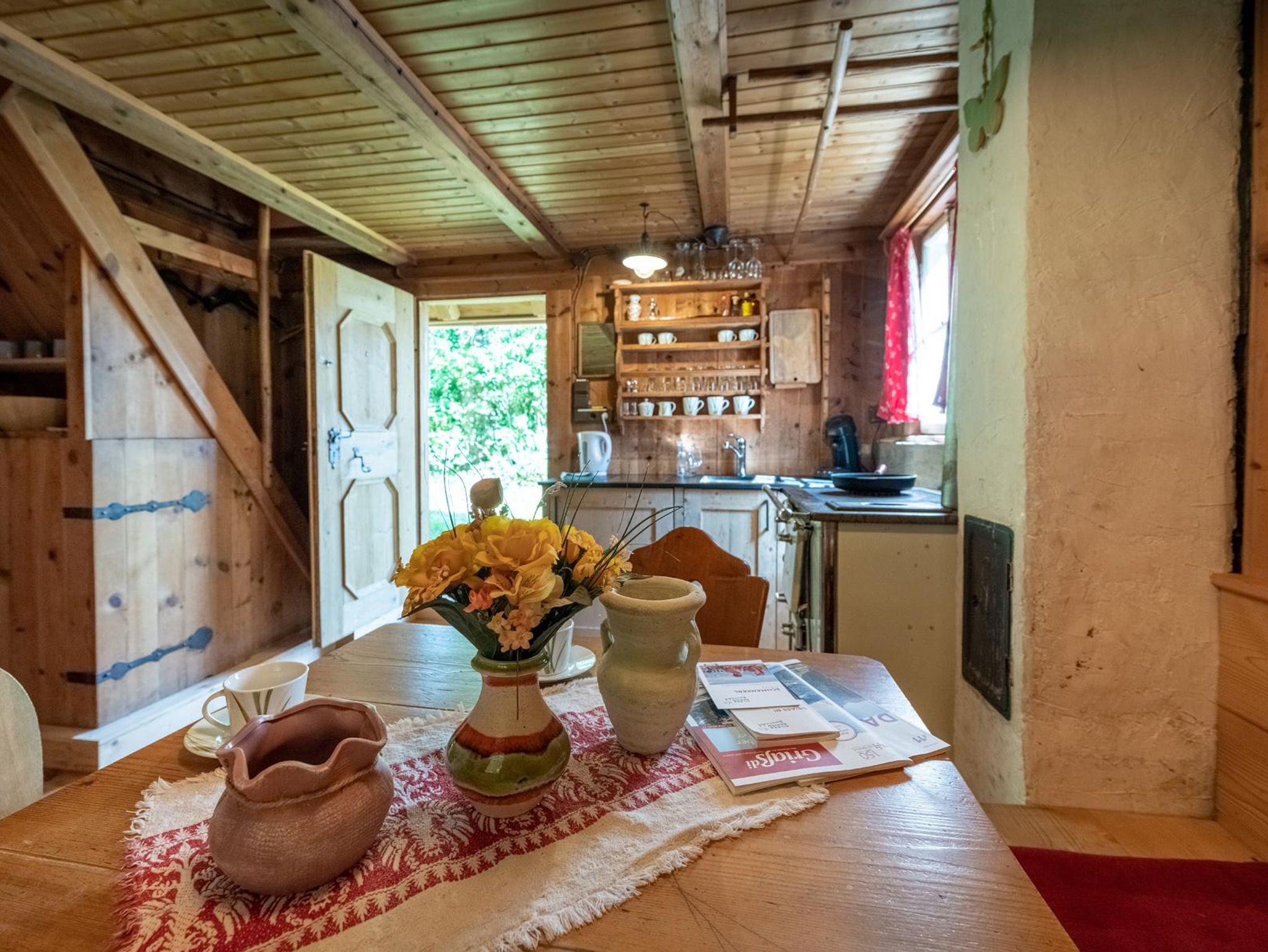 Diese wunderbare, 2020 liebevoll renovierte Hütte, bietet sich hervorragend für Familien mit Kindern an. Im Garten steht eine Schaukel bereit und obendrein hat man im umliegenden Wald und auf den Wiesen genügend Platz zum Spielen. Dort befindet sich ein traditioneller Holzherd zum Kochen der zugleich eine angenehme Wärme verbreitet. Eine kleine Küche mit 2 Kochplatten und eine Warmwasser-Spüle findet man ebenfalls vor. Es gibt ausreichend Speise- und Kochgeschirr, auf einen Kühlschrank und auf eine Kaffeemaschine mit Pads muss man auch nicht verzichten.