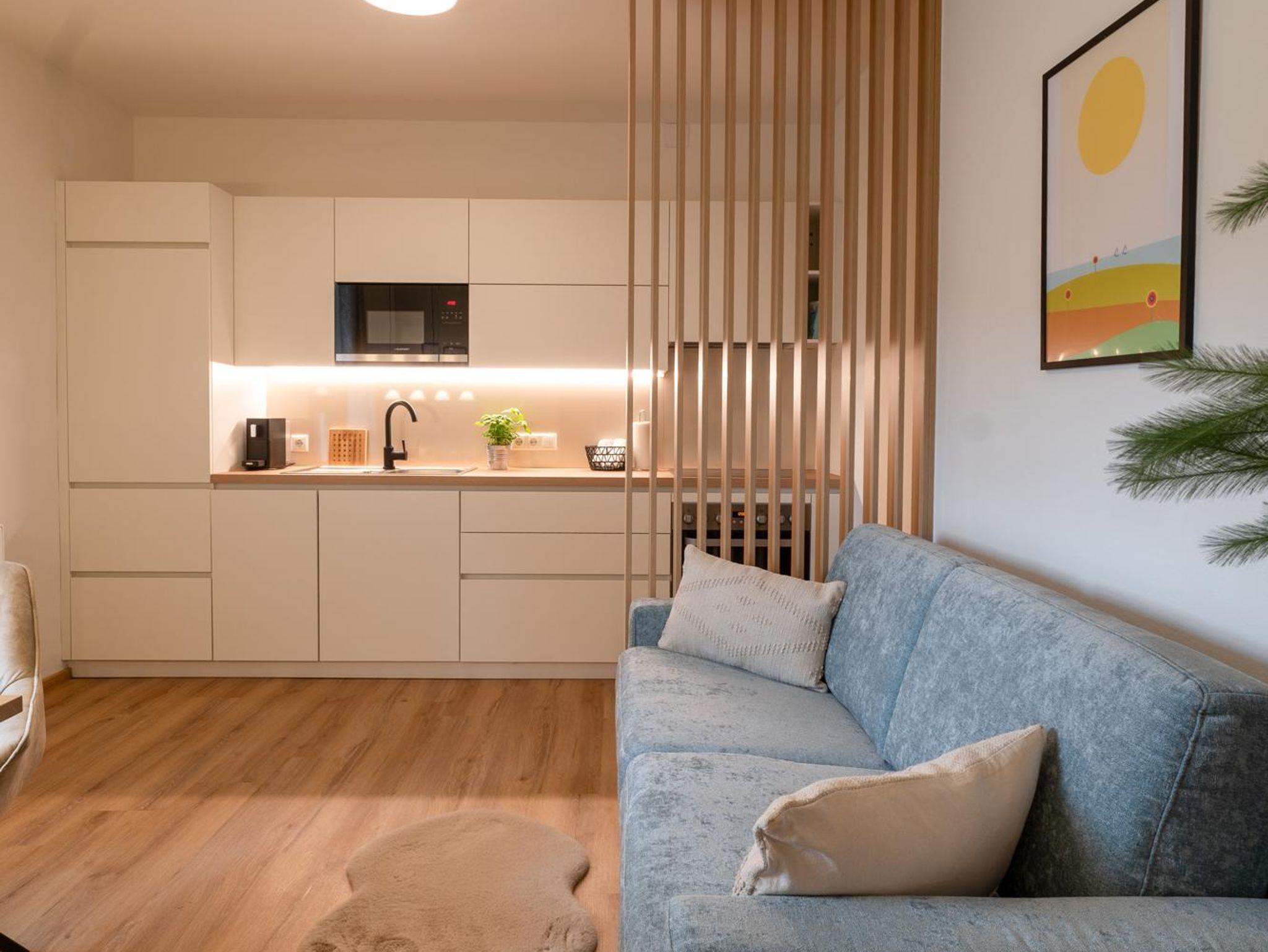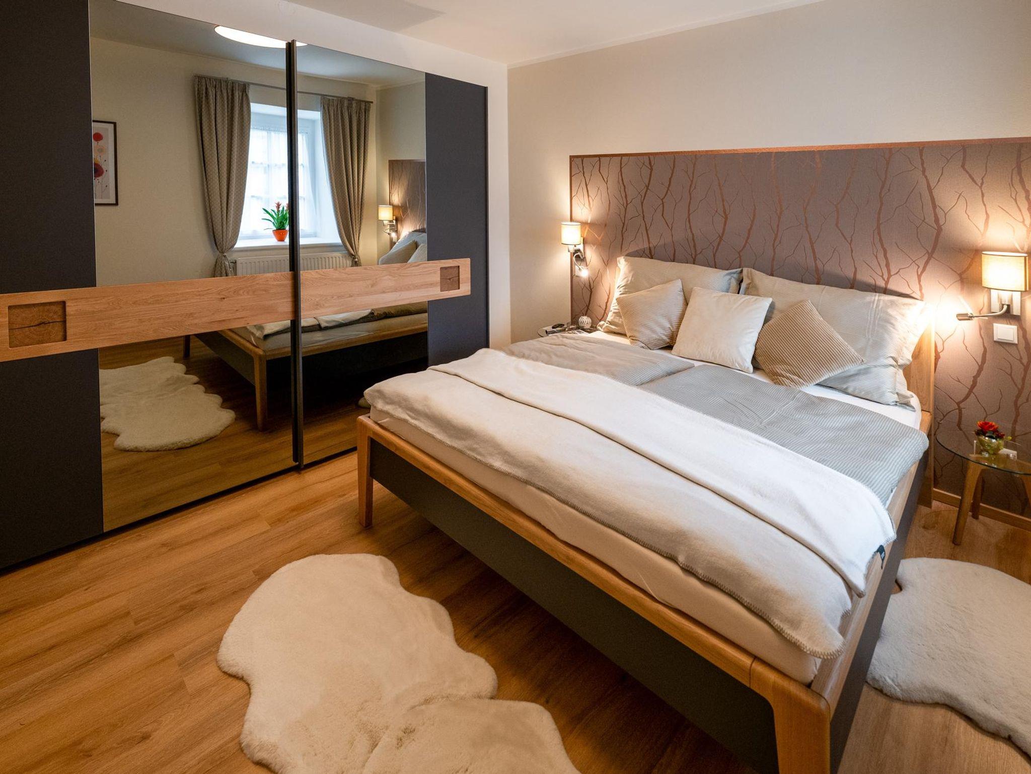 Im Jahr 2023 wurden die Appartements komplett neu saniert und hochwertig eingerichtet. Die Unterkünfte bieten nun Platz für 1 bis 4 Personen. Die hellen, gemütlich und stilvoll eingerichteten Räume laden zum Verweilen und Wohlfühlen ein. Eine Sitzgarnitur im ruhigen, gepflegten Außenbereich kann von den Gästen genutzt werden.