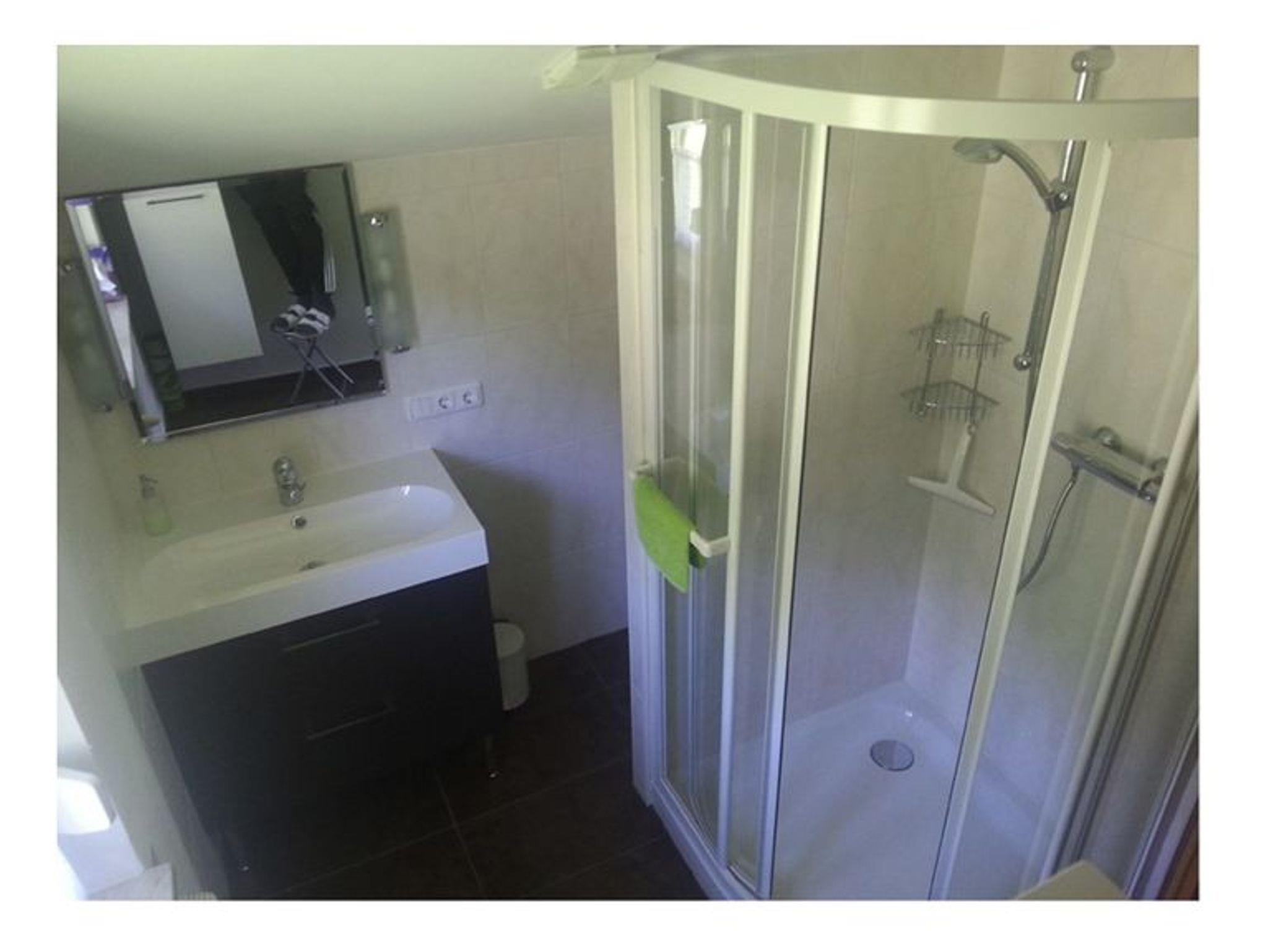 Neu renovierte helle Ferienwohnung mit Küchenzeile, TV, großem Schlafzimmer mit TV, Dusche/WC, Laminatböden (Teppichboden im Schlafzimmer).