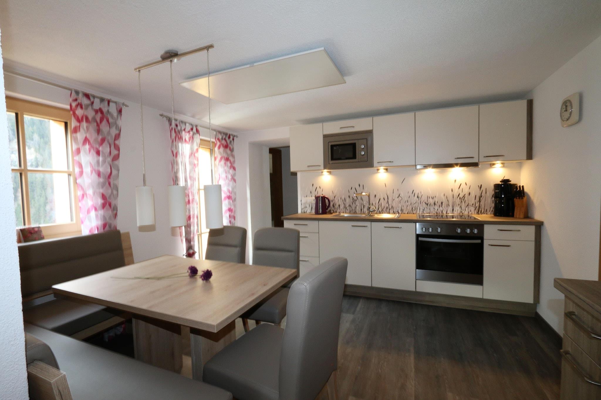 Med betagende udsigt over bjergene: rustikt bondehus, nyrenoveret med stor sans for detaljer. Gården rummer to ferielejligheder, som er blevet til et hyggeligt feriehus takket være deres smukke blanding af moderne og traditionelle elementer. Et rummeligt udendørsområde med siddepladser indbyder til afslappende timer udenfor – der er også god plads til at løbe rundt og lege for børn eller din firbenede ven. Og efter en aktiv (vandre)dag kan du slappe af i den fælles sauna. Lejer du begge ferielejligheder, har du i øvrigt hele gården til din rådighed - perfekt til en ferie med venner eller en stor familie. Tobadill er en angiveligt spredt landsby i en smuk beliggenhed over Pazna-dalen og i det yderste vest for Tyrol. På grund af de unikke bjerge er nærhed til naturen og ro i centrum under din ferie. Alligevel kan du hurtigt nå velkendte steder som Galtür, Ischgl og Kappl - de ligger alle kun mellem 15 og 30 kilometer fra Tobadill. Detaljer: WiFi