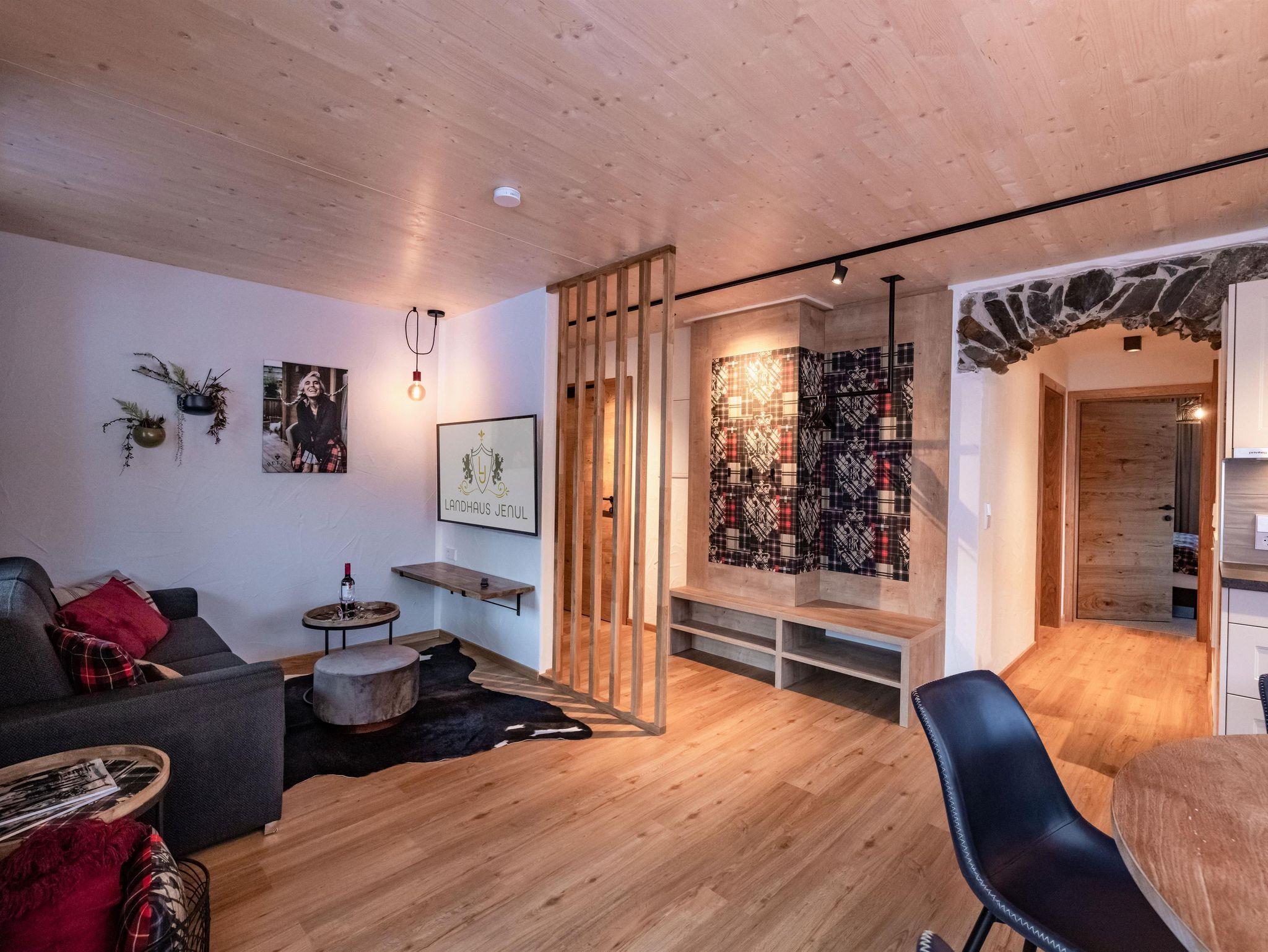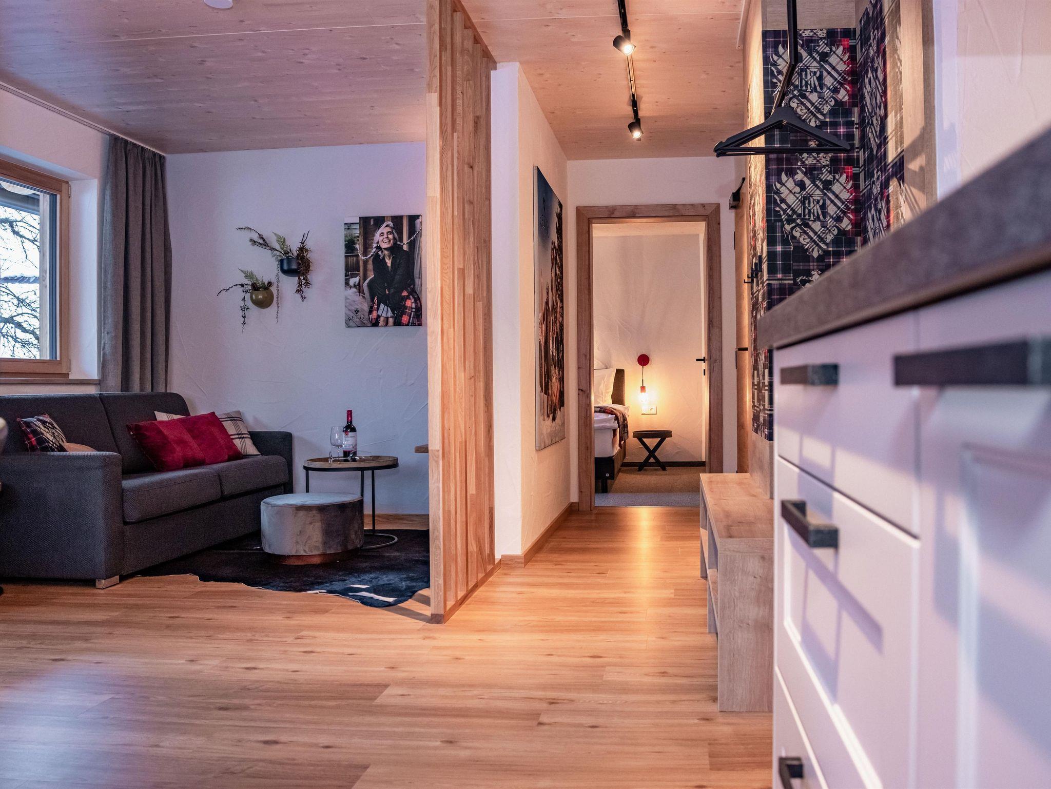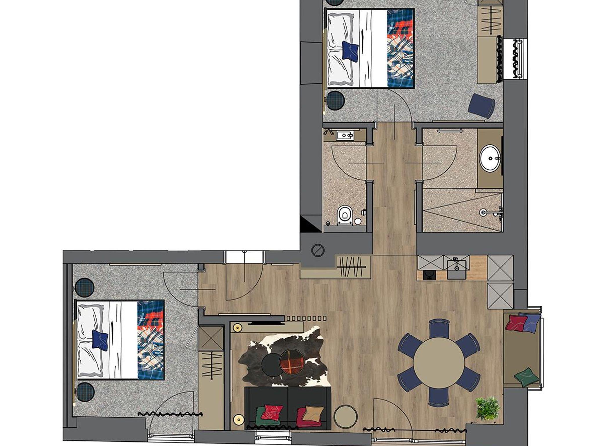 Das modernes Appartement Adler Karo im 1. Stock mit dem Patchwork-Karo vom Rettl bietet bequem Platz für 4-6 Personen. Auf ca. 70 m² Wohnfläche mit 2 getrennten Schlafräumen, einem gemütlichen Wohn- Schlafraum, einer top ausgestatteten Küche, Bad mit separatem WC und einem Balkon, wirst du dich gleich wie zu Hause fühlen.
