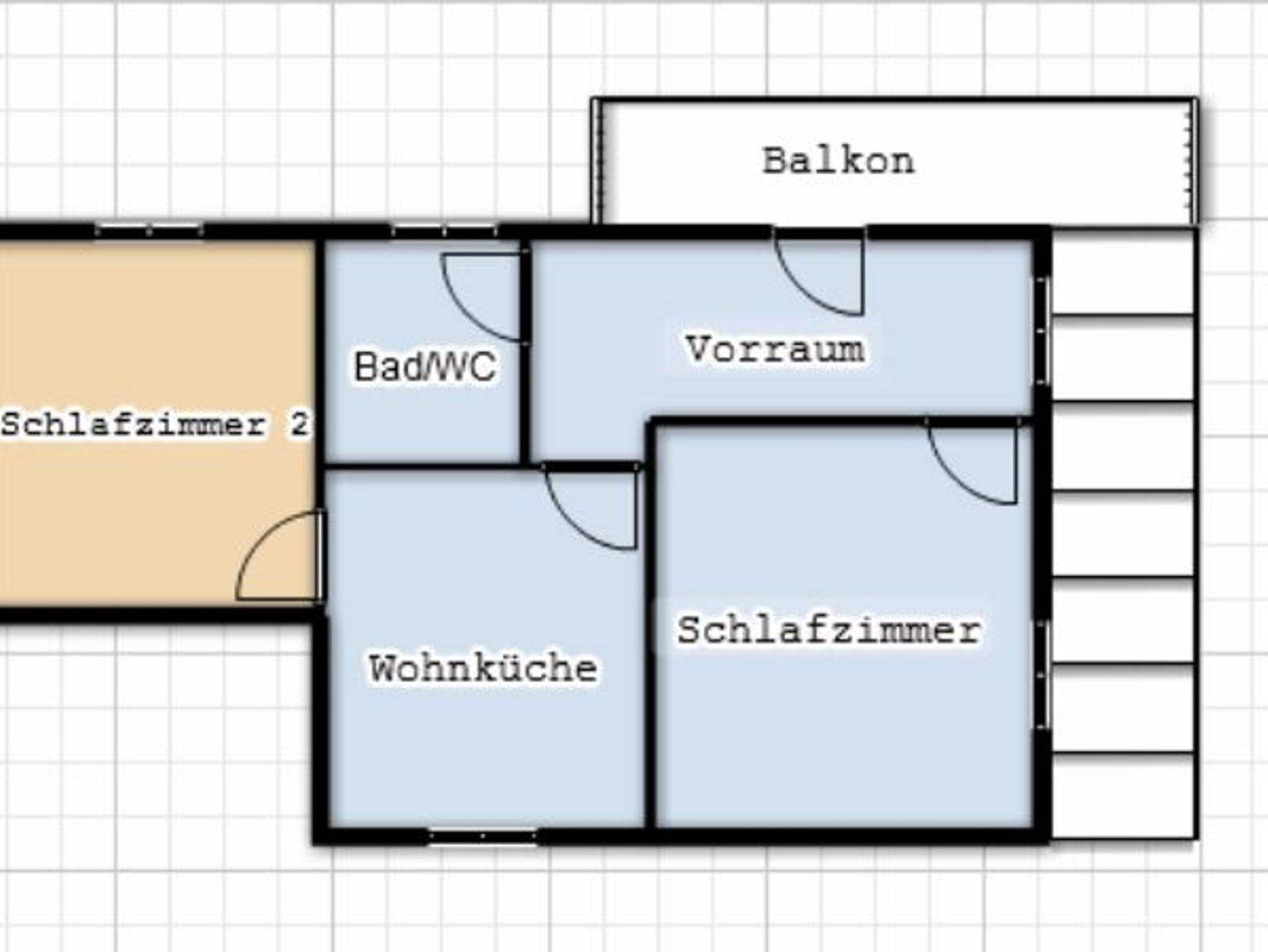 Wohnung mit ca. 50m². 2 Separate Schlafzimmer, Bad/Dusche und WC. Wohnküche mit Geschirrspüler und Sat-TV.