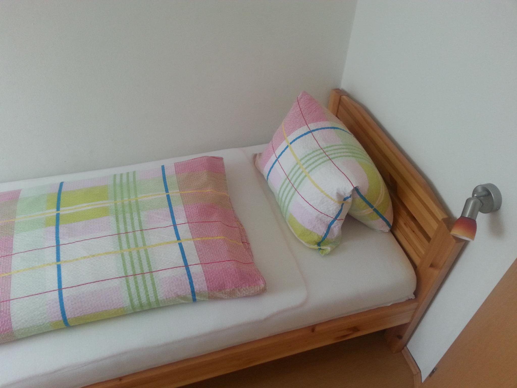 Appartementgröße 45 m², 2 Schlafzimmer + 1 Wohnschlafraum mit TV inkl. SAT mit ausziehbareer Couch; Bad mit DU/WC; Küche mit Backofen, Mikrowelle, Kühlschrank mit Gefrierfach, Kaffeemaschine, Wasserkocher, sämtlichees Geschirr und Wäsche im Appartement; Balkon und Vorraum
