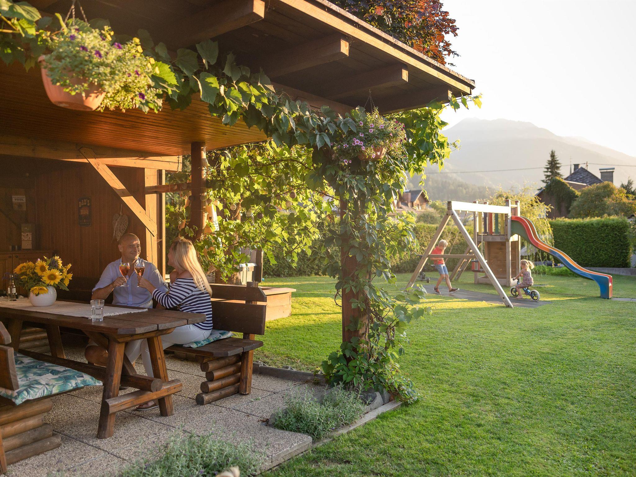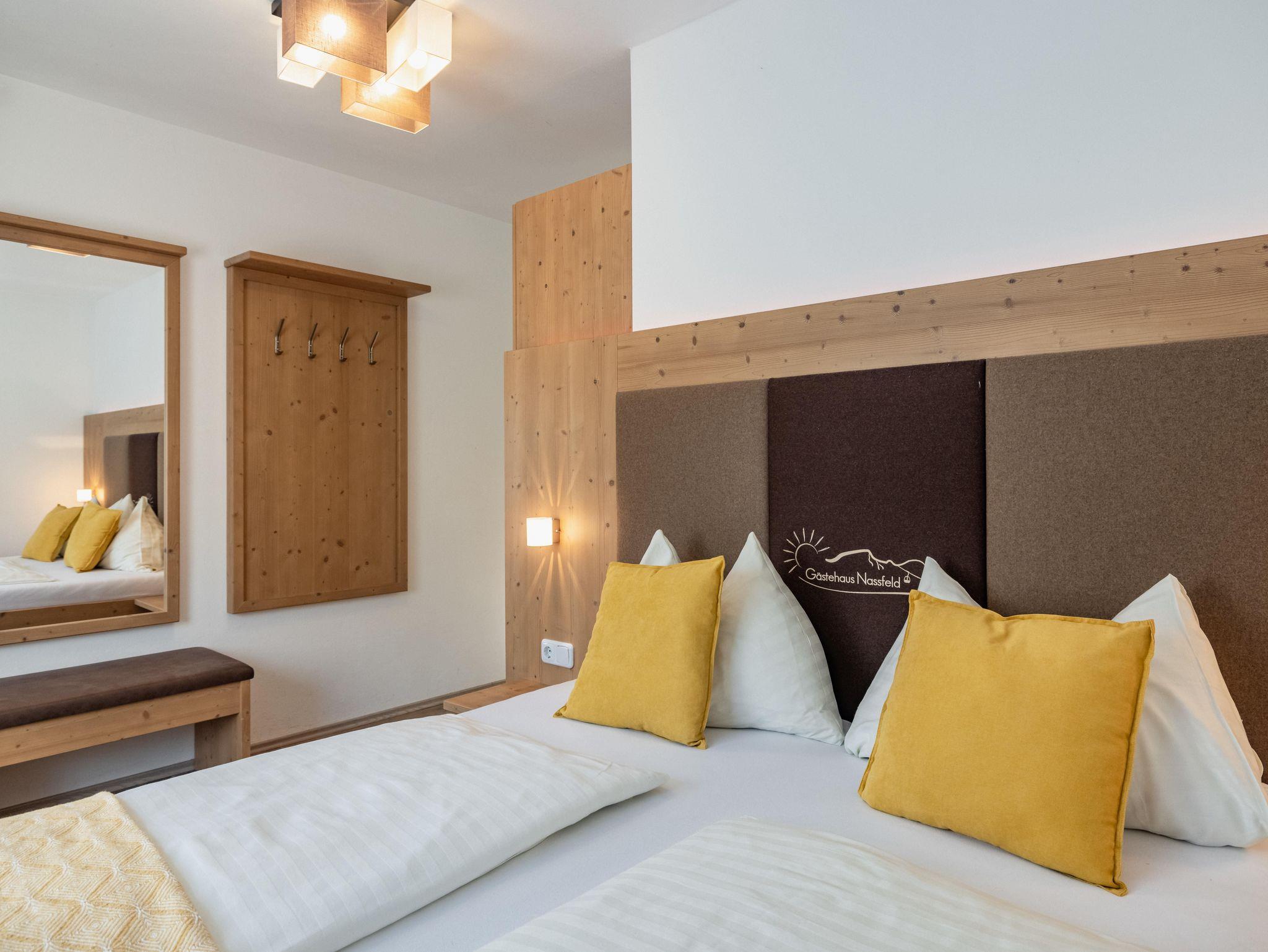 Das Gästehaus Nassfeld liegt im Ort Tröpolach, am Fuße des größten Skigebietes in Kärnten, dem Nassfeld. Es ist ruhig gelegen und dennoch ist alles fußläufig erreichbar. Insgesamt befinden sich im Gästehaus 2 Ferienwohnungen und 3 Gästezimmer. Der Millenniumexpress, die Gondel die auf das Nassfeld führt ist nur 5 Minuten zu Fuß entfernt und ist der Ausgangspunkt für nahezu alle Aktivitäten am Berg wie z.B. Skifahren, Langlaufen, Wandern, Sommerrodeln, Schischule, uvm. Die gemütliche Gartenlaube bietet die perfekte Umgebung für geselliges Beisammensitzen an den Sommerabenden, egal ob beim Grillen oder beim Entspannen nach einem Erlebnisreichen Tag am Berg. Für das Frühstück im urigen und gemütlichen Kaminstüberl, wird sehr viel Wert auf heimische Produkte und Vielfalt gelegt. Die Erzeugnisse wie Wurst, Käse und Eier von den umliegenden Bauernhöfen sowie Gemüse aus dem eigenen Garten stehen für Nachhaltigkeit und Regionalität. Nur 50 Meter entfernt liegt der elterliche Bauernhof wo sich die Tiere wie Lämmer, Hasen, Hühner, Katzen und Hunde jederzeit über Streicheleinheiten und einen Besuch von unseren kleinen Gästen freuen. Frühstück wenn nicht im Angebot enthalten: € 12,- pro Erwachsenen € 10,- pro Kind