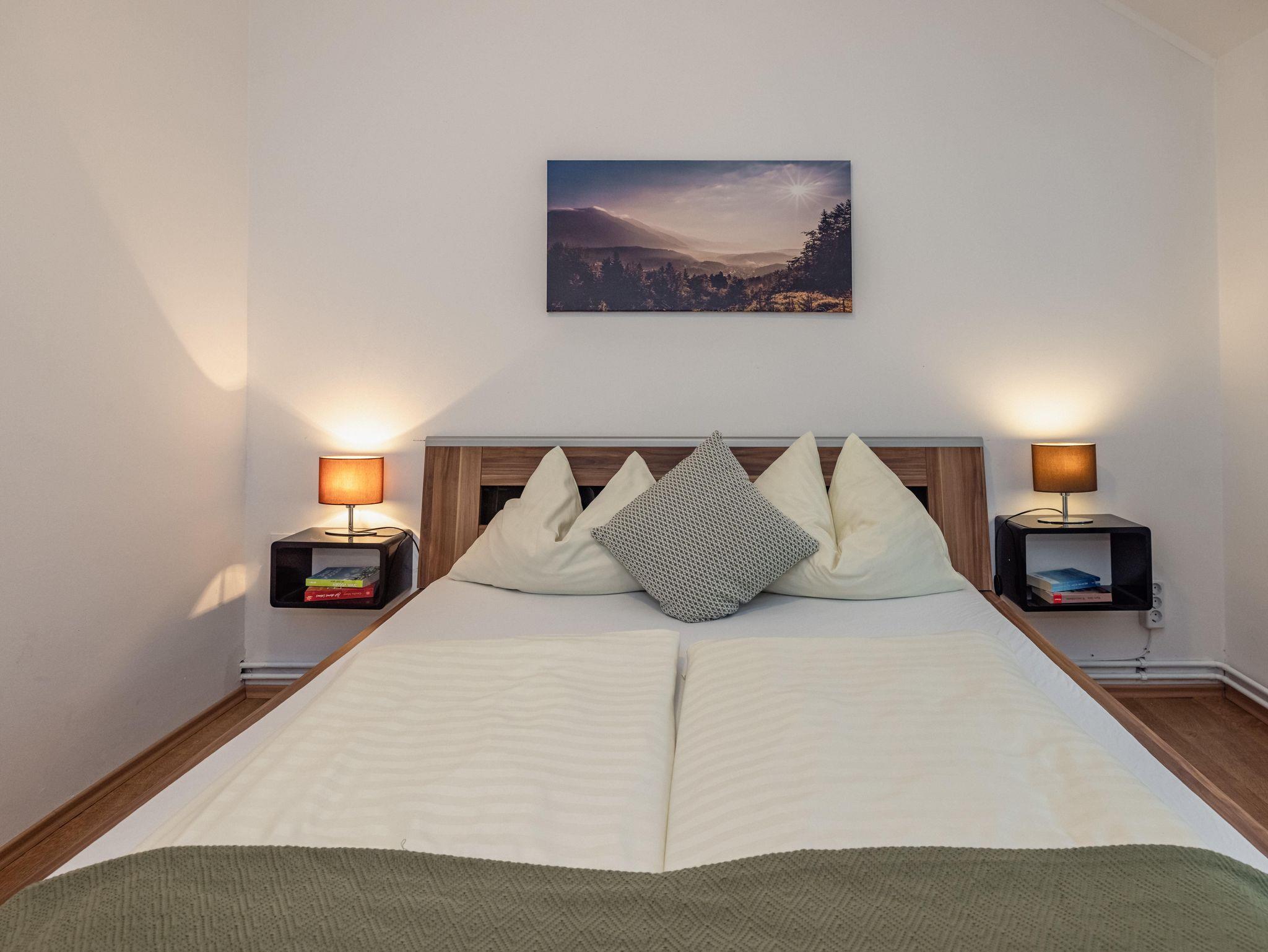 Ferienwohnung mit • ca. 84 m² für max. 7 Personen • 2 Schlafzimmer mit Doppelbetten • 1 Schlafzimmer mit Doppelbett und 1 Zusatzbett • 2 Sitzecken • 1 Badezimmer mit Badewanne • Toilette • Kostenloses Wlan • Bade- und Handtücher • Bettwäsche • Balkon • Fön • TV • Mikrowelle • Kühlschrank • Geschirr • Waschmaschine • Radiowecker • Brotschneidemaschine • Gitterbett auf Anfrage