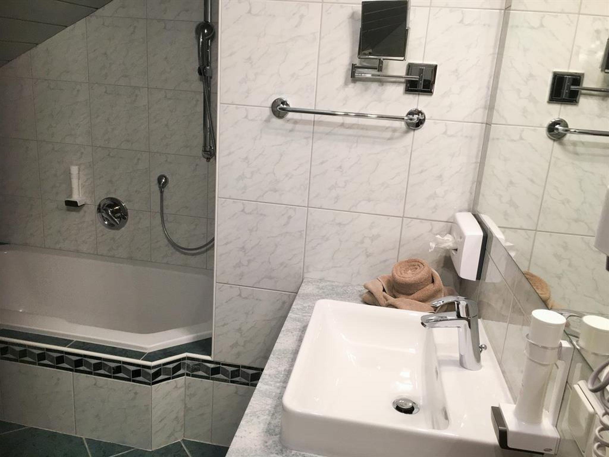 Außerdem zwei Bäder, einmal mit Badewanne und WC und einmal mit Dusche und WC.