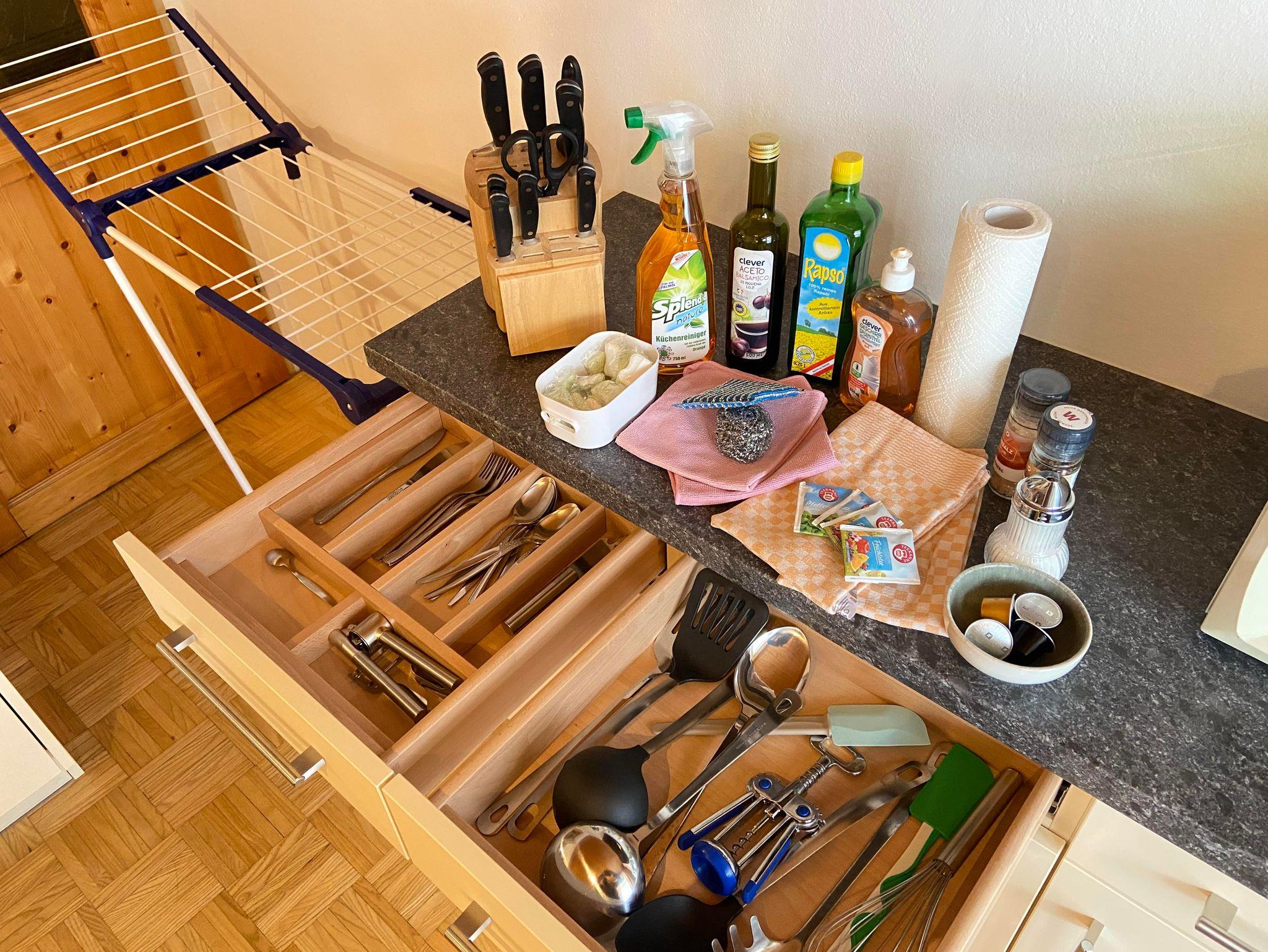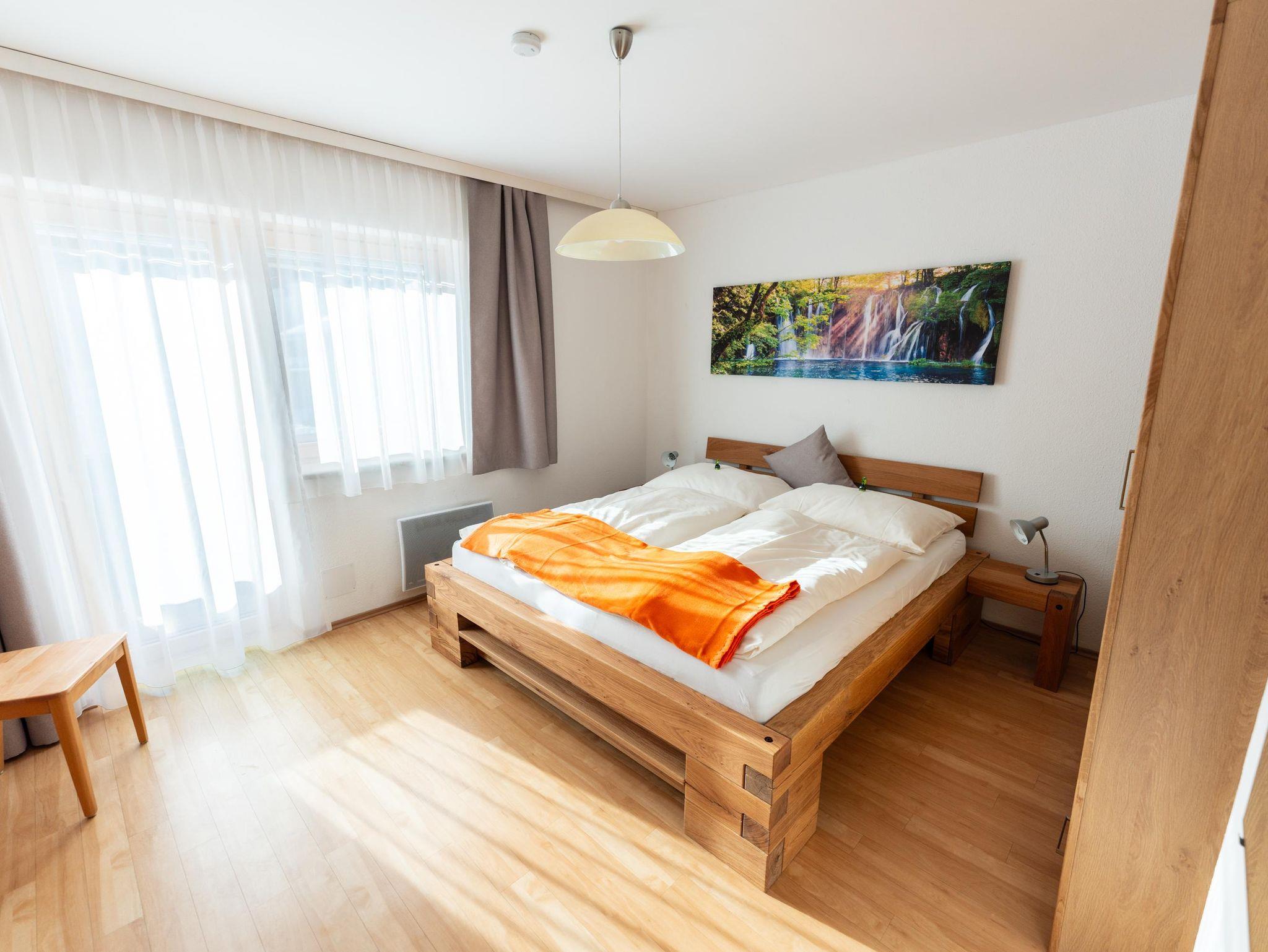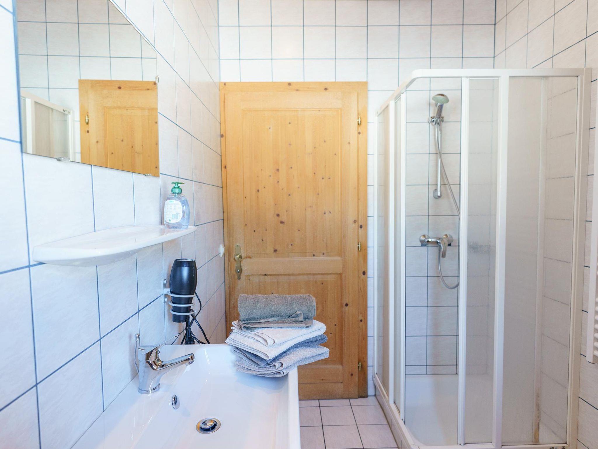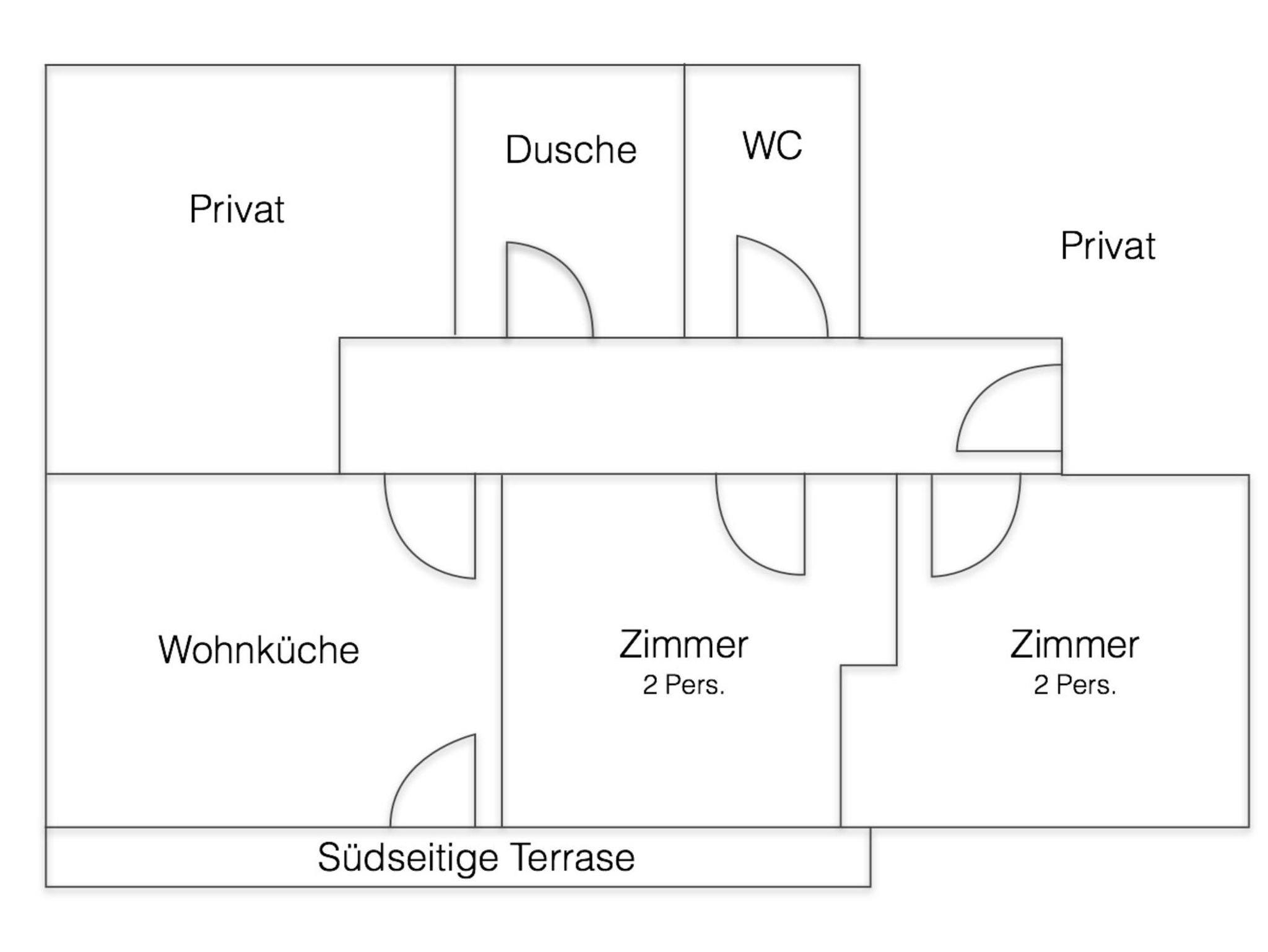 Unser 4er App. (58 m²) verfügt über eine gemütliche Wohnküche, 2 Doppelzimmer, Dusche, WC (getrennt), südseitige Terrasse