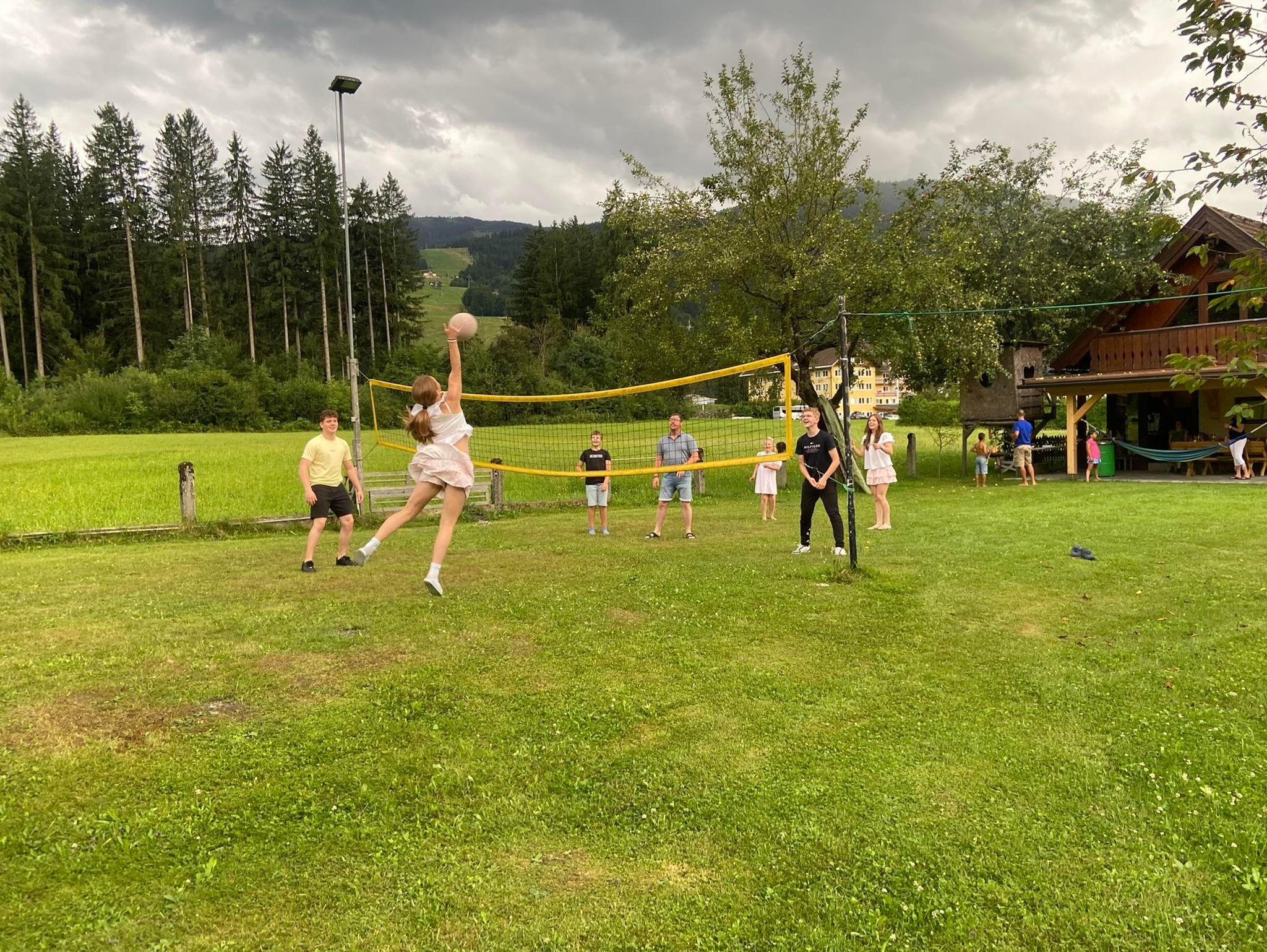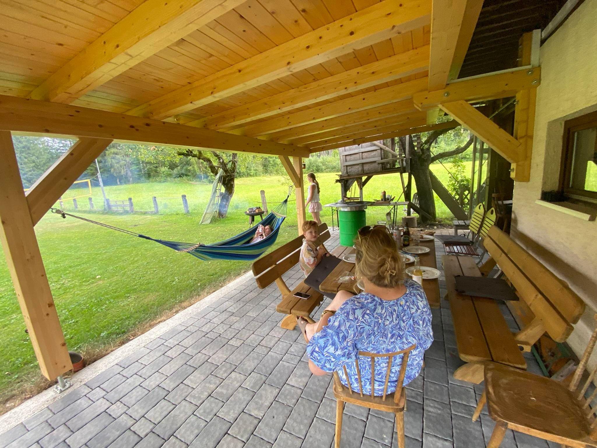Unser 1500 Quadratmeter große Garten und der tolle Ausblick auf die Bergwelt lassen die Seele baumeln. Das Gartenhaus „Kindervilla“ mit Wellenrutsche, Terrasse mit Grillplatz und Küche bietet der ganzen Familie Platz für ein geselliges Beisamensitzen an schönen Sommertagen.
