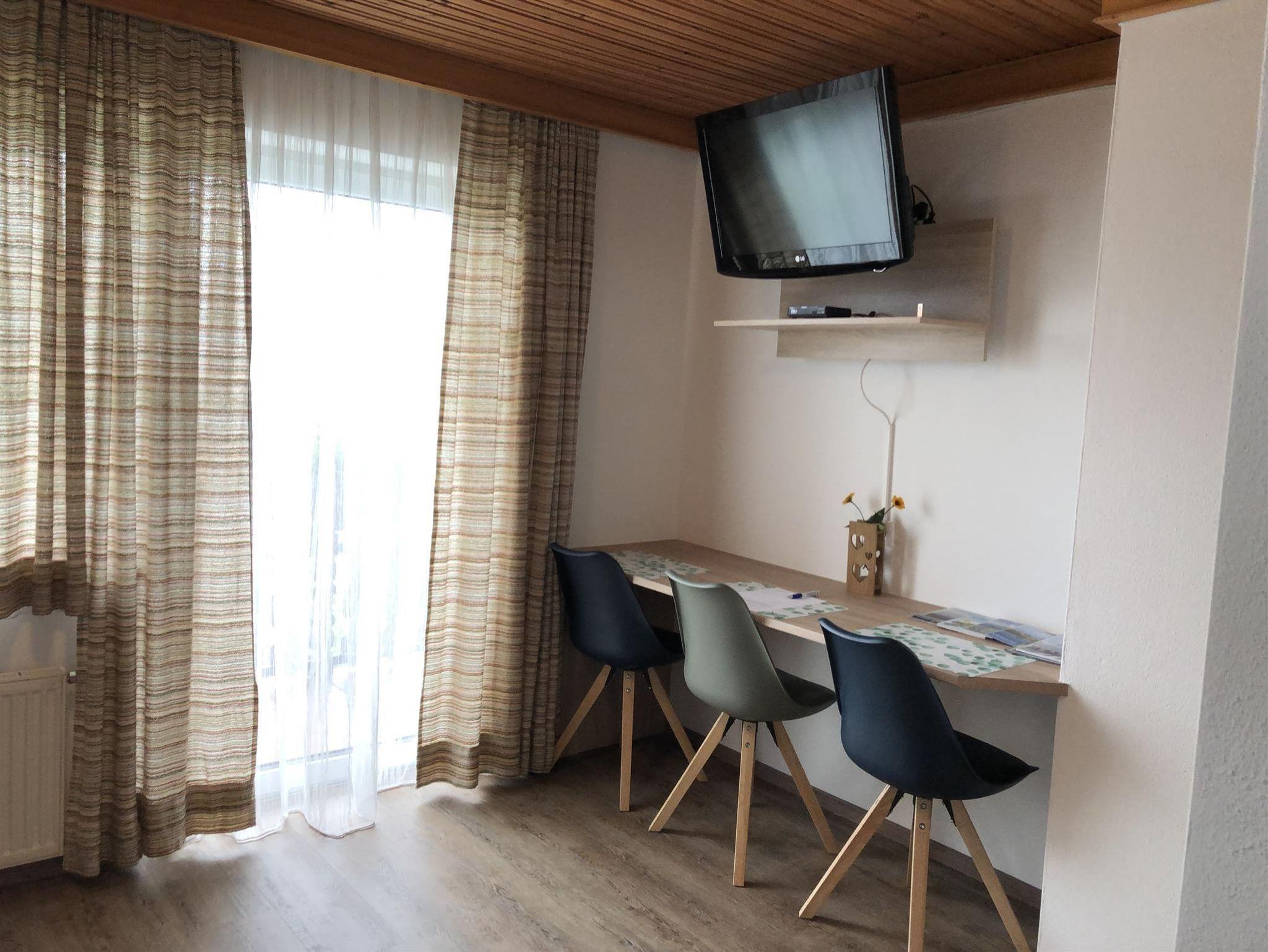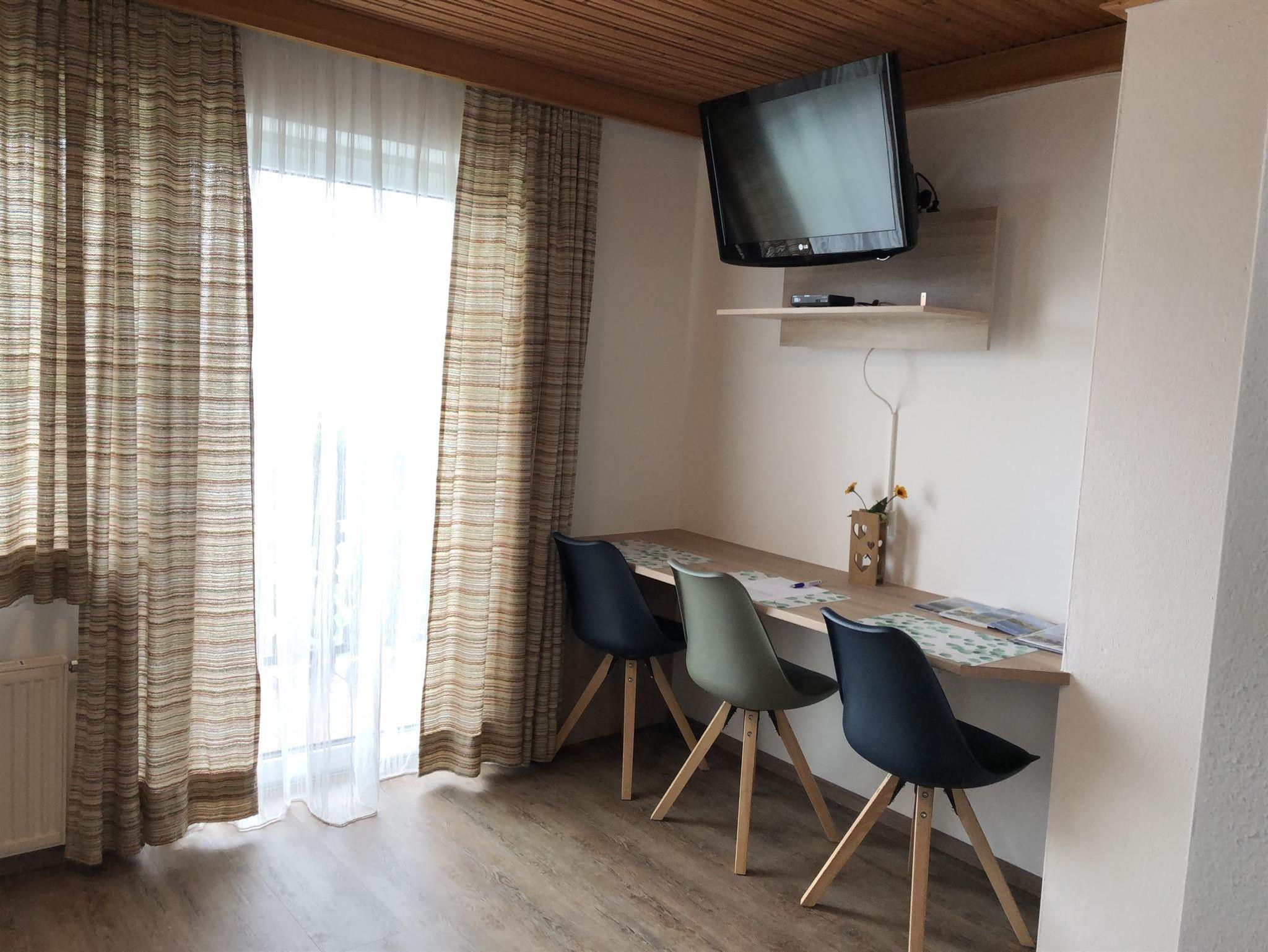 1 Schlafzimmer mit Doppelbett, Vorraum mit Garderobe, separates Badezimmer mit Dusche/WC, 1 voll ausgestattete Küchenzeile: Ceranfeld, Geschirr, Kaffeemaschine, Wasserkocher, Toaster, Mikrowelle, Geschirrspüler, 1 Wohn-Essbereich mit ausziehbarer Couch, Stühlen, Flat-Sat-TV, Balkon mit herrlichem Ossiacher See-Panoramablick, gratis W-LAN, Handtücher, Bettwäsche inklusive.