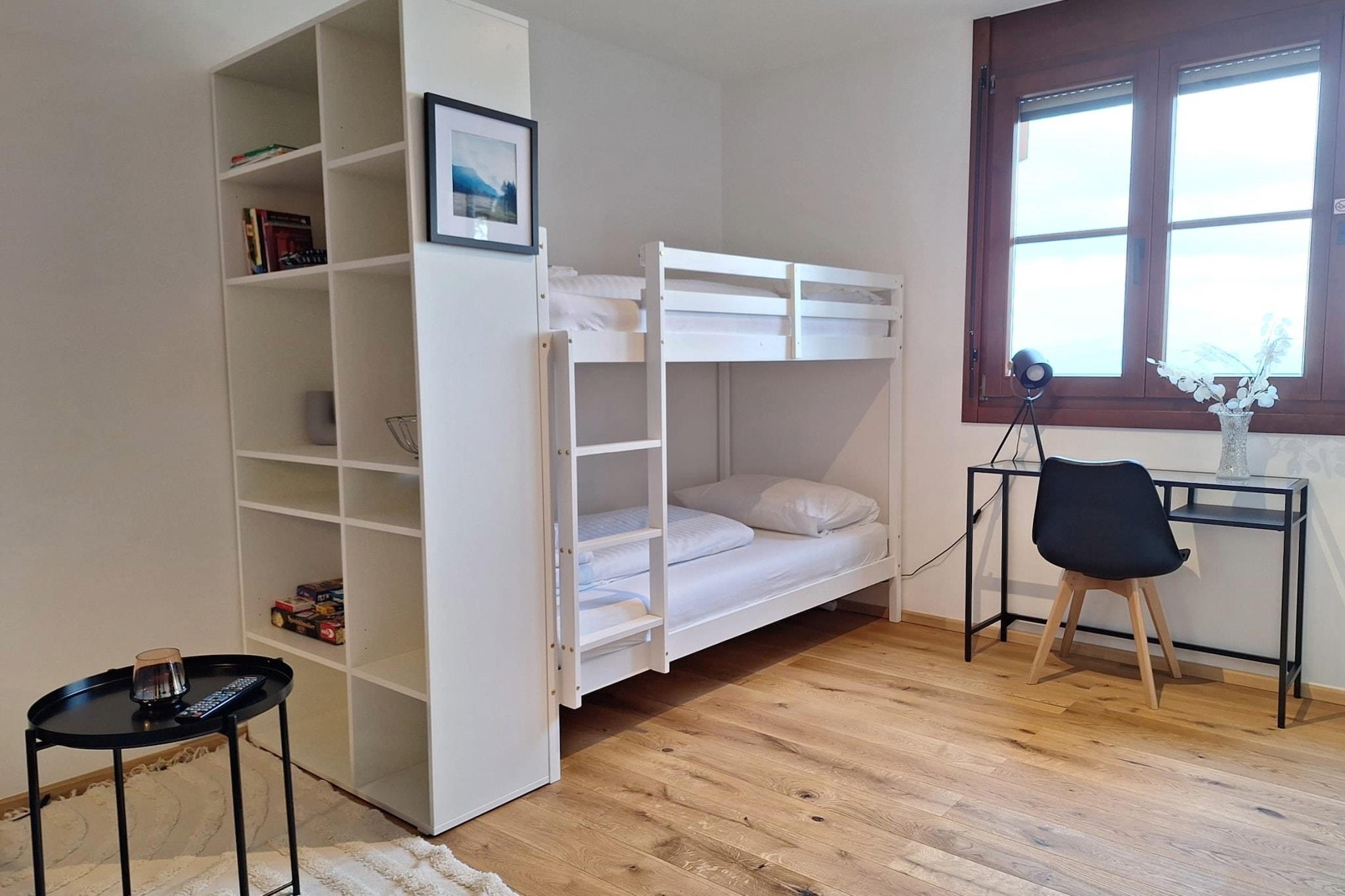 Lejlighed med panoramaudsigt Denne stilfuldt møblerede lejlighed på 50 m² med udsigt over bjerge og dalen tilbyder plads til op til 4 personer, der ønsker at kombinere natur og komfort. Den har en rolig beliggenhed tæt på Gerlitzens midtstations-gondol. Et par skridt fører direkte fra den overdækkede parkeringskælder til lejligheden. Indenfor finder du en gennemtænkt kombination af komfort og funktionalitet: et separat soveværelse med en dobbeltseng, en lille sovealkove med en hems, en sovesofa og en lys stue og spisestue med åbent køkken. Badeværelset er udstyret med bruser og toilet. Den overdækkede balkon tilbyder en fantastisk udsigt. Beliggenheden er ideel til en aktiv ferie: midtstations-gondolen ligger i gåafstand og tager dig direkte til Gerlitzens top. Hvis du hellere vil være ved vandet, ligger Ossiach-søen kun få minutter væk. Lejligheden er kærligt møbleret – med børneservice, tegneartikler og en tremmeseng tilgængelig efter anmodning. Sengelinned og håndklæder er inkluderet, ligesom en lille velkomstpakke med kaffe og te. Kæledyr er ikke tilladt i denne lejlighed.