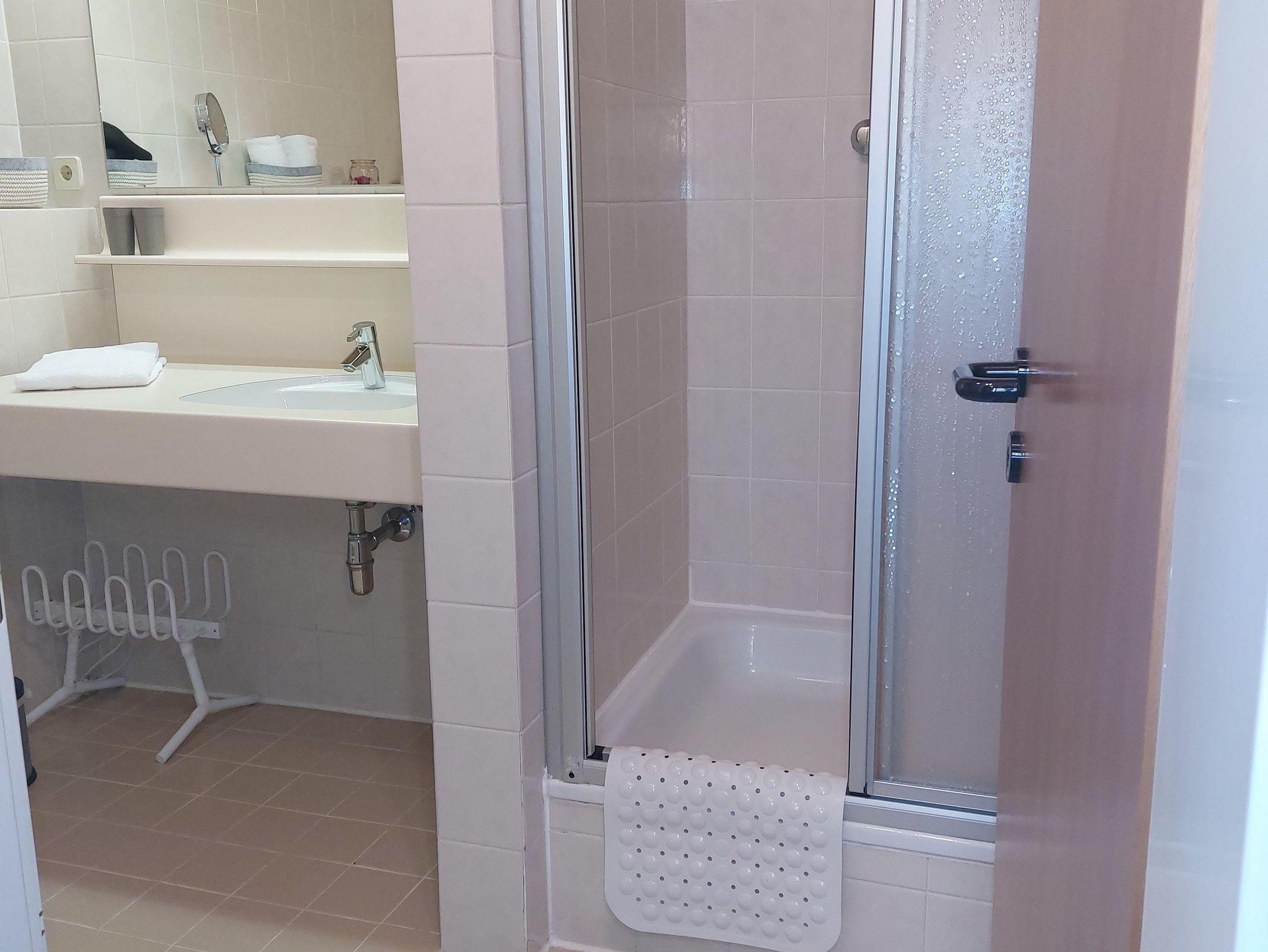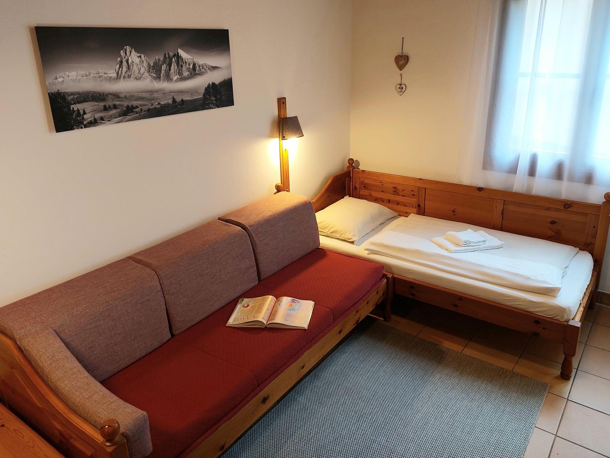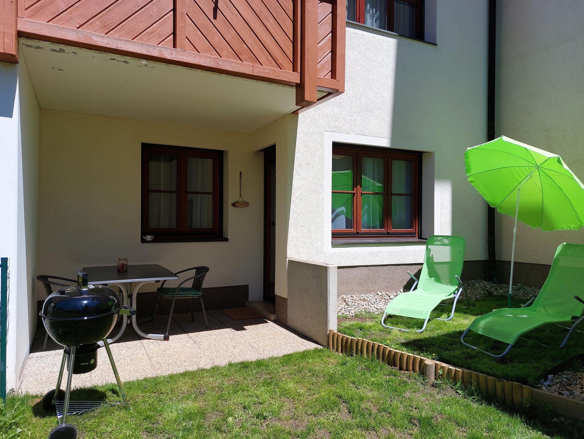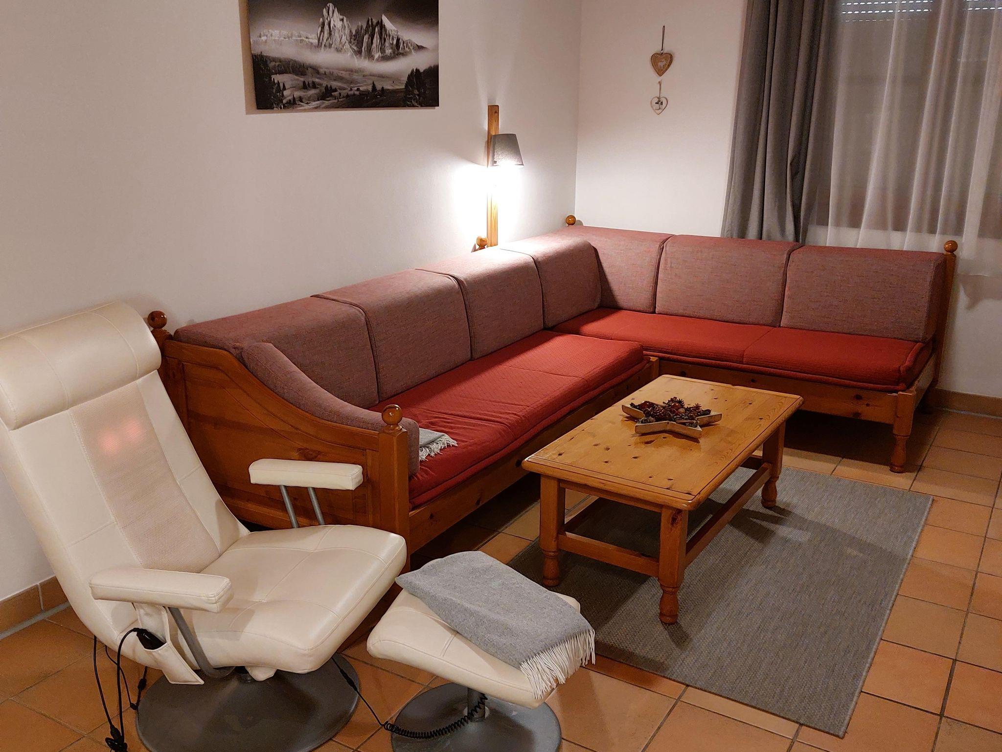 Das Apartment ist ausgestattet mit einem gemütlichen Wohnbereich mit Massagestuhl, ein separates Schlafzimmer mit großem Doppelbett sowie ein Badezimmer mit zusätzlichen Heizkörper, großzügigem Waschtisch, Dusche und WC. Der gemütliche Wohnraum mit Flatscreen-TV lädt zum geselligen Beisammensein ebenso wie zu einem entspannten Fernsehabend ein. Im Wohnbereich befinden sich zusätzlich zwei Sofabetten, die auch als Doppelbett adaptierbar, genutzt werden können. Zudem darf man Wellnessbereich und Restaurant im benachbarten Hotel gegen Gebühr mitbenützen!