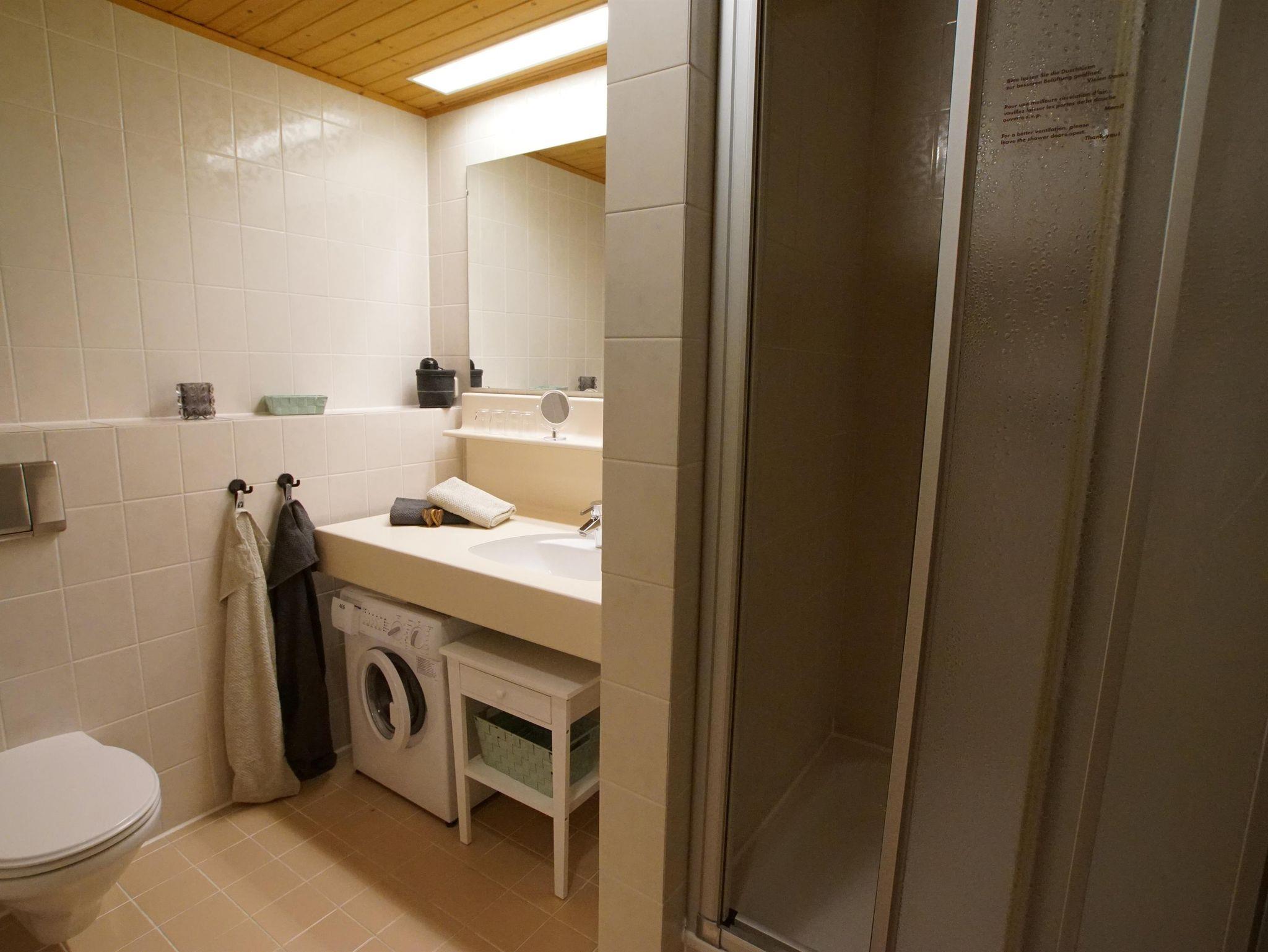 In dem in den Hang gebauten Gebäude befindet sich das Apartment im 1. Untergeschoss.