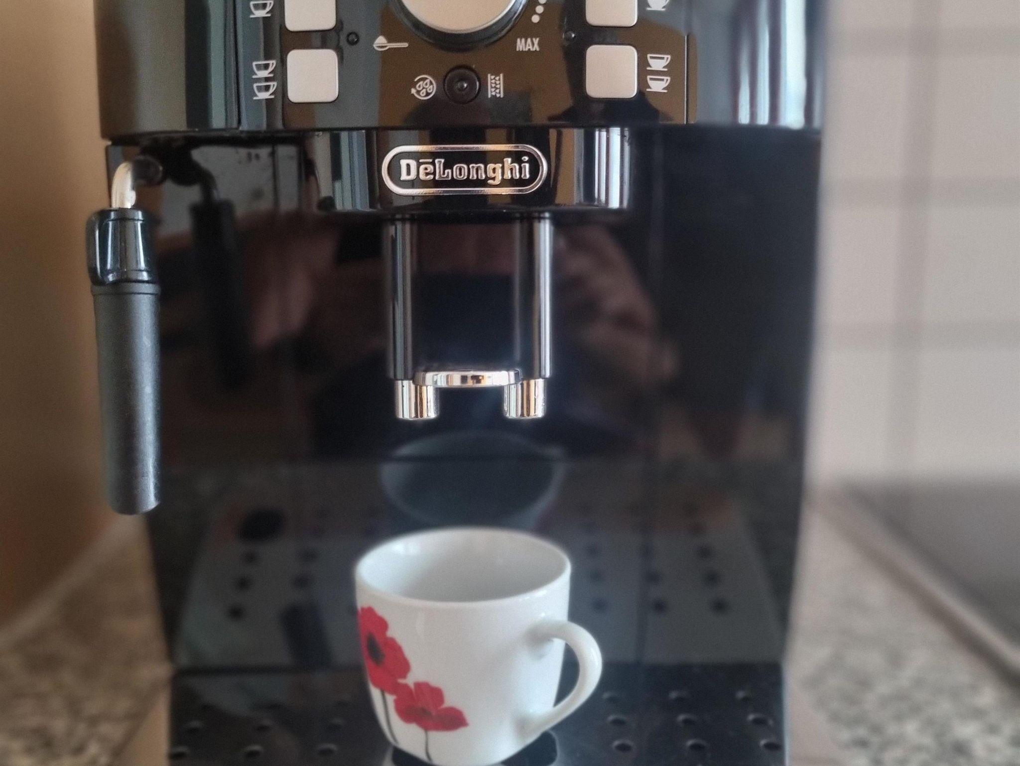 Eine komplett ausgestattete Wohnküche mit De-Longhi Kaffeeautomaten für ganze Bohnen, Geschirrspülmaschine, Mikrowelle, Backrohr, Sat-TV und Radio, beheizte Ofenwand mit Couch.
