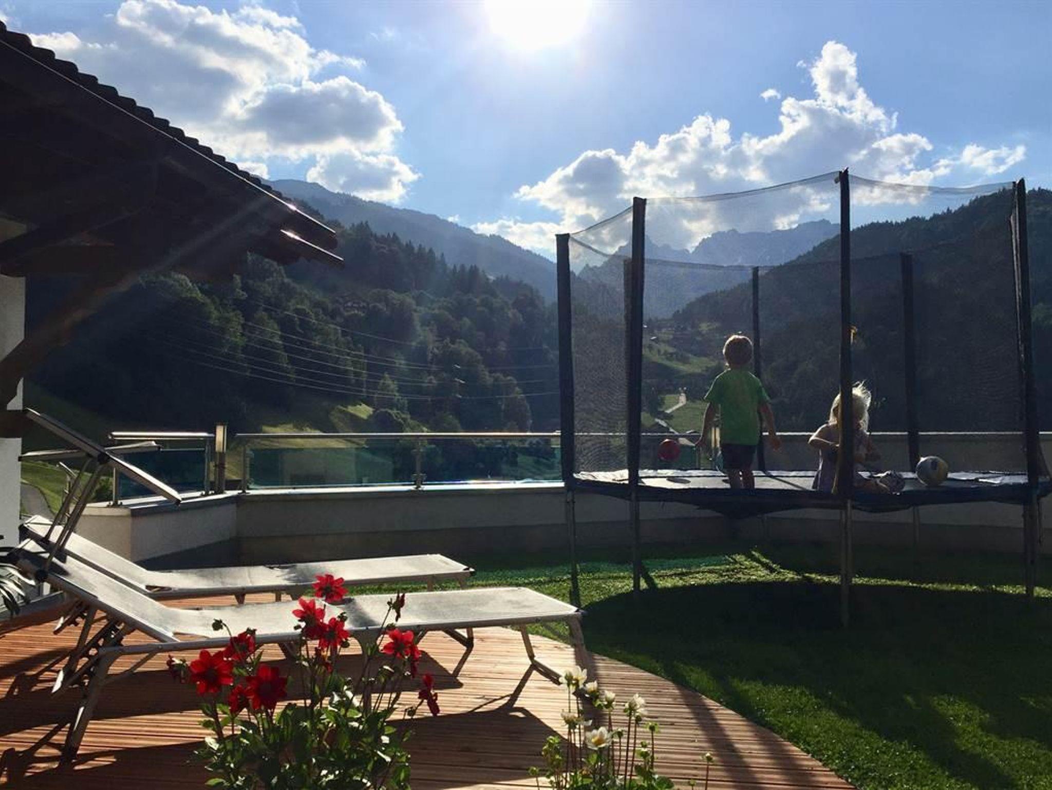 mit Schaukel, Rutsche, Trampolin, Tischtennis und sonstigen Spielgeräten zur Verfügung.