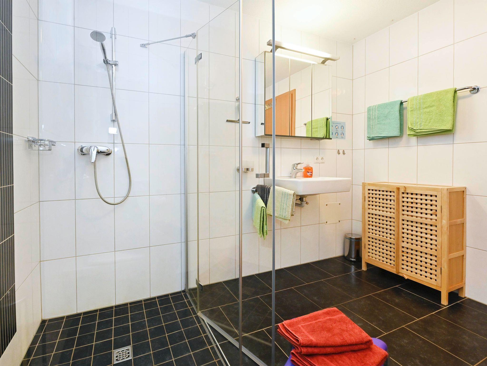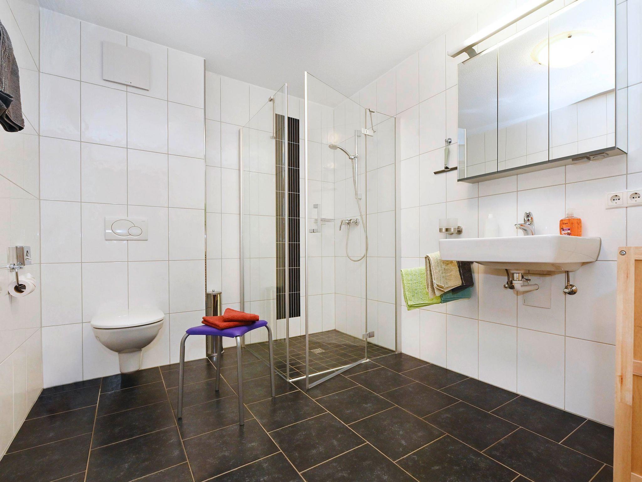 Unsere neue, geräumige 70m² Wohnung ist geschmackvoll und sehr niveauvoll eingerichtet. Die Wohnung besteht aus einer Wohnküche, welche sich über eine breite Glasfront zur ebenerdigen Terasse und Liegewiese hin öffnet. Die beiden Schlafzimmer sind geräumig und im größeren der beiden ist Platz für ein weiteres Bett. Der Blickfang im Bad ist die bodenebene Dusche mit hochwertiger Glaskabine.
