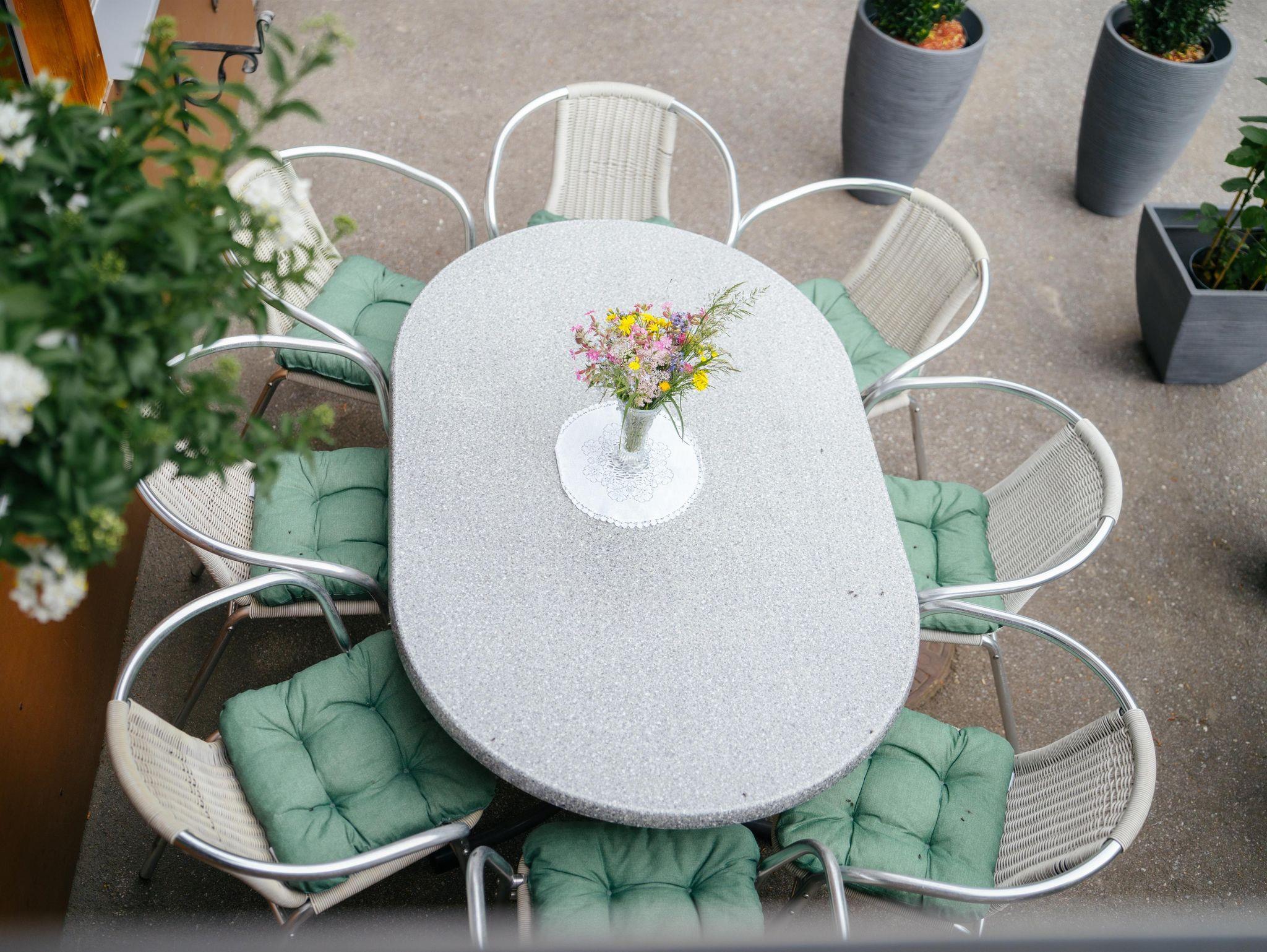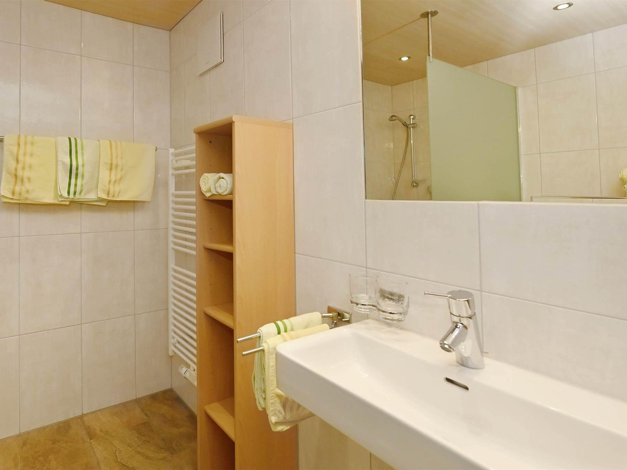 Die Ferienwohnung im Erdgeschoss besteht aus 2 Dreibettzimmer, 1 Zweibettzimmer, 2 schönen großen Bädern mit Doppelwaschbecken, DU/WC, einem gemütlichen Wohnzimmer mit Schlafcouch/TV, einer freundlichen Küche mit bequemer Sitzgruppe und einer schönen Sonnenterrasse. Auch die Ausstattung lässt keine Wünsche offen: Fußbodenheizung, Geschirrspüler, Kühl- bzw. Gefrierschrank, Backofen, u.v.m.