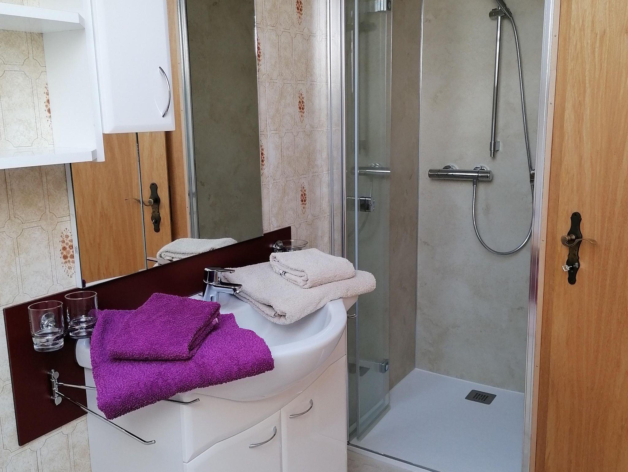 Die 100m² große Wohnung ist hell, besteht aus einer voll ausgestatteten Wohnküche mit TV, einem Badezimmer mit Dusche, einem separaten WC und 2 Schlafzimmern mit jeweils einem Doppelbett. WLAN ist natürlich kostenfrei.