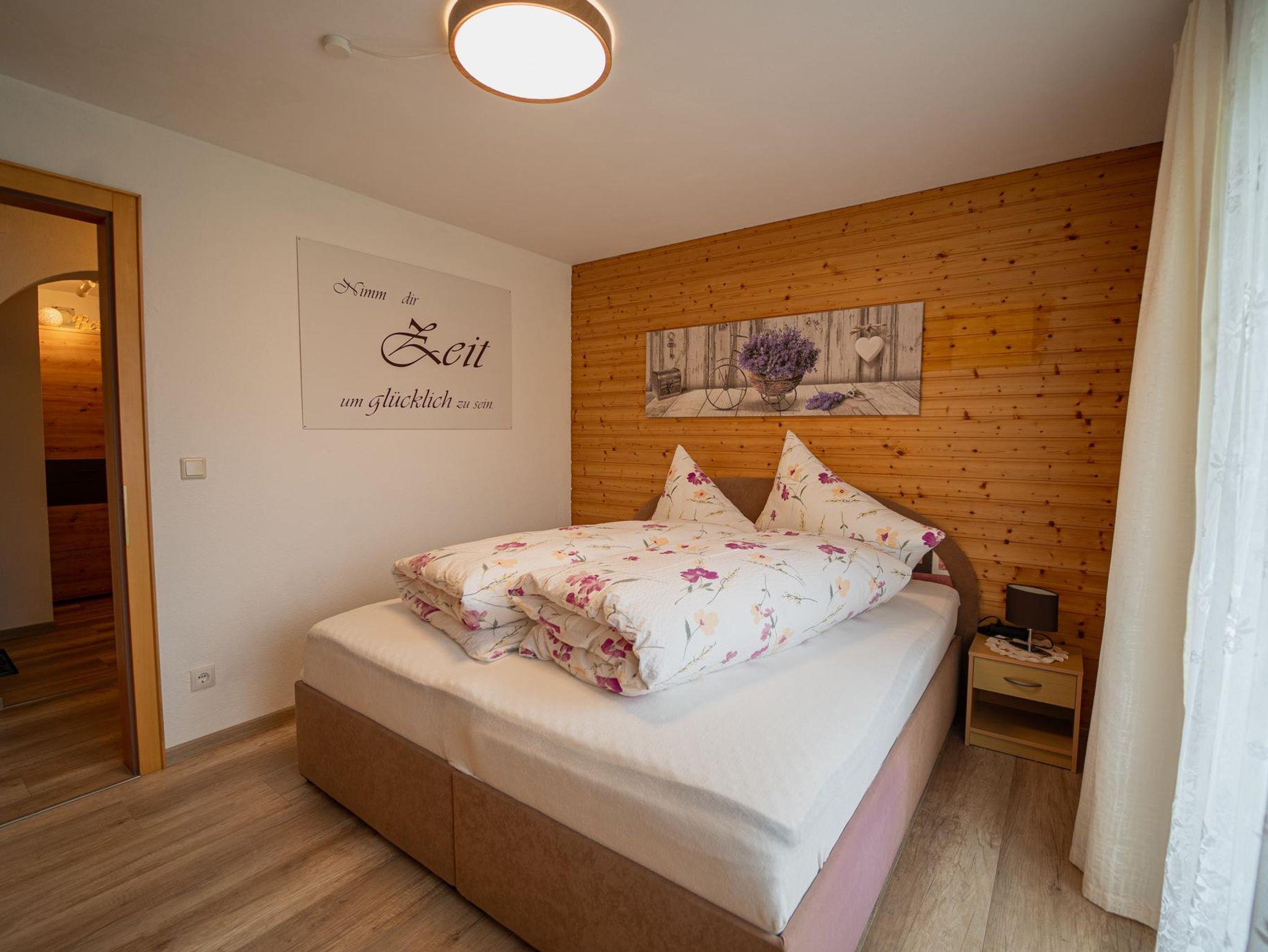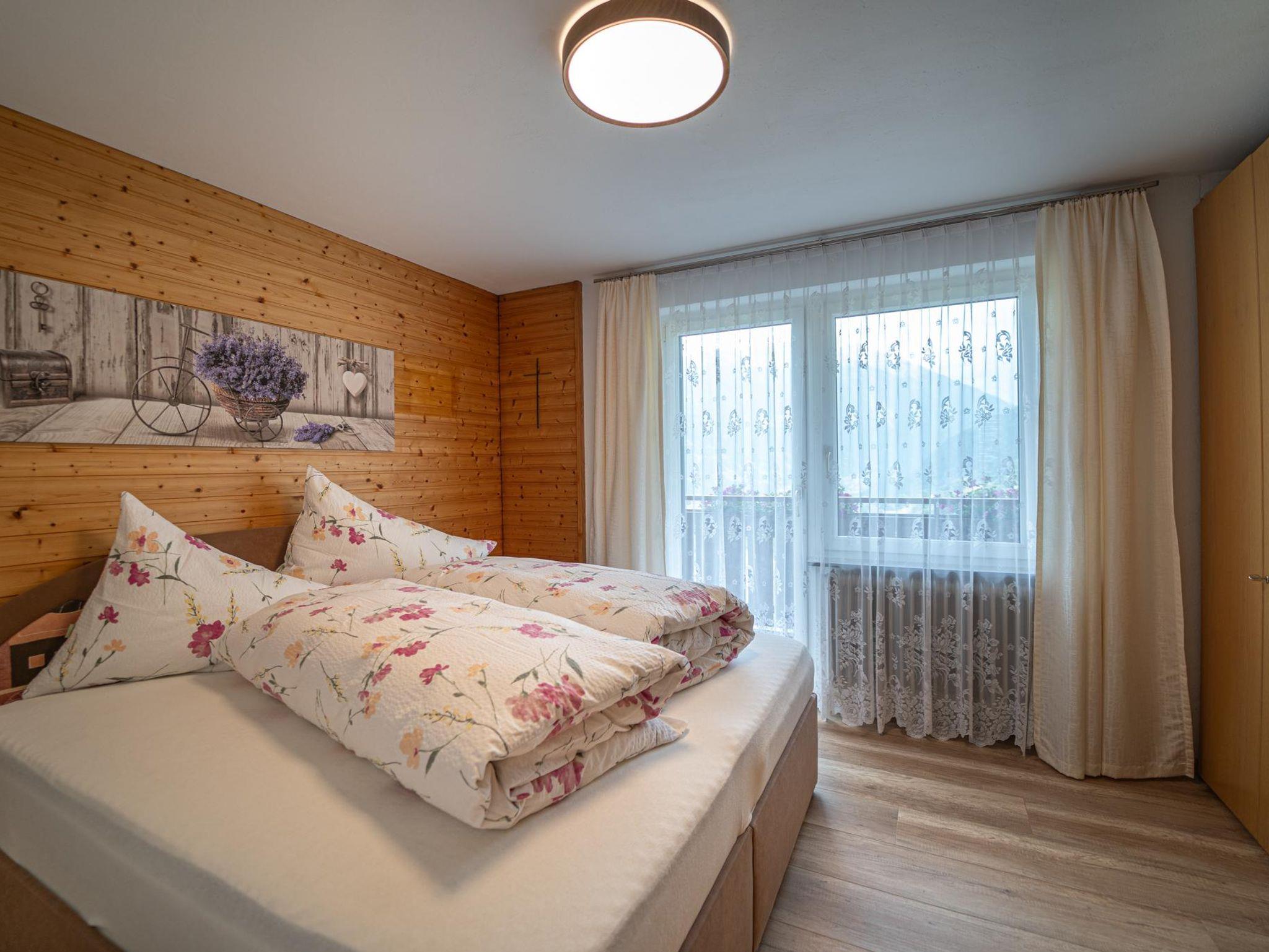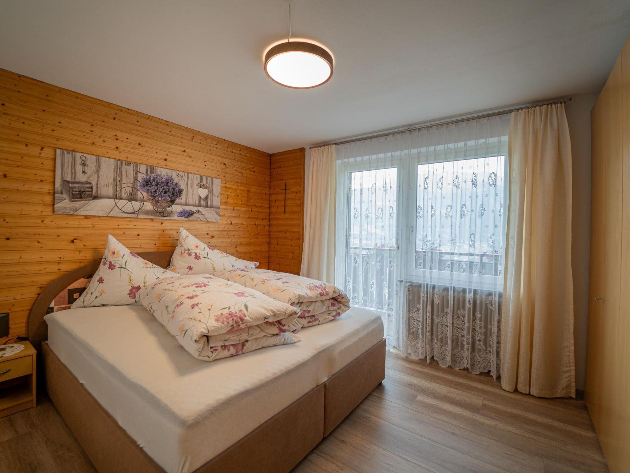 Die Ferienwohnung Zimba besteht aus einem kleinen Vorraum mit Garderobe, einer geräumigen, komplett eingerichteten Küche mit Sitzecke und Balkon sowie einem Wohnzimmer und Dusche/WC. Doppelzimmer mit Balkon.