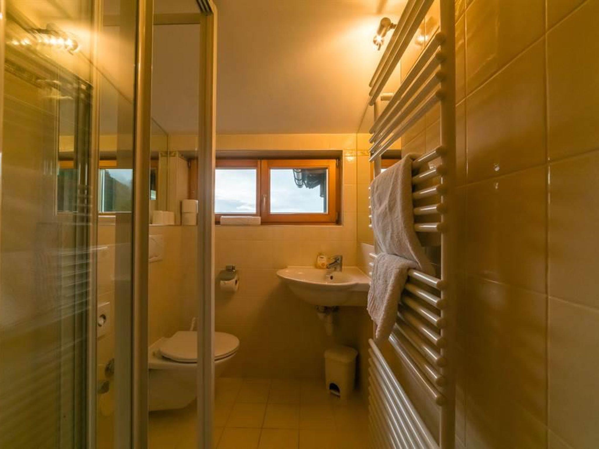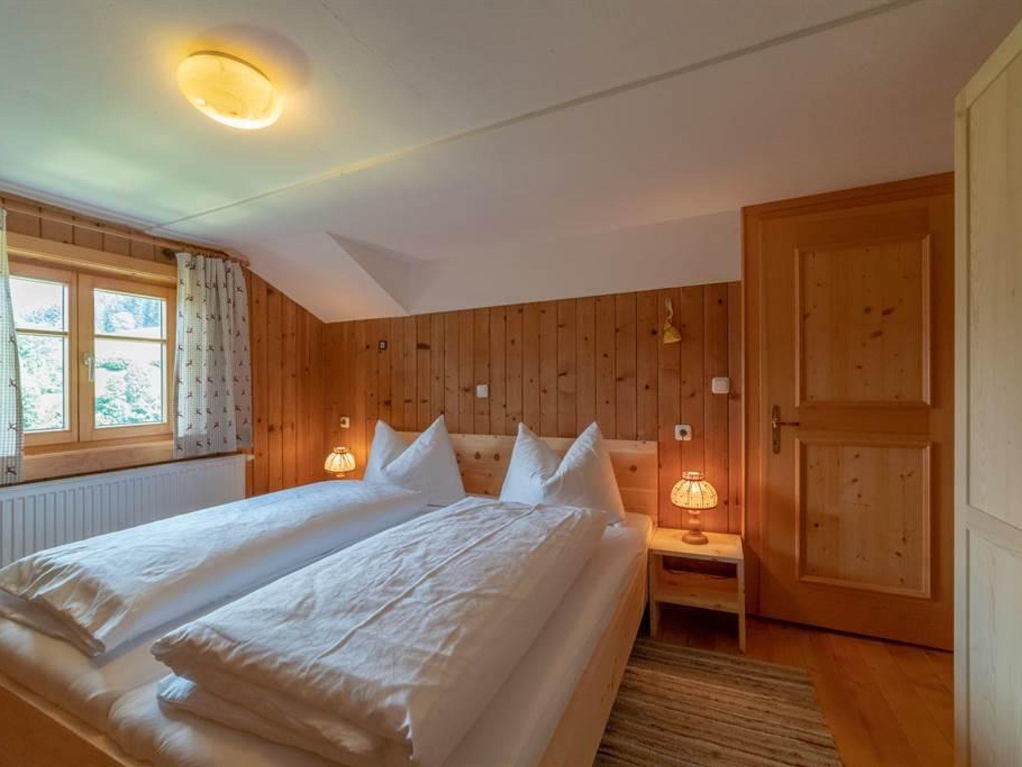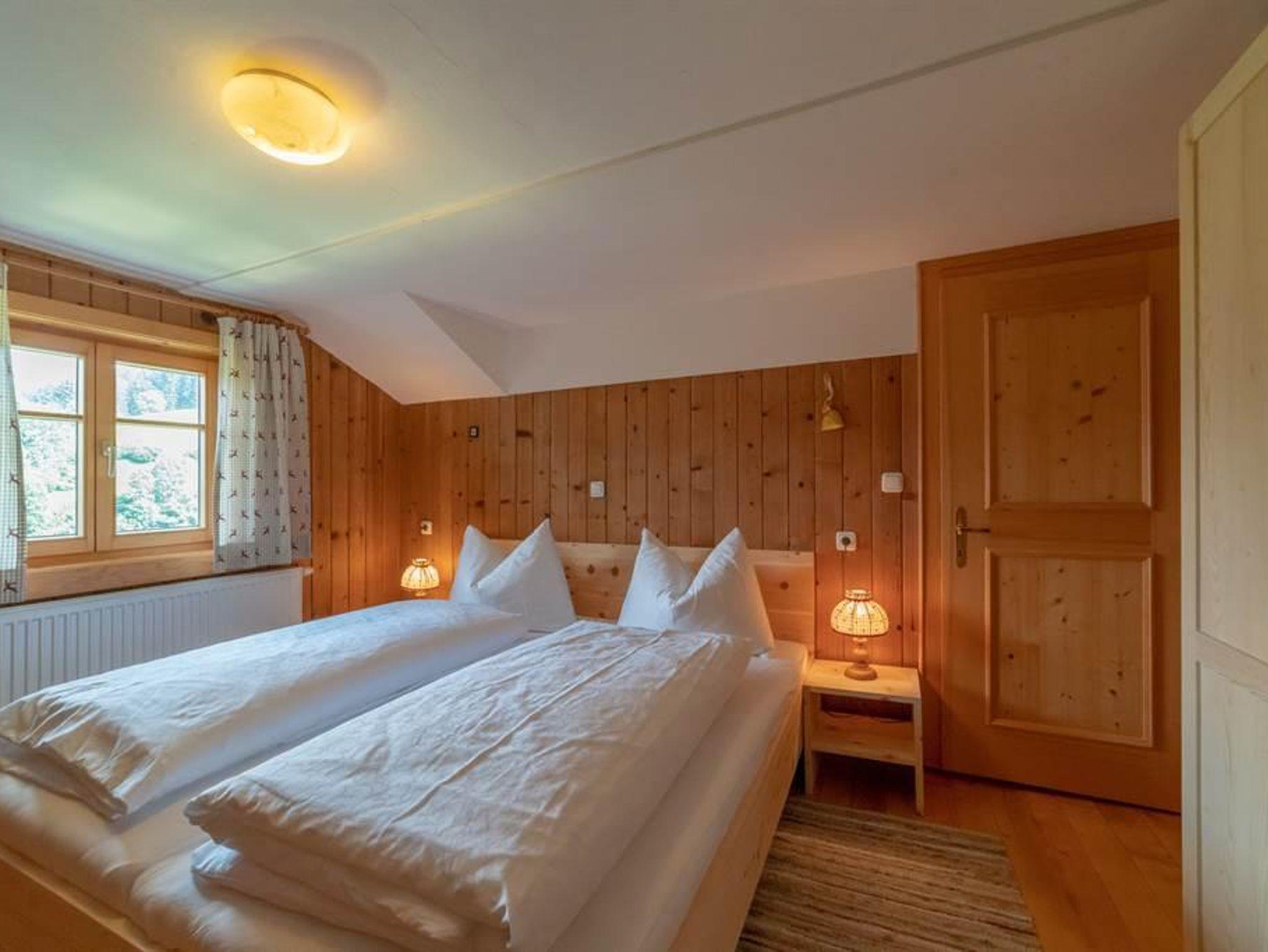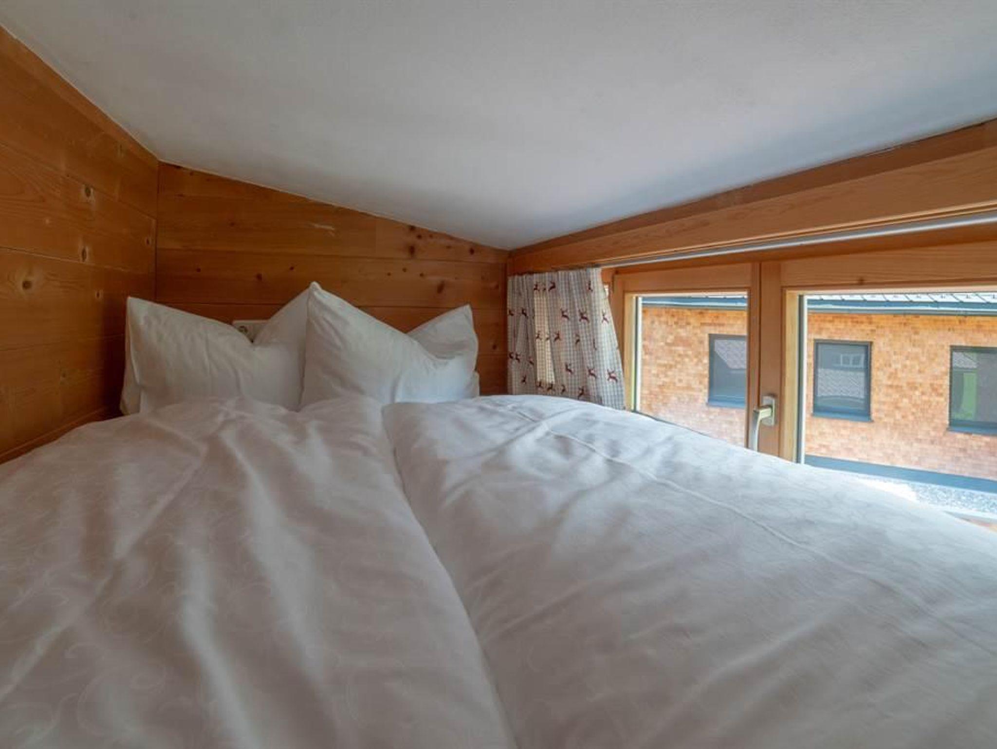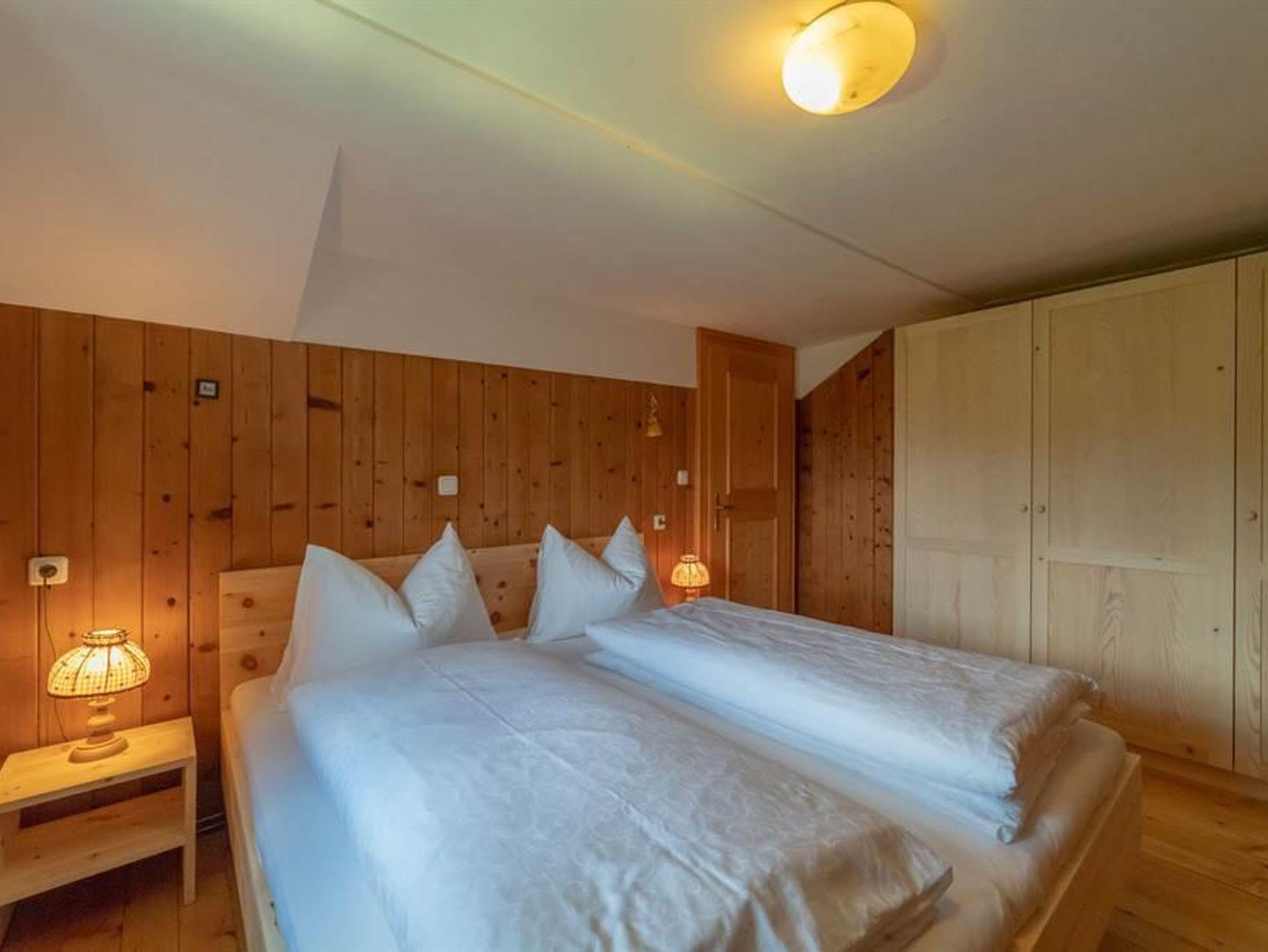 Im Haus Dokas mit 65 m2 im Dachgeschoss (Raumhöhe 2,07 m), Ost-, Süd-Westlage, bestehend aus einer Wohnküche mit Sitzecke, einer gemütlichen Stube mit einer schönen Couch, zwei Schlafzimmer mit Doppelbetten aus Zirbenholz und einer Schlafkammer mit einem Hochbett (140 x 200 cm), zwei Bädern mit Dusche/WC und einem Balkon mit komfortablen Möbeln.