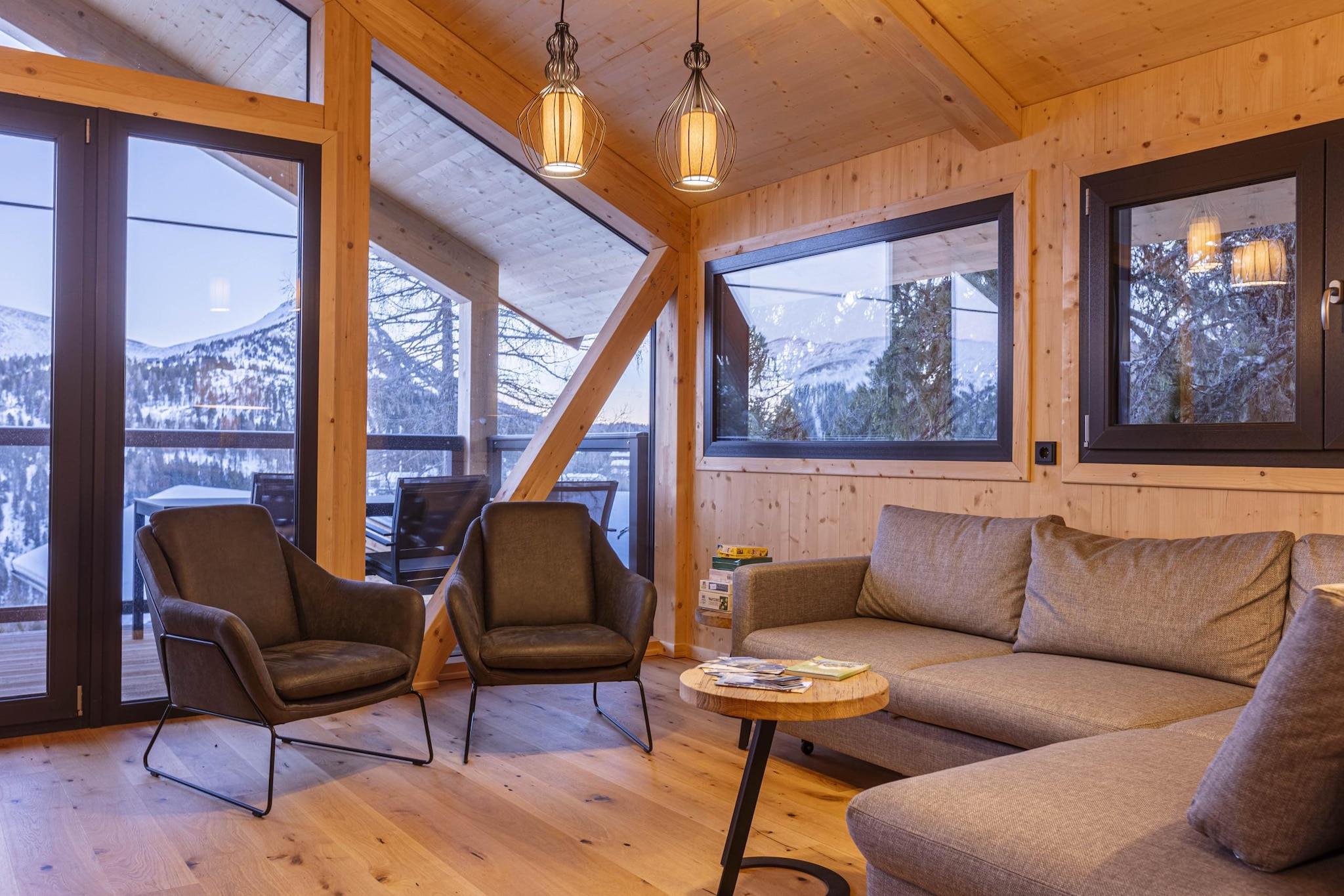 Oplev den rustikke charme og moderne komfort i denne udsøgte hytte i massivt træ, perfekt til en mindeværdig ferie med familie eller venner. Fordelt på 135 m² og gennemtænkt designet over to etager, kan dette dejlige tilflugtssted rumme op til 8 gæster komfortabelt. Slap af efter en dag med eventyr i din egen private finske sauna eller spabadet (bemærk: ingen spabad-funktion) for en beroligende afslutning på din dag. Turracher Höhe tilbyder en række aktiviteter året rundt. Om vinteren er det et populært skisportssted med velholdte pister, langrendsløjper og muligheder for snowboarding og kælkning. Om sommeren forvandler området sig til et vandre- og cykelparadis med maleriske stier og en betagende udsigt over bjergene. I stueetagen kan du nyde et fredfyldt soveværelse med dobbeltseng med eget badeværelse og to ekstra soveværelser med dobbeltsenge, der hver har private balkoner, hvor du kan nyde den omkringliggende udsigt. Den øverste etage fører dig til et hyggeligt soveværelse med dobbeltseng med separat dobbeltseng og et indbydende badeværelse komplet med badekar til ultimativ afslapning. Det åbne køkken er et kulinarisk tilflugtssted, fuldt udstyret med bestik og køkkengrej, keramisk kogeplade, ovn og opvaskemaskine, køleskab med fryser, brødrister, kedel, filterkaffemaskine og Nespresso kapselkaffemaskine. Et lille startsæt med opvaskemaskiner, opvaskemiddel, svamp, affaldsposer, rengøringsmidler og et viskestykke står klar ved din ankomst. Yderligere funktioner inkluderer gratis Wi-Fi, tv, et butlerkort (oplysninger gives på stedet), en elektrisk grill (ingen kul påkrævet), persienner for optimal mørklægning, en praktisk skistøvletørrer og mulighed for at medbringe din firbenede ven efter anmodning. Adgang til hytten er via en asfalteret hovedvej, der fører dig gennem en malerisk skov- og skovsti til dit charmerende feriehus.
