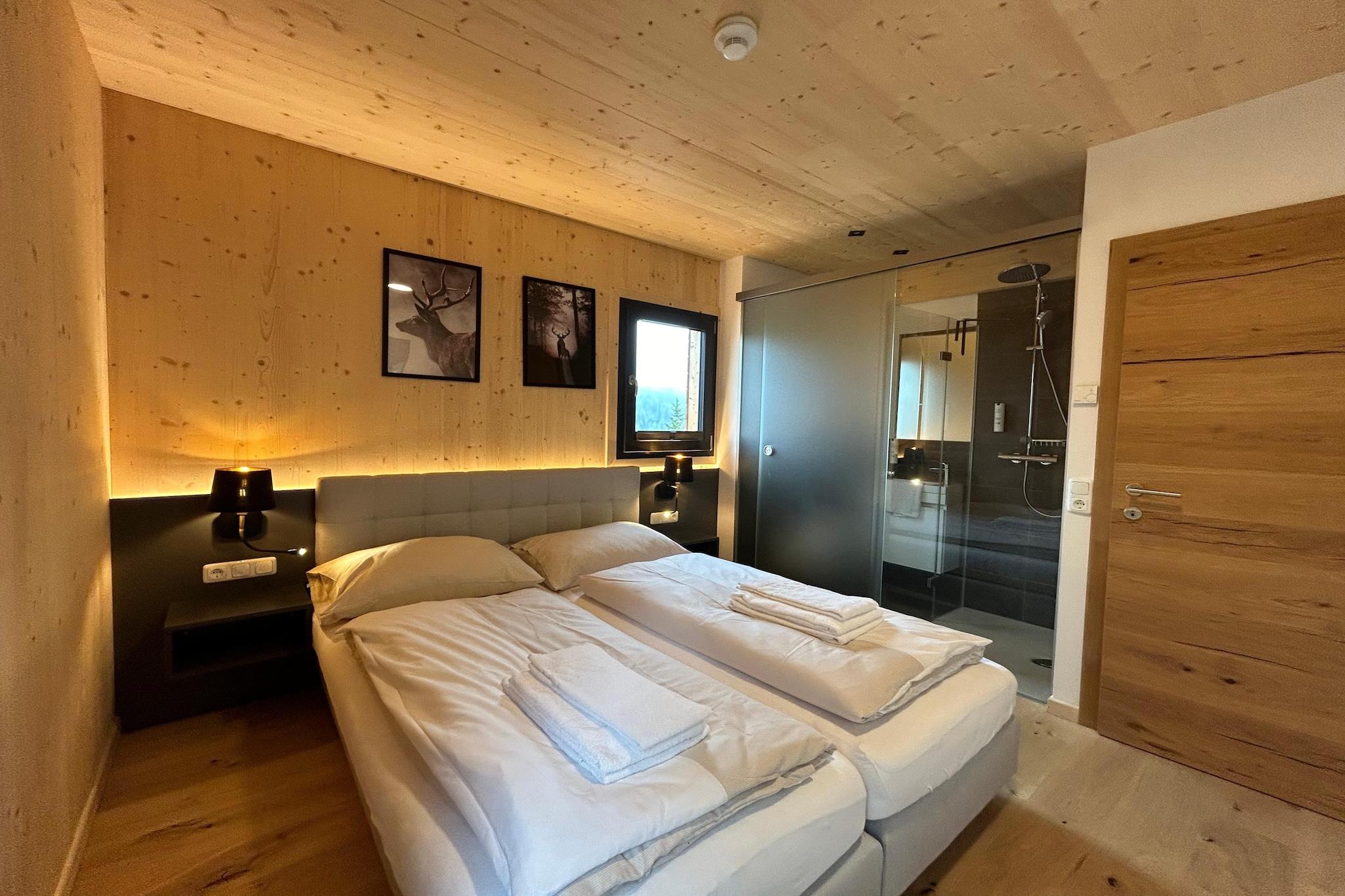 Denne indbydende hytte i massivt træ, der dækker 135 m² fordelt på to etager, rummer komfortabelt op til 8 gæster. Hytten har fire velindrettede soveværelser: et med dobbeltseng, eget badeværelse og balkon i stueetagen; en anden med dobbeltseng og balkon i stueetagen; et tredje soveværelse i stueetagen med dobbeltseng og eget badeværelse; og et soveværelse ovenpå med en dobbeltseng og en separat dobbeltseng, suppleret med et badeværelse med badekar. Slap af i den finske sauna indendørs eller nyd den fantastiske udsigt fra boblebadet på balkonen, som ikke inkluderer spabad. Turracher Höhe tilbyder en række aktiviteter året rundt. Om vinteren er det et populært skisportssted med velholdte pister, langrendsløjper og muligheder for snowboarding og kælkning. Om sommeren forvandler området sig til et vandre- og cykelparadis med maleriske stier og en betagende udsigt over bjergene. Det åbne køkken er fuldt udstyret med bestik, køkkengrej, keramisk kogeplade, ovn, opvaskemaskine og køleskab med fryser samt brødrister, kedel, filterkaffemaskine og Nespresso kapselkaffemaskine. Et lille startsæt med væsentlige rengøringsartikler vil blive leveret ved din ankomst. Yderligere faciliteter inkluderer gratis trådløs internetadgang, tv, et butlerkort (oplysninger gives på stedet), en skistøvletørrer og strålevarmere på balkonen til hyggelige sammenkomster. Adgang til hytten er via en asfalteret hovedvej efterfulgt af en naturskøn skov- og skovsti, der fører til dit fredfyldte tilflugtssted.