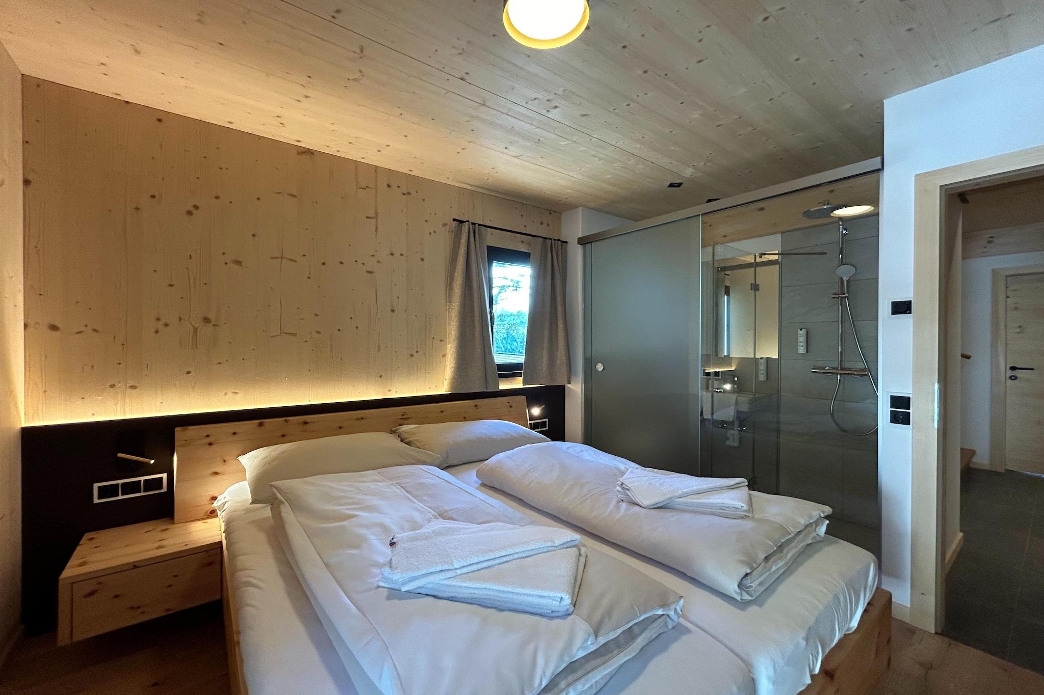 Denne charmerende hytte i massivt træ, der dækker 135 m² fordelt på to etager, giver et dejligt tilflugtssted for op til 8 gæster. Hytten har fire velindrettede soveværelser: to i stueetagen, hver med en dobbeltseng, eget badeværelse og balkon; et ekstra soveværelse i stueetagen med en dobbeltseng; og et rummeligt soveværelse ovenpå med en dobbeltseng og en separat dobbeltseng samt et badeværelse. Nyd en afslappende afslutning på dagen i den finske sauna indendørs eller nyd boblebadet på balkonen, som tilbyder en fredfyldt udsigt og er perfekt til at slappe af (bemærk: boblebadet har ikke spabad-funktionalitet). Turracher Höhe tilbyder en række aktiviteter året rundt. Om vinteren er det et populært skisportssted med velholdte pister, langrendsløjper og muligheder for snowboarding og kælkning. Om sommeren forvandler området sig til et vandre- og cykelparadis med maleriske stier og en betagende udsigt over bjergene. Det åbne køkken er fuldt udstyret til at opfylde alle dine kulinariske behov, herunder bestik, køkkengrej, en keramisk kogeplade, ovn, mikroovn, opvaskemaskine og køleskab med fryser. Yderligere faciliteter omfatter brødrister, kedel og Nespresso-kapselkaffemaskine. Et lille startsæt med væsentlige rengøringsartikler vil blive leveret ved din ankomst. Højdepunkter i hytten inkluderer gratis trådløs internetadgang, tv, et butlerkort (detaljer tilgængelige på stedet) og en skistøvletørrer. Adgang til hytten er via en asfalteret hovedvej, efterfulgt af en malerisk skov- og skovsti, der fører til dit indbydende feriehus.