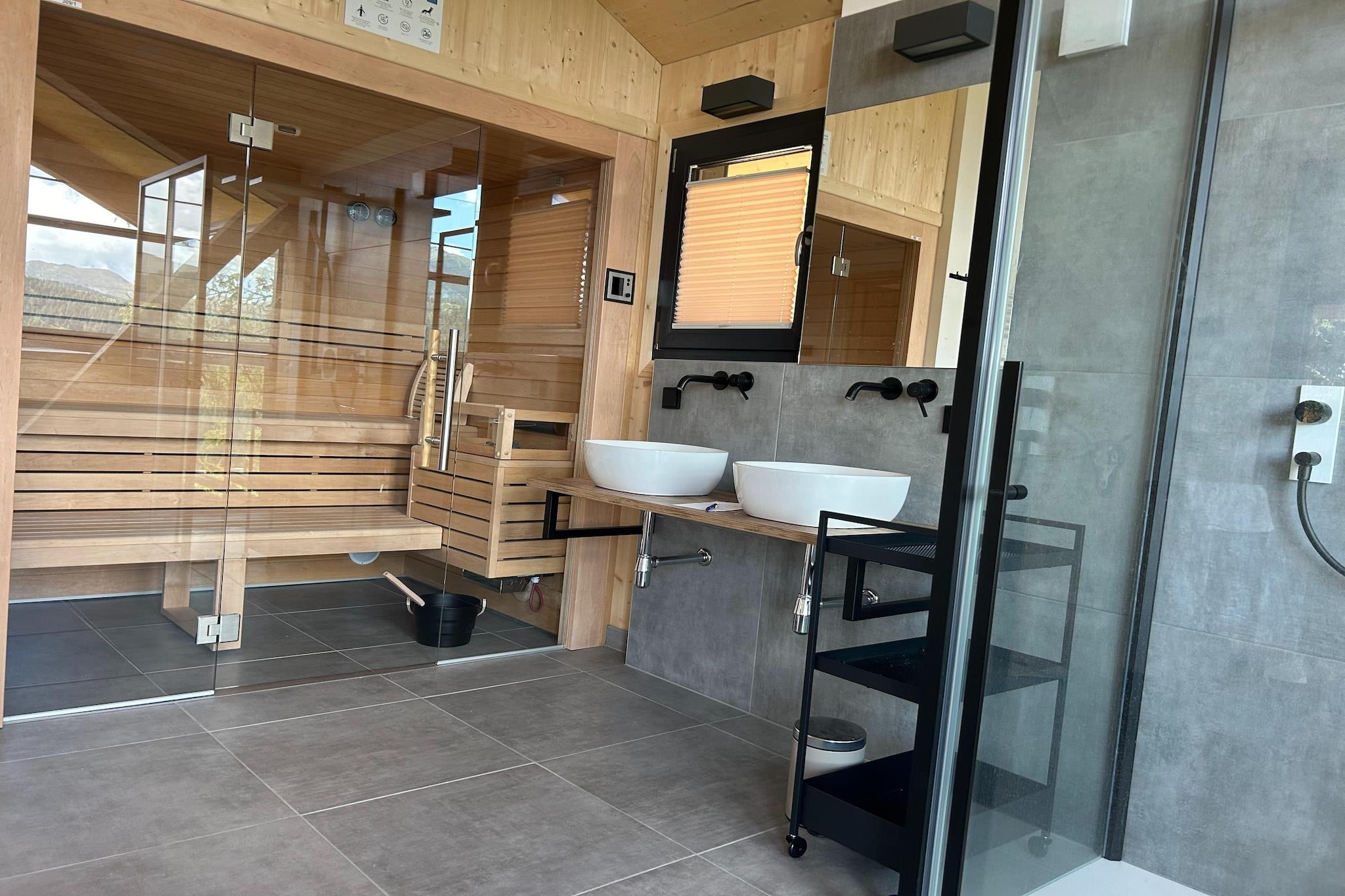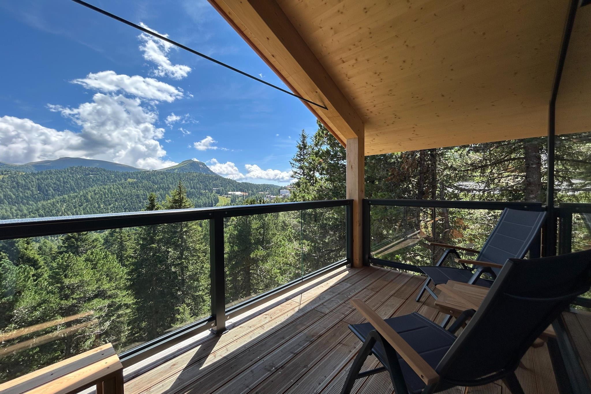 Oplev den perfekte alpine ferie i denne fantastiske hytte i massivt træ, der tilbyder 135 m² luksuriøs plads fordelt på tre smukt designede etager. Denne hytte kan rumme op til 8 gæster og kombinerer rustik charme med moderne bekvemmeligheder, hvilket giver et ideelt tilflugtssted i hjertet af fyrreskoven. Efter en dag med udendørs eventyr kan du slappe af i din private sauna eller nyde spabadet, begge designet til at tilbyde en hyggelig og afslappende afslutning på din dag. Hytten har 4 elegant indrettede soveværelser, hver med en dobbeltseng, og nogle af værelserne har private balkoner, hvor du kan nyde den fredfyldte udsigt over skoven. Med 4 badeværelser, hver med en-suite bruser, plus et ekstra rummeligt badeværelse med badekar, er der rigelig bekvemmelighed og privatliv for alle gæster. Det åbne køkken er fuldt udstyret til at opfylde alle dine kulinariske behov. Det inkluderer en keramisk kogeplade, ovn, opvaskemaskine og et køleskab med fryser, sammen med vigtigt bestik, køkkengrej og service. Yderligere apparater såsom brødrister, kedel og kaffemaskine er også til rådighed. For at gøre din ankomst mere behagelig, vil et lille startsæt inklusive opvaskemaskinefaner, opvaskemiddel (prøve), svamp, affaldsposer, rengøringsmidler og et viskestykke være klar til dig. Beliggende i den rolige fyrreskov i cirka 1.800 meters højde, tilbyder denne hytte rolige og maleriske omgivelser. Dit ophold inkluderer et Butler Card eller Butler Program for personlig service, hvilket sikrer en enestående og mindeværdig oplevelse. Nyd blandingen af luksus, komfort og naturlig skønhed i denne bemærkelsesværdige hytte.