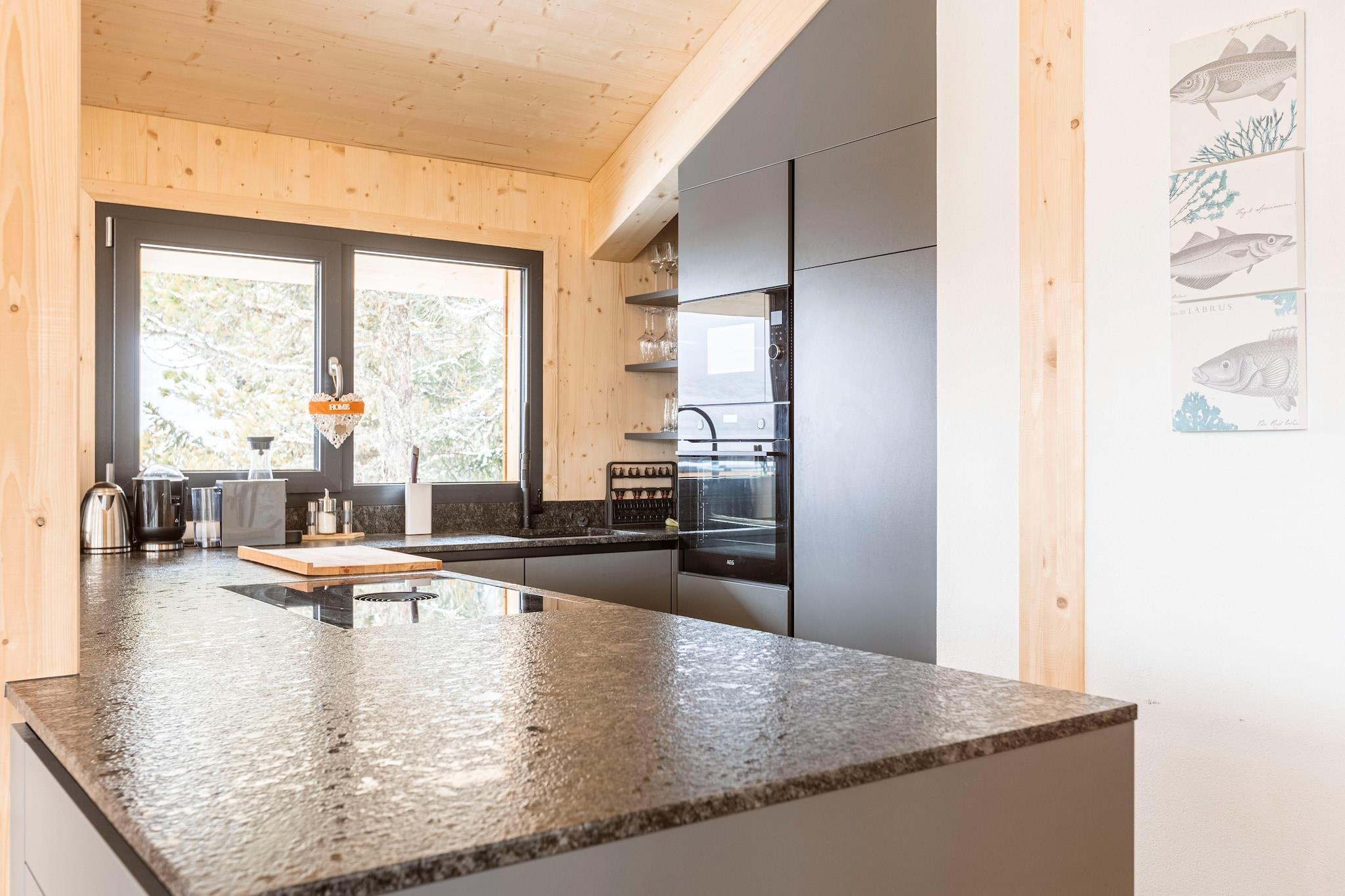 Velkommen til dit idylliske alpine tilflugtssted i denne charmerende 135 m² massive træhytte, designet til at tilbyde komfort og elegance på tværs af to indbydende etager. Perfekt til familier eller grupper, denne chalet kan rumme op til 8 gæster og kombinerer rustik charme med moderne bekvemmeligheder for at skabe en uforglemmelig ferie. Efter en dag med eventyr kan du slappe af i den finske sauna indendørs eller nyde et afslappende bad i boblebadet på balkonen, som tilbyder en fantastisk udsigt over det omkringliggende landskab og en hyggelig afslutning på din dag. Varmestråler på altanen sikrer, at du kan nyde varme, behagelige aftener udendørs. Hytten har 4 hyggelige soveværelser. I stueetagen finder du to soveværelser, hver med en dobbeltseng, sammen med et ekstra soveværelse, der inkluderer en dobbeltseng og et en-suite badeværelse for ekstra bekvemmelighed. Den øverste etage rummer et rummeligt soveværelse med en dobbeltseng og en separat dobbeltseng, ideel til at indkvartere ekstra gæster. Hytten har også et stort badeværelse med badekar, der giver rigelig plads til afslapning. Det åbne køkken er fuldt udstyret til at imødekomme alle dine kulinariske behov. Det inkluderer en keramisk kogeplade, ovn, mikroovn, opvaskemaskine og et køleskab med fryser. Essentielt bestik, køkkengrej og tallerkener leveres sammen med en grillbrødrister, kedel, filterkaffemaskine og Nespresso kapselkaffemaskine. Et lille startsæt med opvaskemaskiner, opvaskemiddel (prøve), svamp, affaldsposer, rengøringsmidler og et viskestykke vil være klar ved din ankomst. Yderligere højdepunkter inkluderer gratis Wi-Fi, TV, en skistøvletørrer og trappebeskyttelse til børn, hvilket sikrer sikkerhed og bekvemmelighed for alle familiemedlemmer. Butlerkortet (detaljerne findes på stedet) tilbyder personlig service til at forbedre dit ophold. Bemærk venligst, at adgang til hytten involverer at rejse via en asfalteret hovedvej efterfulgt af en naturskøn skov- og skovsti, hvilket tilføjer den afsondrede charme ved dit alpine tilbagetog.