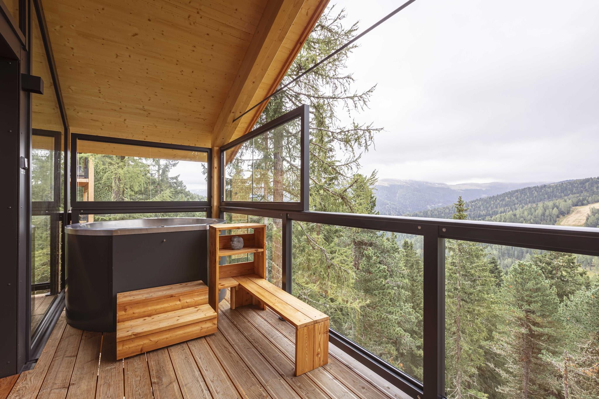 På 135 m² byder det massive træ-chalet plads til op til 8 personer på 3 etager. Sommerhuset har 4 soveværelser med dobbeltsenge (delvist med balkon), 3 badeværelser med brusekabine en suite og et stort badeværelse med badekar. For en hyggelig afslutning på dagen sørger en sauna indendørs samt en hot tub på balkonen med udsigt! Det åbne køkken er fuldt udstyret: bestik og (køkken-) service er til rådighed, en keramisk kogeplade, ovn, opvaskemaskine og et køleskab med fryser er også en del af udstyret, såvel som brødrister, elkedel og en kaffemaskine. Feriehuse på Turracher Höhe, Steiermark • I lærketræsskoven i ca. 1.800 meters højde • Med privat sauna og hot tub • Butlerkort eller butlerprogram inkluderet Bemærk venligst, at dette er eksempelbilleder. Udstyr og design kan variere. VIGTIGT: Din ankomst til check-in sker ad en asfalteret hovedvej. Derefter når du dit sommerhus ad en skov- og skovvej.