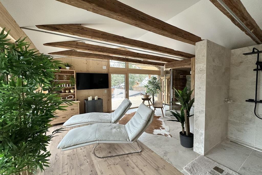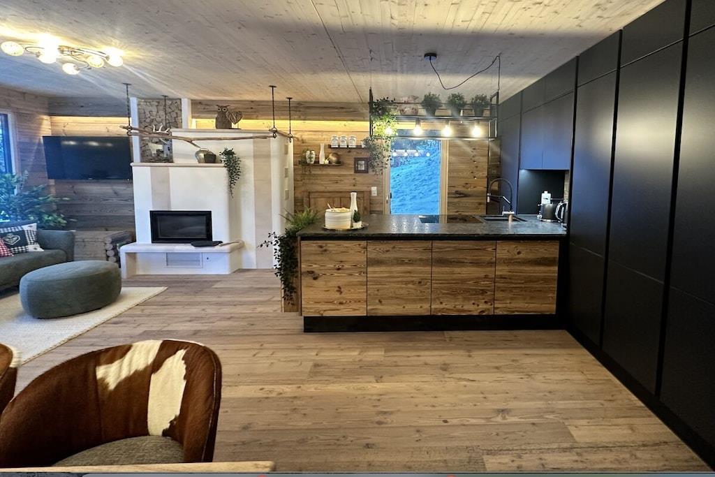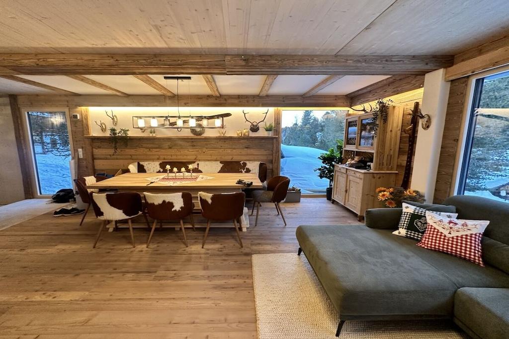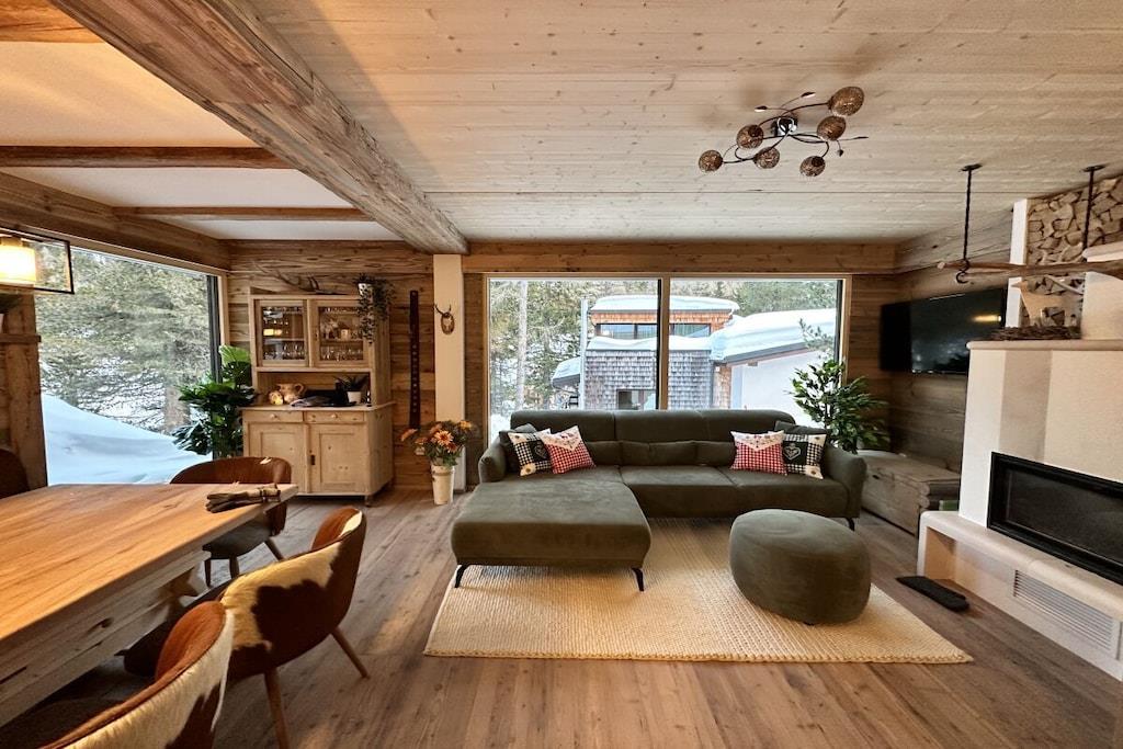 "Charmerende alpehyttearkitektur møder luksuriøs komfort" Nyd dit ophold i en hytte, der minder om arkitekturen i traditionelle alpehytter, men som tilbyder al den moderne luksus. Den perfekte symbiose af hygge og elegance. Den har plads til op til 12 gæster og har 220 m² boligareal, fire rummelige soveværelser, der inviterer dig til at drømme, fem moderne badeværelser, ideelt for familier og grupper, en rummelig stue med kakkelovn til hyggelige aftener, et eksklusivt panoramisk saunaområde med udsigt over skibakken, en romantisk udendørs pejs og fire overdækkede parkeringspladser.