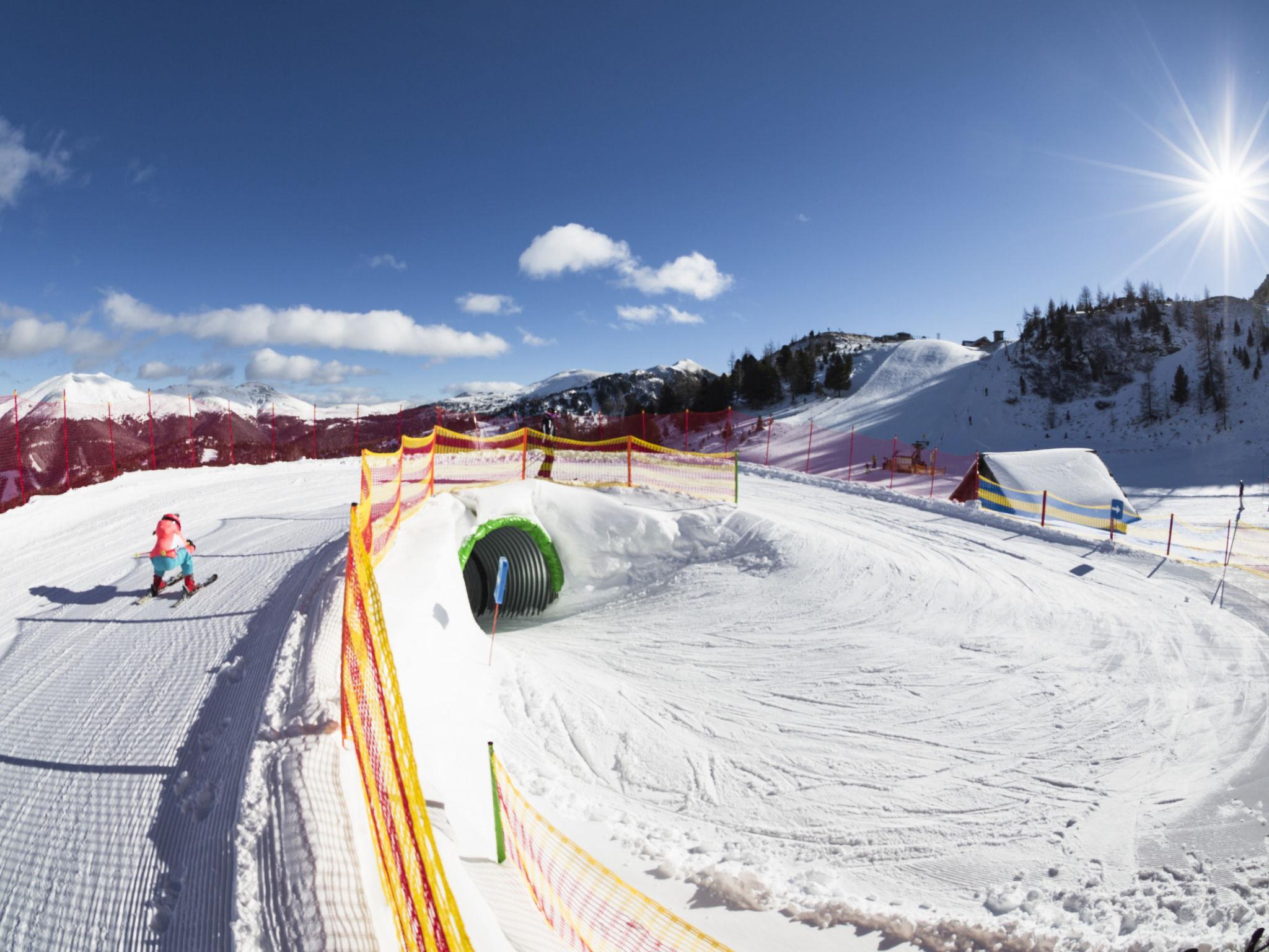 Turracher Höhe: Very comfortable holiday village "Alpenpark Turrach by Alps Resorts", 1'800 m a.s.l.. 49 houses in the resort. 2 km from the centre, 2 km from the lake, 2 km from the skiing area, in the woods. In the complex: reception, WiFi, storage room for skis, central heating system. In Winter: please take snow chains. Parking (for 2 cars, limited number of spaces, in winter). Central parking spaces. Supermarket 10 km, restaurant 2 km, café 2 km, lake Turracher See 2 km. Walking paths from the house 10 m, skisport facilities 2 km, ski rental 2 km, ski school 1 km, children's ski school 2 km, cross country ski track 2 km. Nearby attractions: Edelsteingallerie Kranzelbinder, Montanmuseum Turrach 7 km, Nockalm Panoramastraße 7 km. Hiking paths: 3 Seen Wanderweg. Free ski bus service to the ski region Turracherhöhe. All houses/apartments are individually designed/furnished. The holiday properties may differ in situation, size and location. The distance to the ski lifts and the town center can be 1 - 2 km depending on the location of the houses. ATTENTION: Piste butler (“Pistenbutler” winter program) and “Almbutler” program from mid-June to mid-October also included! The reception building (ski room, reception) is outside the holiday village!