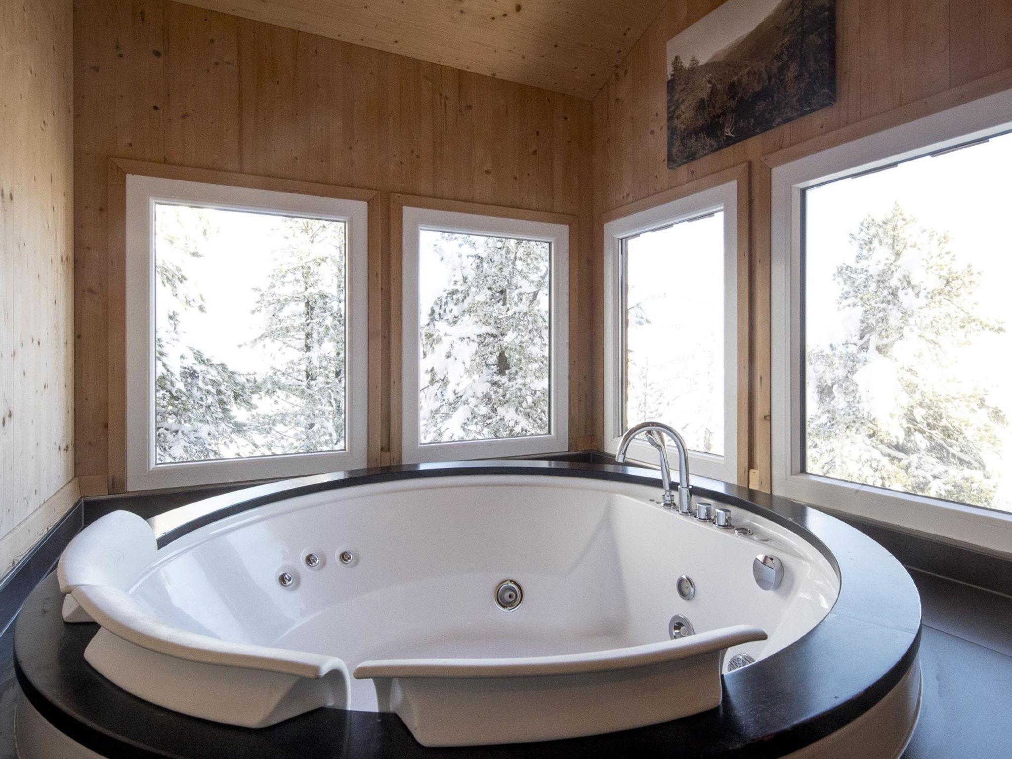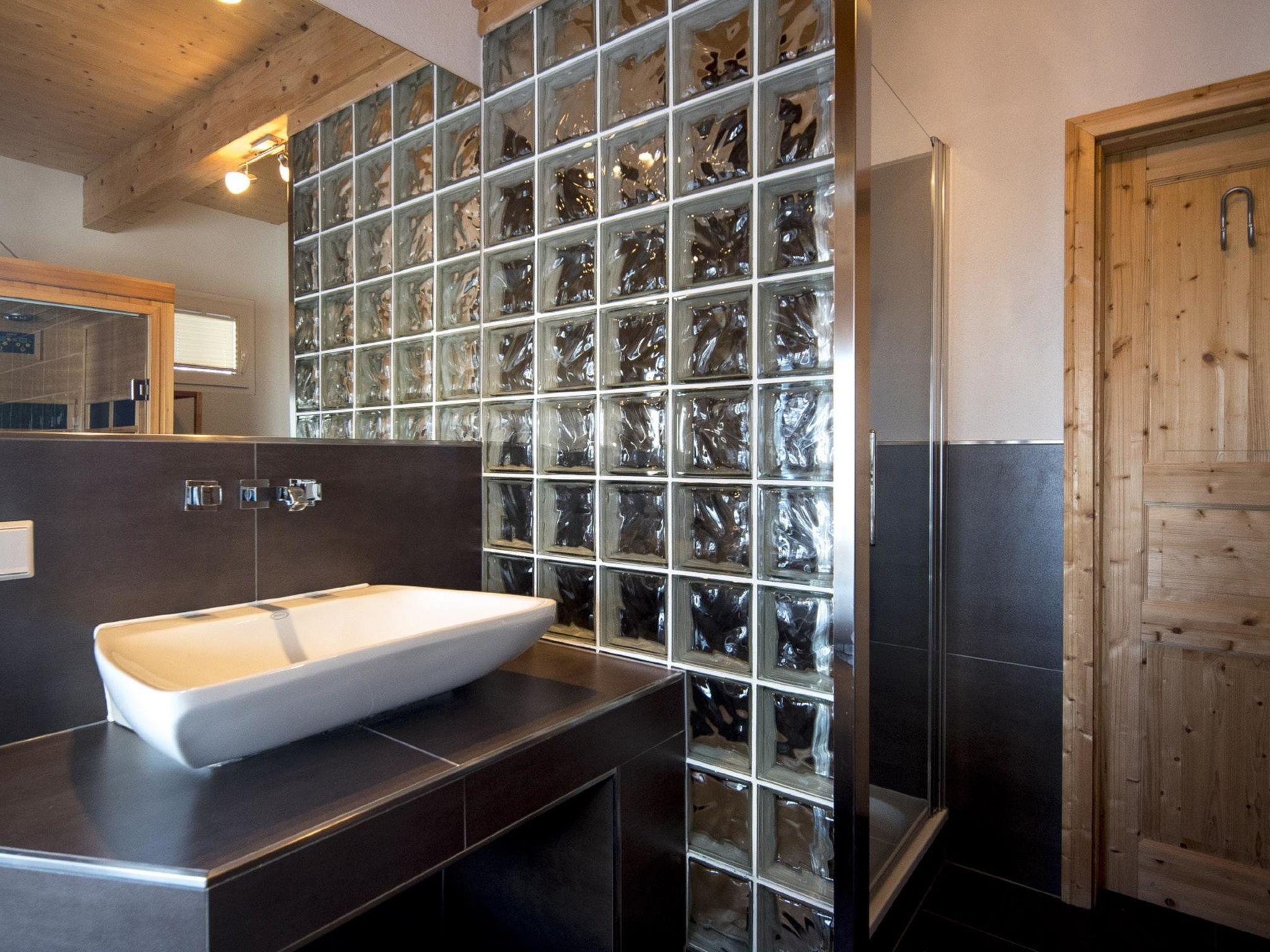 " 4 mit IR-Sauna & Sprudelwanne innen", 5-room chalet 120 m2 on 2 levels. Luxurious and tasteful furnishings: living/dining room with dining nook and satellite TV (flat screen). Open kitchen (oven, dishwasher, 4 ceramic glass hob hotplates, toaster, kettle, microwave, electric coffee machine). Shower/WC. Upper floor: 2 double bedrooms. 2 rooms, each room with 1 bed and 1 double bed. 2 showers/WC, hydro massage bath, Sauna. Balcony. Balcony furniture. Beautiful view of the mountains. Facilities: Internet (WiFi, free). Please note: non-smokers only. The sauna in the wellness pool is an infrared sauna.