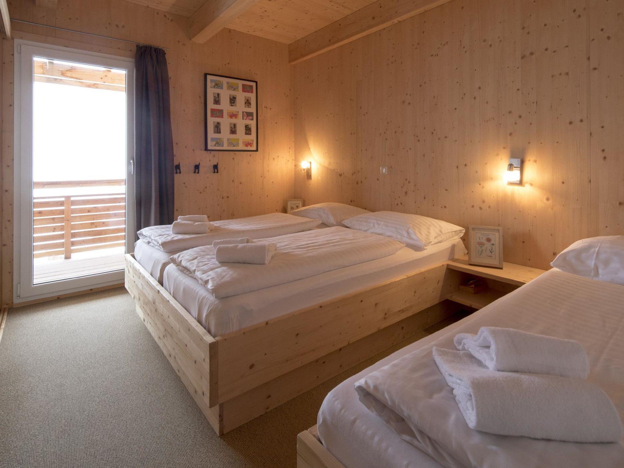 " 5 mit IR-Sauna&Sprudelbad innen", 5-room chalet 120 m2 on 2 levels. Luxurious and tasteful furnishings: living/dining room with dining nook and satellite TV (flat screen). Open kitchen (oven, dishwasher, 4 ceramic glass hob hotplates, toaster, kettle, microwave, electric coffee machine). Shower/WC. Upper floor: 2 double bedrooms. 1 room with 1 bed and 1 double bed. 1 room with 2 x 2 bunk beds. Bath/WC, shower/WC, hydro massage bath, Sauna. Balcony. Balcony furniture. Beautiful view of the mountains. Facilities: Internet (WiFi, free). Please note: non-smokers only. The sauna is an infrared cabin.