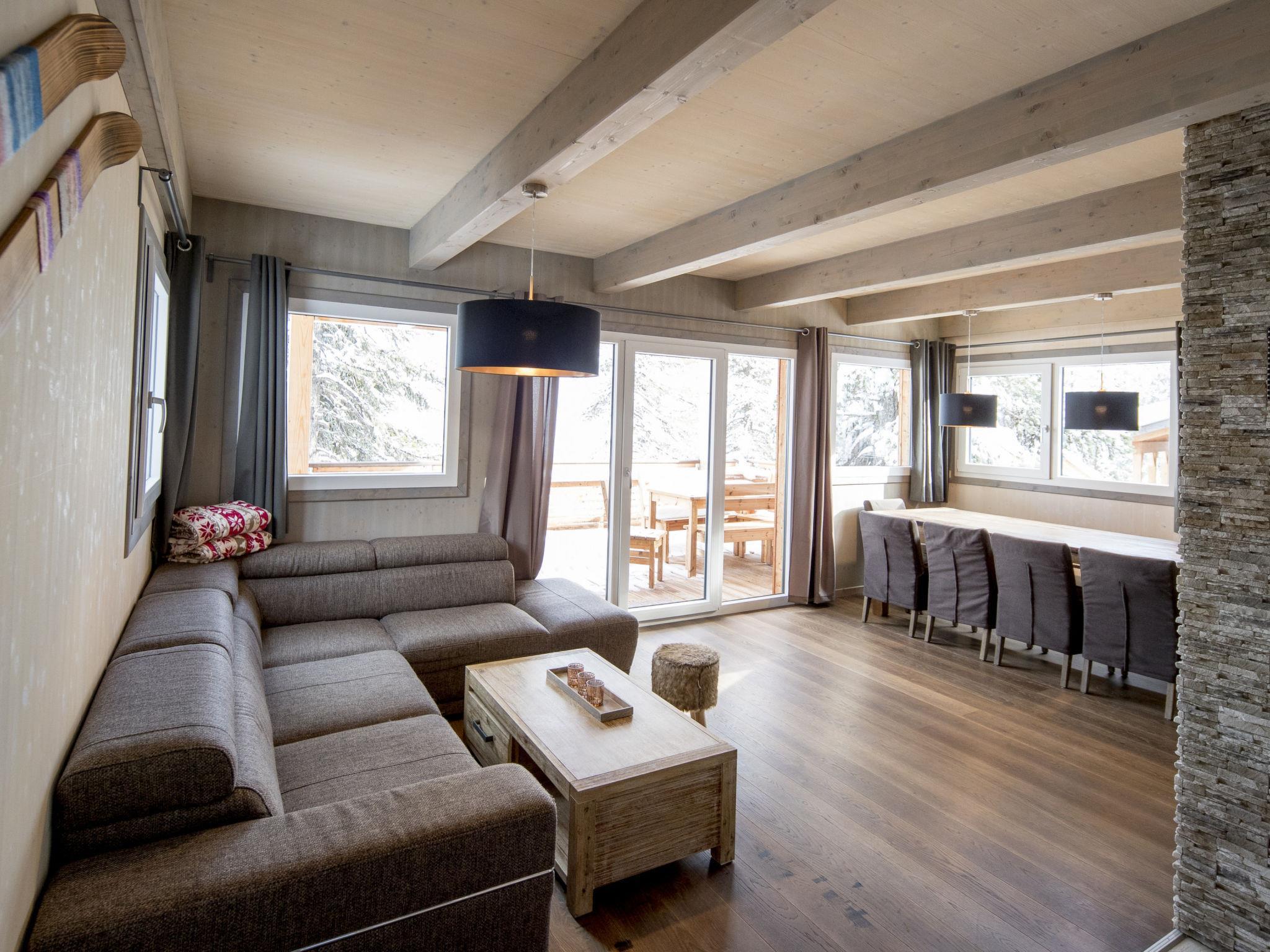 " 35 mit IR-Sauna& Sprudelbad Innen", 5-room chalet 120 m2 on 2 levels. Luxurious and tasteful furnishings: living/dining room with dining nook and satellite TV (flat screen). Open kitchen (oven, dishwasher, 4 ceramic glass hob hotplates, toaster, kettle, microwave, electric coffee machine). Shower/WC. Upper floor: 2 double bedrooms. 1 room with 1 x 2 bunk beds, 1 double bed. 1 room with 2 x 2 bunk beds. Bath/WC, shower/WC, hydro massage bath, Sauna. Balcony. Balcony furniture. Beautiful view of the mountains. Facilities: Internet (WiFi, free). Please note: non-smokers only. The sauna is an infrared cabin.