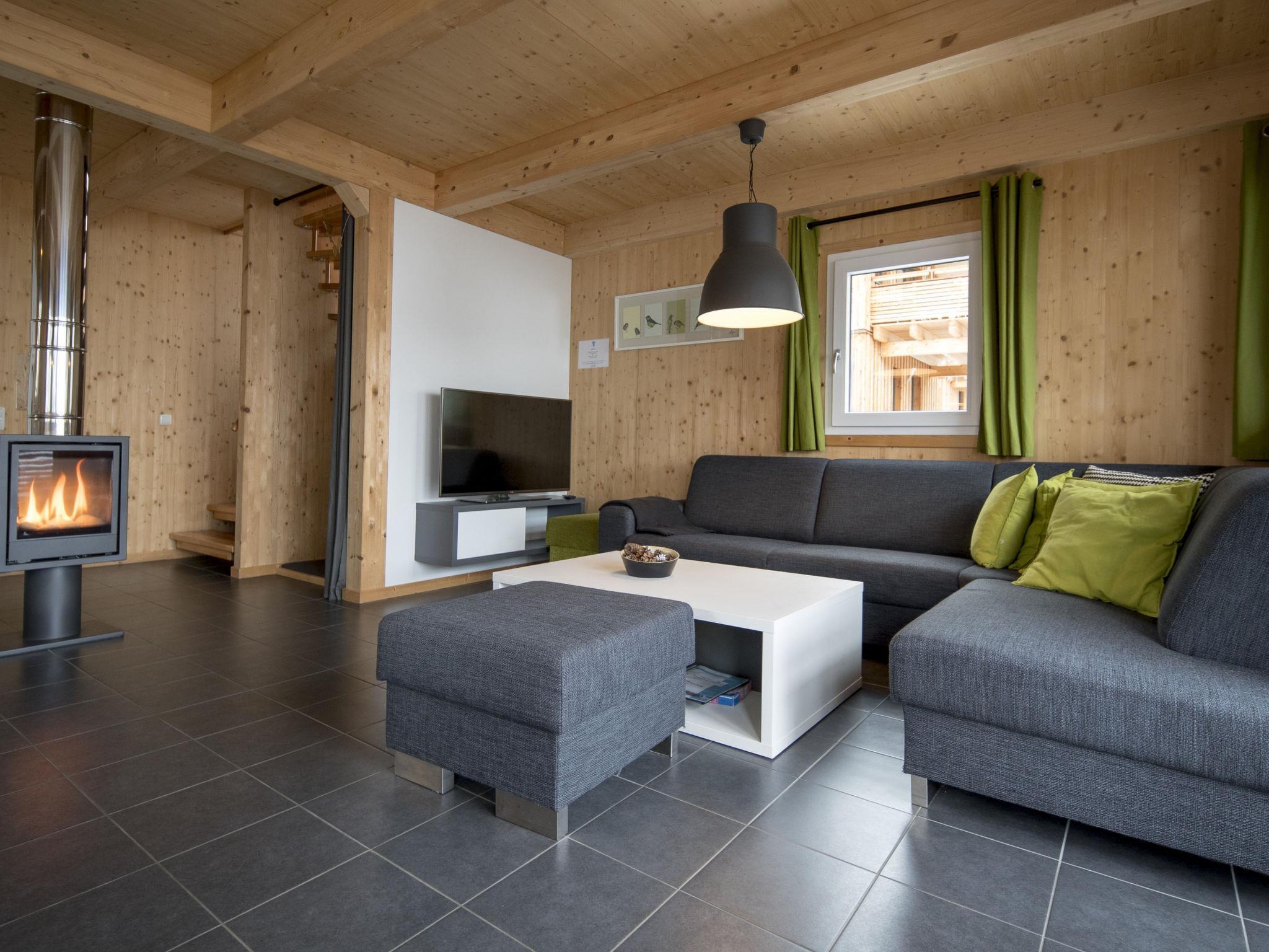 " 45 mit IR-Sauna und Sprudelbad innen", 5-room chalet 120 m2 on 2 levels. Luxurious and tasteful furnishings: living/dining room with dining nook and satellite TV (flat screen). Open kitchen (oven, dishwasher, 4 ceramic glass hob hotplates, toaster, kettle, microwave, electric coffee machine). Shower/WC. Upper floor: 2 double bedrooms. 1 room with 1 x 2 bunk beds, 1 double bed. 1 room with 2 x 2 bunk beds. Bath/WC, shower/WC, hydro massage bath, Sauna. Balcony. Balcony furniture. Beautiful view of the mountains. Facilities: Internet (WiFi, free). Please note: non-smokers only. The sauna is an infrared cabin.