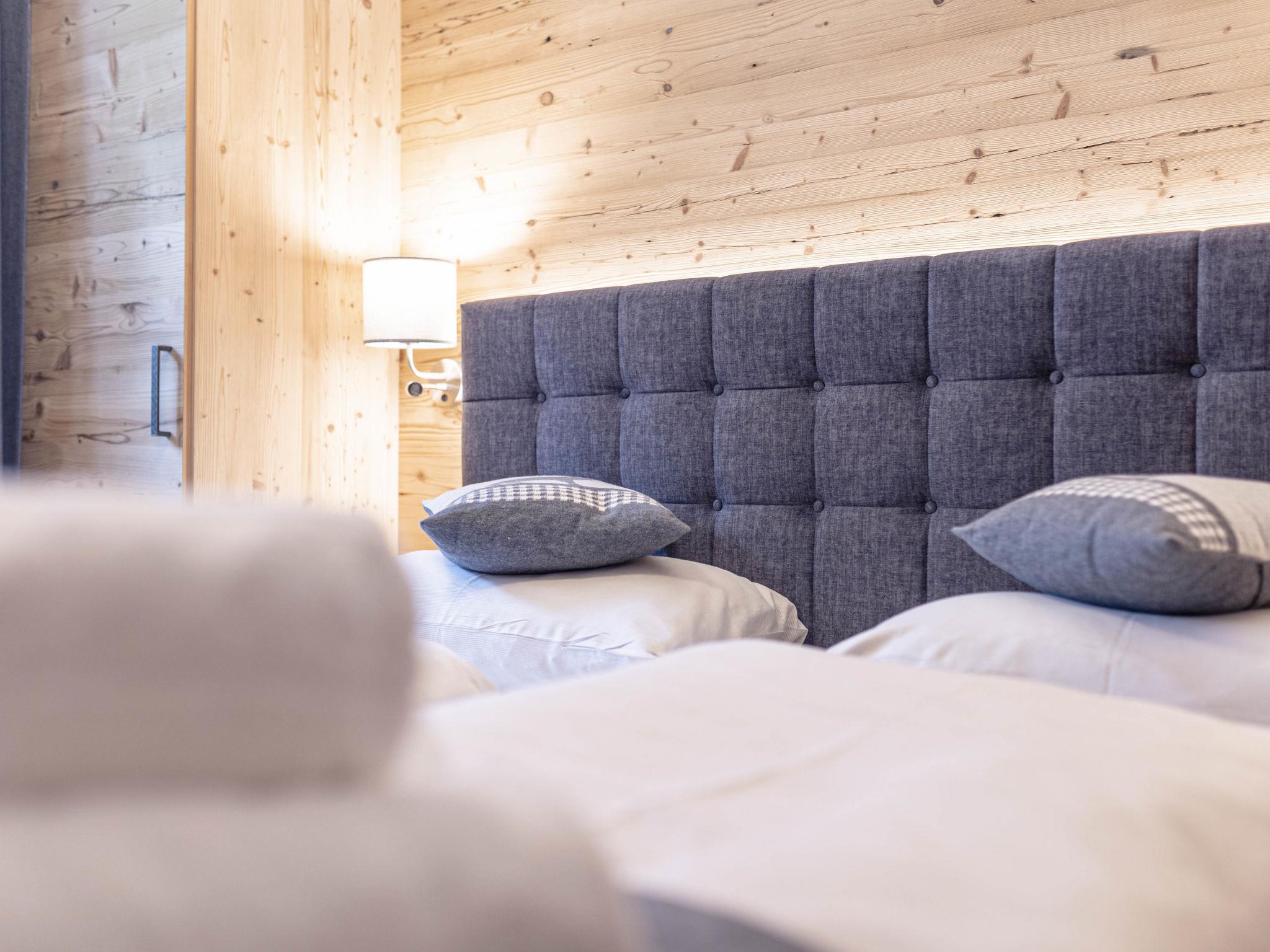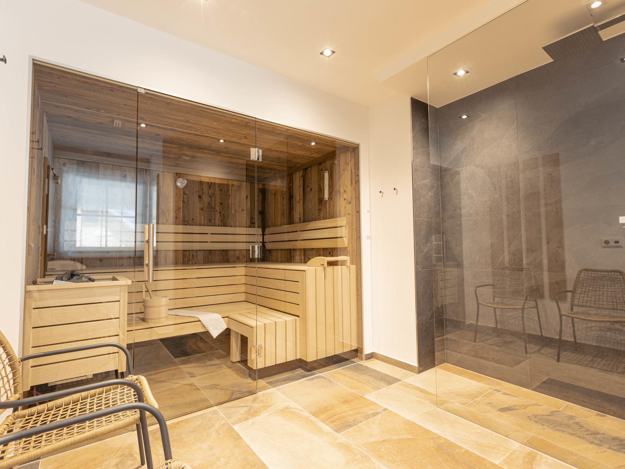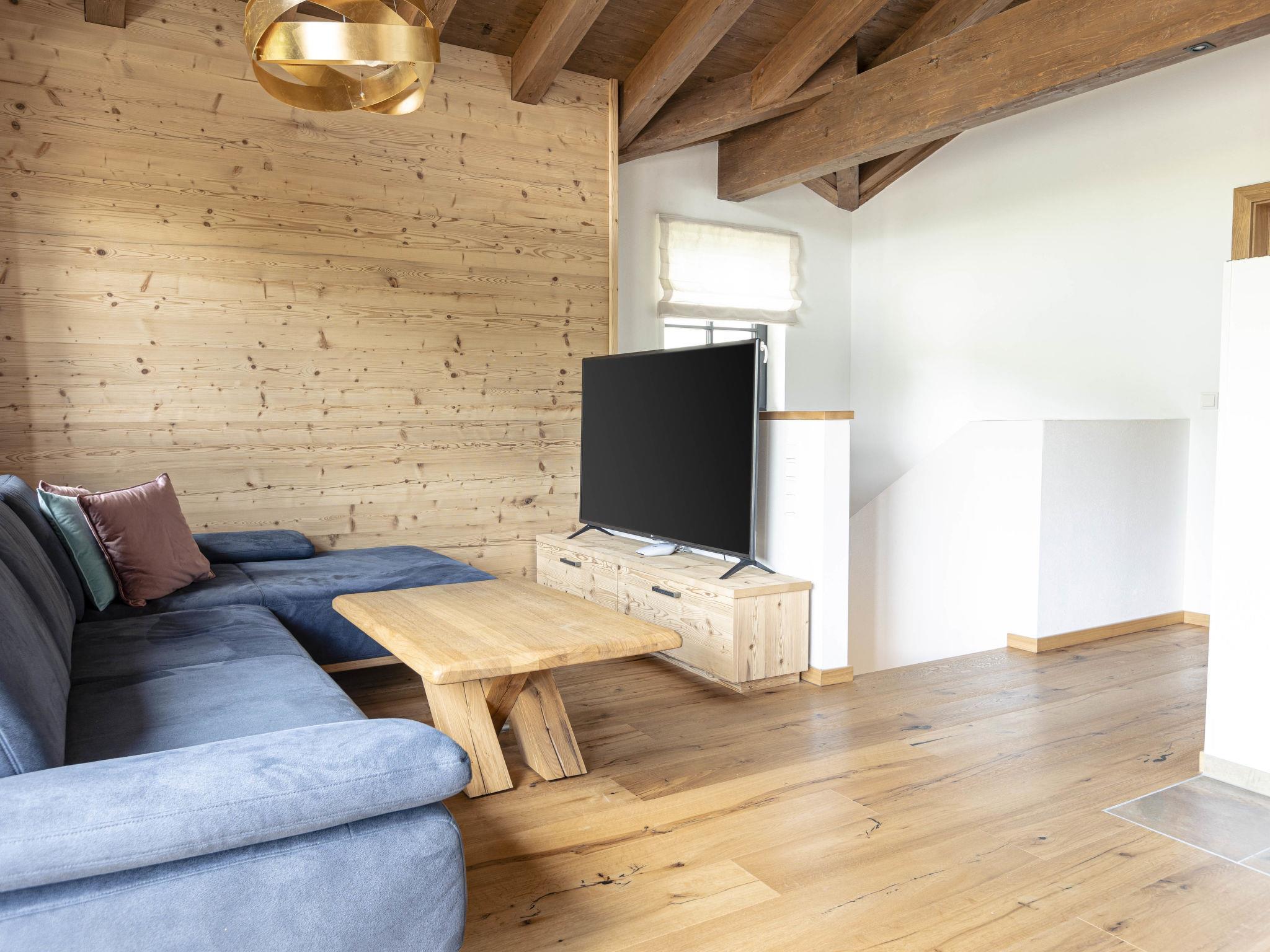 "Superior für 10 Personen mit Sauna", 5-room chalet 130 m2. Bright, comfortable and tasteful furnishings: large living/dining room with open-hearth fireplace, dining nook, satellite TV and flat screen. 2 double bedrooms. 1 room with 2 x 2 bunk beds. 1 double bedroom with bathroom. Open kitchen (oven, dishwasher, 4 ceramic glass hob hotplates, freezer, electric coffee machine). 3 showers/WC. Balcony or terrace. Terrace furniture, balcony furniture. Very beautiful view of the mountains and the countryside. Facilities: sauna. Internet (WiFi, free). Please note: non-smokers only. The property is one of a type of property or apartment.
