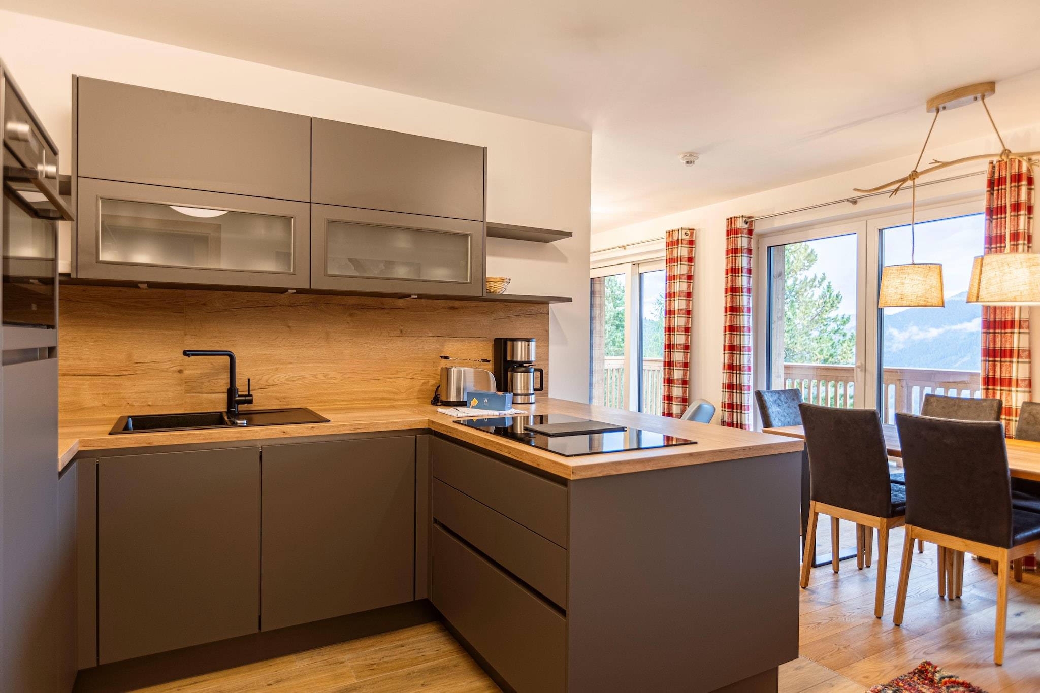 Velkommen til dit ideelle alpine tilbagetog, en charmerende lejlighed beliggende på den naturskønne Turracher Höhe i Steiermark. Denne velindrettede lejlighed spænder over 72 m² og rummer komfortabelt op til 6 gæster, hvilket gør den perfekt til familier eller små grupper, der leder efter en hyggelig bjergflugt. Lejligheden har tre elegant indrettede soveværelser, hver med en dobbeltseng for at sikre en god nattesøvn. Med tre moderne badeværelser udstyret med forfriskende brusere, er bekvemmelighed altafgørende for alle gæster. Træd udenfor til din private terrasse, hvor du kan nyde den fredfyldte skønhed i den omkringliggende fyrreskov og nyde den sprøde bjergluft. Denne lejlighed ligger i den rolige fyrreskov omkring 1.800 meter over havets overflade og tilbyder nem adgang til en række udendørs aktiviteter. Om vinteren kan du udforske de nærliggende skiløjper og stier, mens sommeren byder på muligheder for vandreture, mountainbiking og at værdsætte det betagende alpine landskab. Dit ophold inkluderer også det eksklusive Butler Card eller Butler-program, der giver et ekstra niveau af personlig service for at forbedre din bjergoplevelse. Det åbne køkken er designet med både funktionalitet og stil i tankerne. Den er fuldt udstyret med alt hvad du behøver for at tilberede lækre måltider, inklusive bestik, køkkengrej, en keramisk kogeplade, ovn, opvaskemaskine og et køleskab med fryser. Yderligere faciliteter såsom en brødrister, kedel og kaffemaskine gør det nemt at nyde måltider i ro og mag. For at sikre en gnidningsløs start på dit ophold, vil der blive stillet et lille startsæt til rådighed, inklusive opvaskemaskinefaner, opvaskemiddel, en svamp, affaldsposer, rengøringsmidler og et viskestykke.