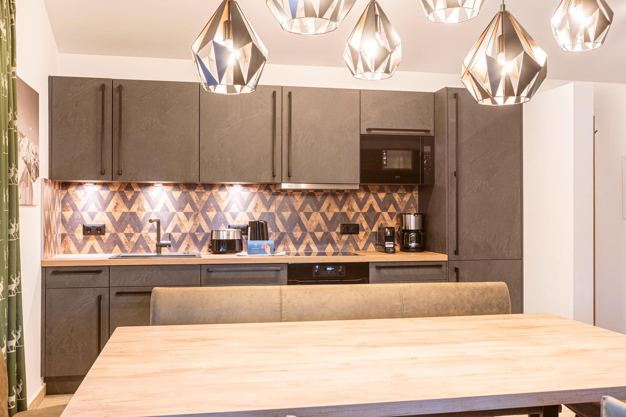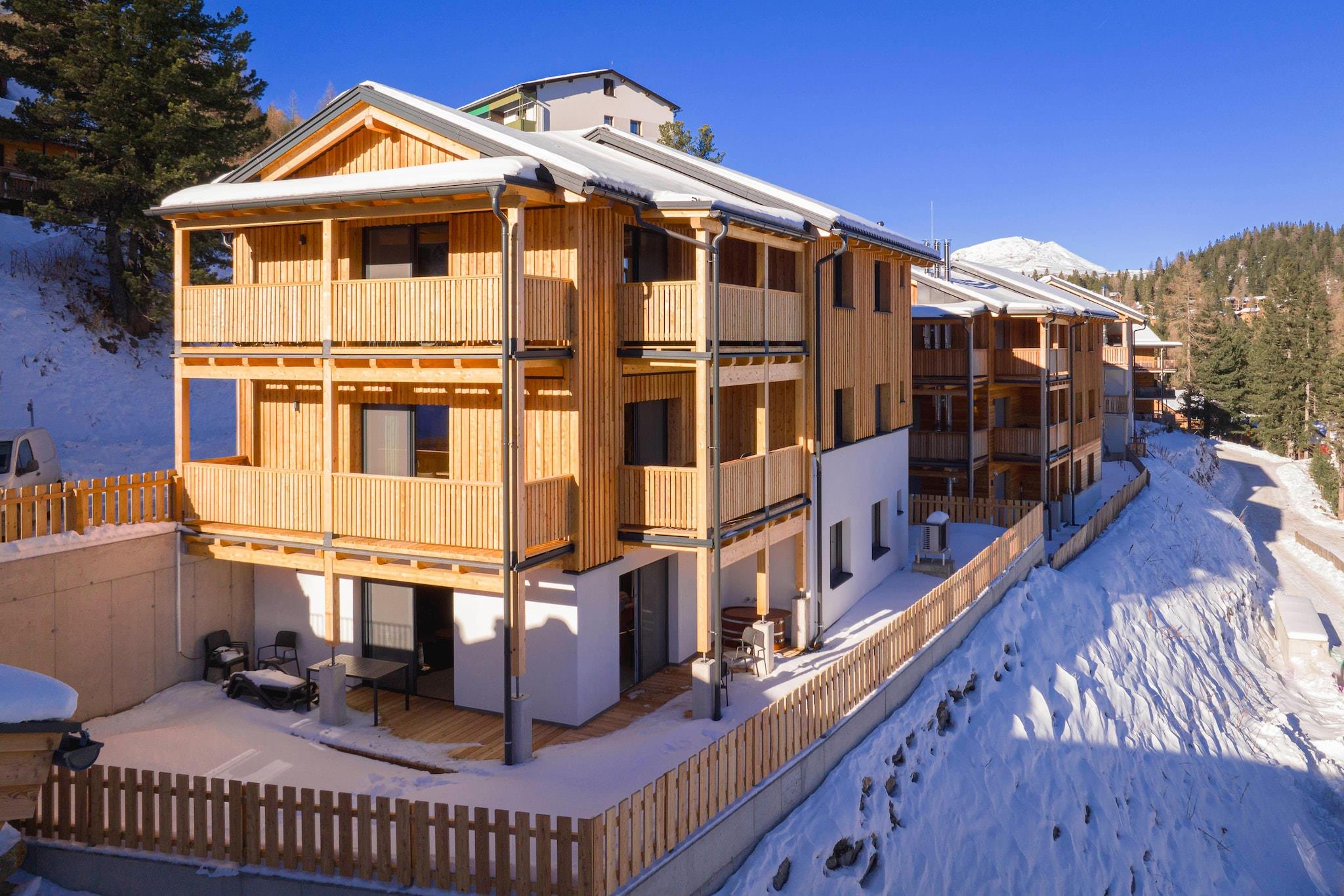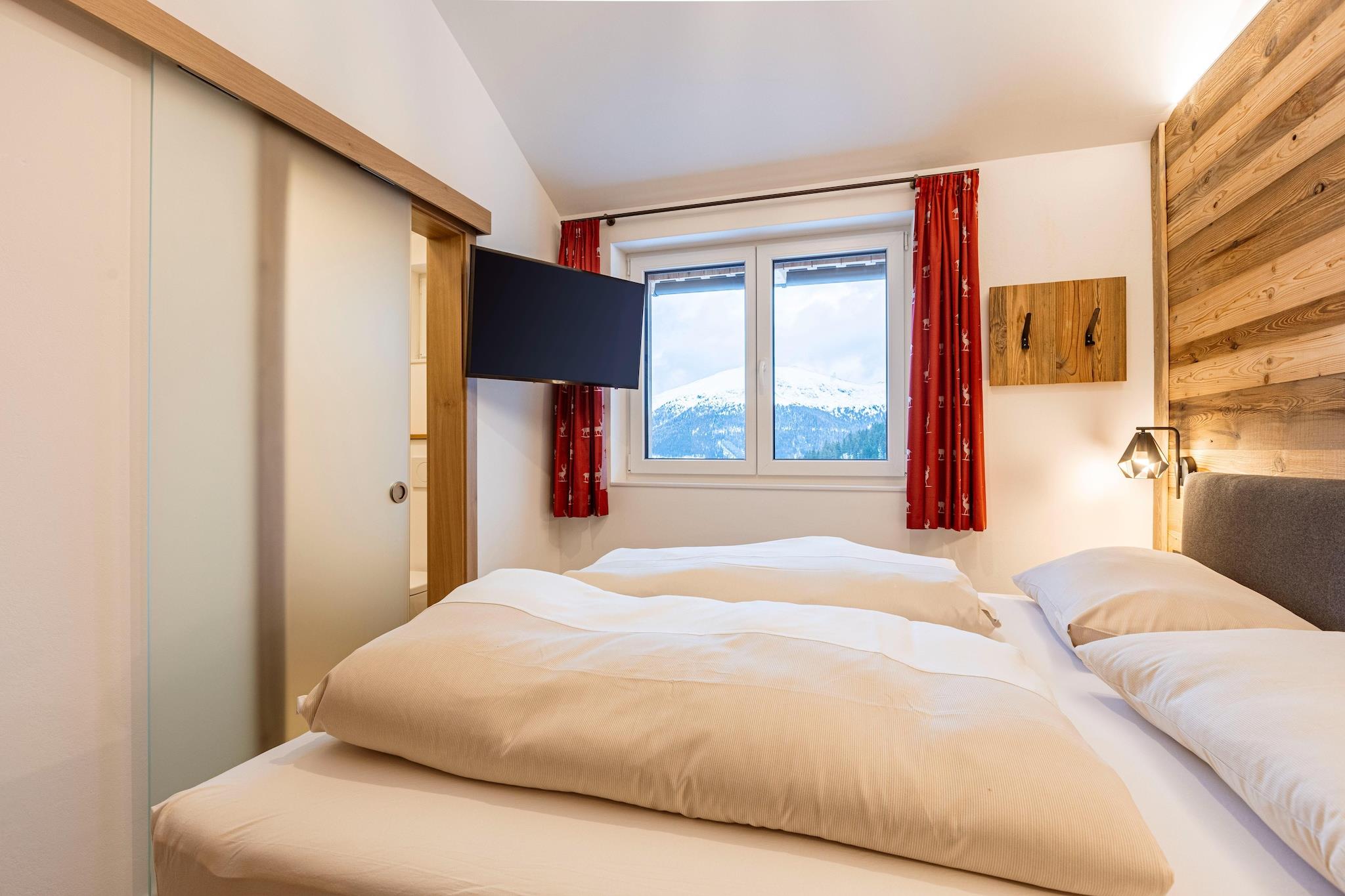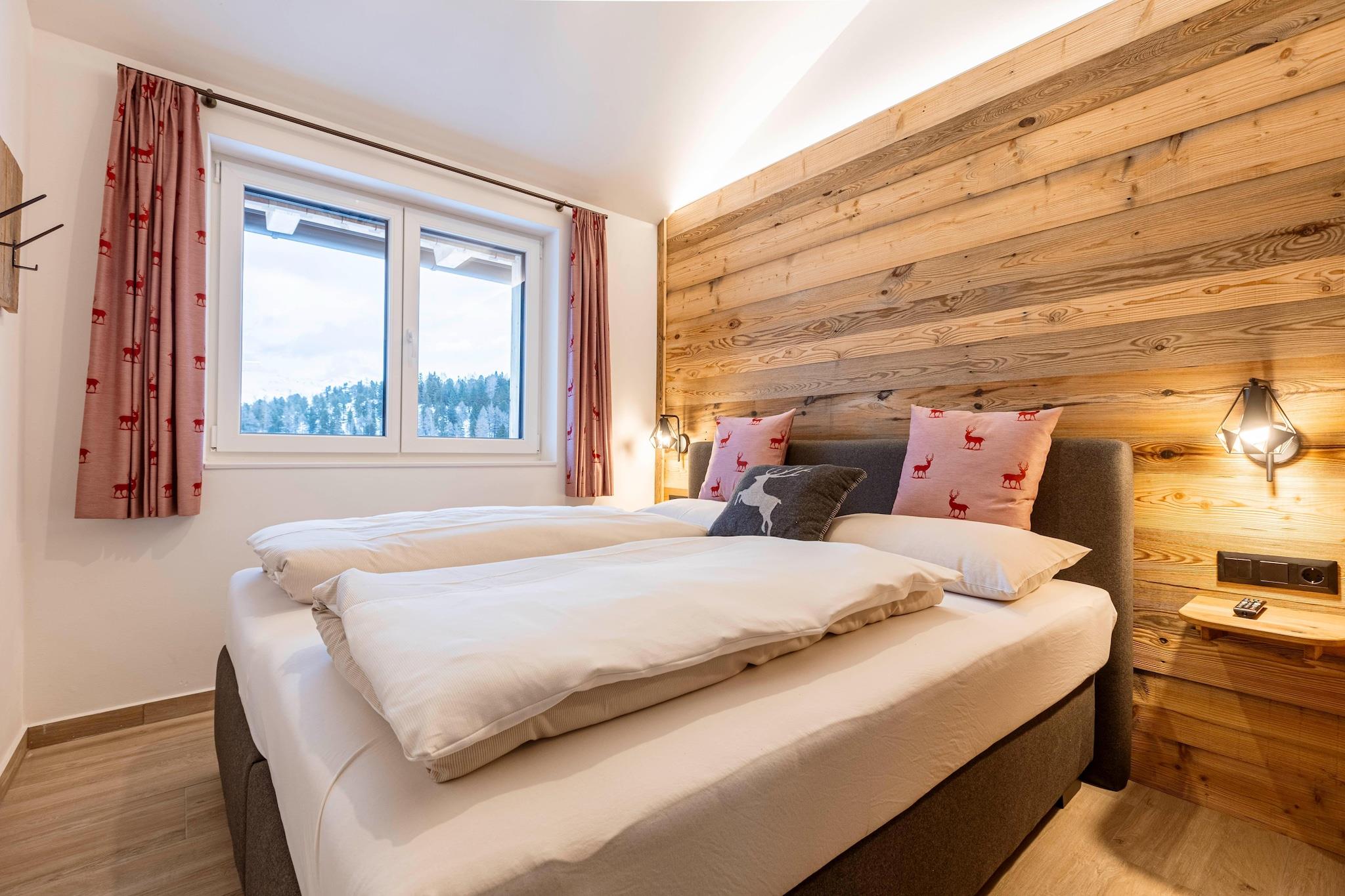 Oplev charmen og komforten i vores hyggelige alpelejlighed, som byder på plads til op til 8 personer på 73 m². Beliggende i en malerisk fyrreskov i cirka 1.800 m højde tilbyder dette indbydende tilflugtssted en dejlig blanding af moderne bekvemmeligheder og naturlig skønhed. Lejligheden har tre indbydende soveværelser: to med komfortable dobbeltsenge og et med to køjesenge, ideelt til familier eller grupper. To badeværelser med forfriskende brusere giver ekstra komfort. nyd den vidunderlige udsigt over bjergene. Lejligheden er beliggende i en rolig fyrreskov, der indbyder til mange udendørs aktiviteter. Om vinteren har du adgang til de nærliggende skiløjper og langrendsløjper, mens du om sommeren kan udforske vandrestier, mountainbikeruter og den betagende natur. Dit ophold inkluderer også det eksklusive Butler Card eller Butler Program, som beriger dit ophold i Alperne med et ekstra strejf af personlig service. Det åbne køkken er en kulinarisk fornøjelse og er udstyret med alt hvad du behøver for at tilberede måltider. Det omfatter bestik, køkkengrej, en keramisk kogeplade, en ovn, en opvaskemaskine og et køleskab med fryser. Yderligere faciliteter såsom brødrister, kedel og kaffemaskine sikrer, at du er udstyret med alt, hvad du har brug for. Et lille startsæt med opvaskemaskiner, opvaskemiddel, svamp, affaldsposer, rengøringsmidler og et viskestykke vil blive udleveret til dig ved ankomsten og sikrer en gnidningsløs start på dit ophold. Hold forbindelsen med gratis Wi-Fi og nyd en række forskellige kanaler på satellit-tv.