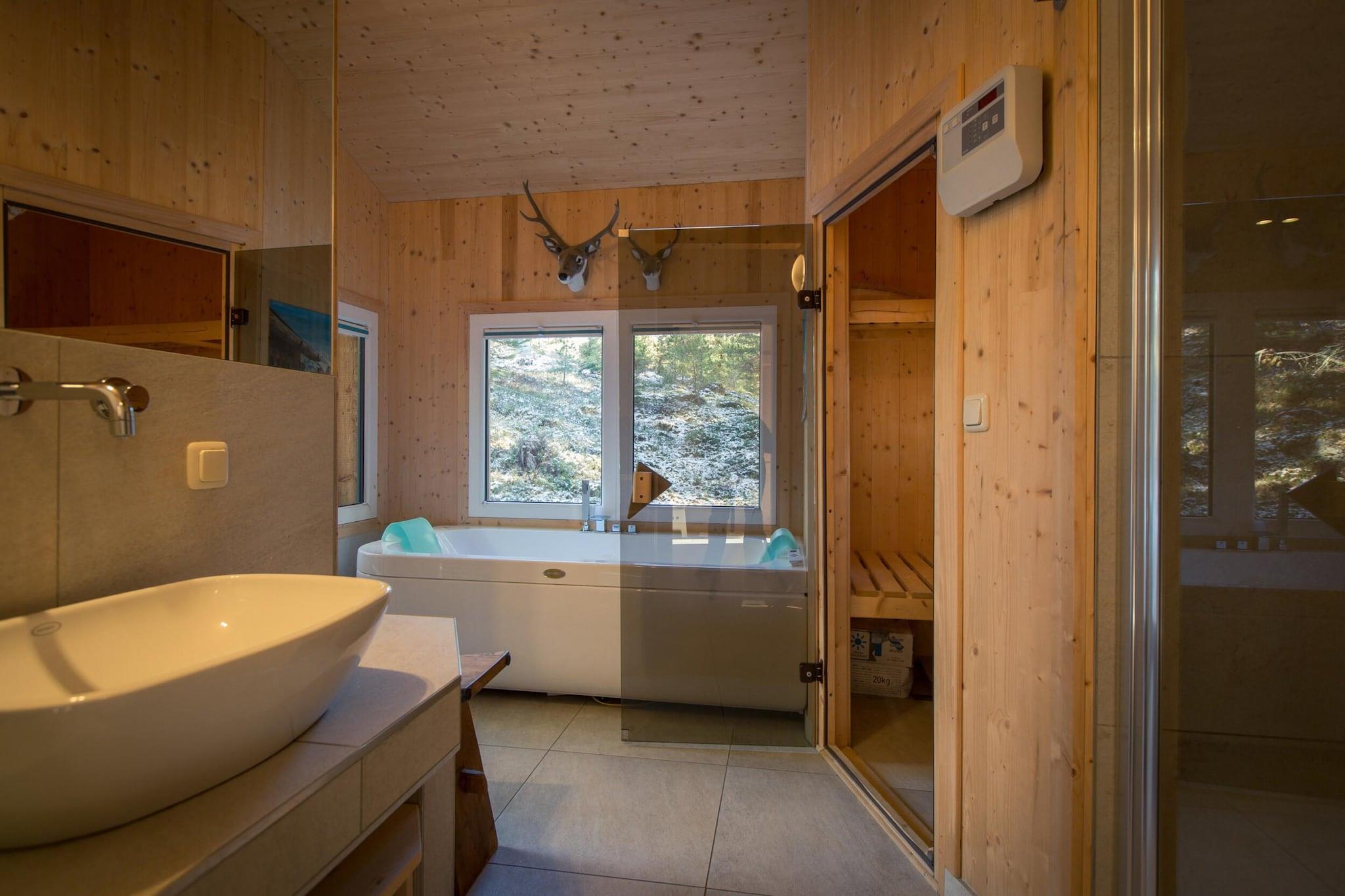 Oplev det ultimative bjergtilflugtssted i denne moderne 130 m² massiv træhytte, designet til at rumme op til 12 gæster med lethed. Set på baggrund af en betagende udsigt over bjergene tilbyder denne hytte en perfekt blanding af moderne komfort og rustik charme. Slap af i stil med førsteklasses bekvemmeligheder, herunder en finsk sauna og et boblebad, ideelt til at berolige dine muskler efter en dag på ski eller vandretur. Beliggende i en malerisk fyrreskov på 1.800 meter, er hytten bekvemt placeret kun 1 km fra skisportsstedet, og den charmerende bymidte og søen er også i nærheden. Denne beliggenhed er en ideel base for vandre-, cykel- og skientusiaster. Hytten har fem velindrettede soveværelser: fire med dobbeltsenge og et med to køjesenge, hvilket gør den ideel til familier eller grupper. To stilfulde badeværelser, hver med bruser, sikrer rigelig plads og bekvemmelighed. Nyd panoramaudsigten over bjergene fra den indbydende balkon, det perfekte sted at slappe af efter en dag med udforskning. Det åbne køkken er fuldt udstyret til at imødekomme alle dine kulinariske behov, med en keramisk kogeplade, ovn, opvaskemaskine og et rummeligt køleskab med fryser. Vigtige små apparater såsom brødrister, kedel og kaffemaskine er også til rådighed. Et startsæt med opvaskemaskiner, opvaskemiddel, en svamp, affaldsposer, rengøringsmidler og et viskestykke vil være klar til din bekvemmelighed ved ankomst. Hold forbindelsen med gratis Wi-Fi og nyd en række forskellige kanaler på satellit-tv. Forbedre dit ophold med vores Butler-kort eller Butler-program, der tilbyder personlig service og enestående assistance under hele dit besøg.