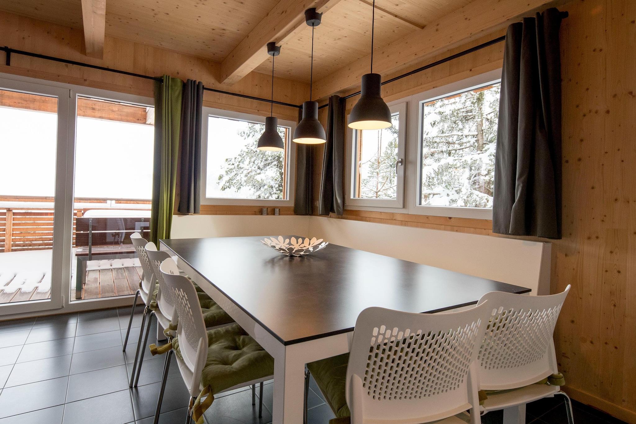 Velkommen til din perfekte alpine flugt i denne charmerende 120 m² massiv træhytte, designet til at rumme op til 12 gæster. Beliggende i en rolig fyrreskov i en højde af 1.800 meter, tilbyder denne indbydende hytte en harmonisk blanding af rustik charme og moderne komfort, der giver en ideel ramme for dit bjergeventyr. Slap af og nyd de fredfyldte omgivelser fra balkonen eller nyd de tilgængelige førsteklasses faciliteter. Slap af i den infrarøde sauna eller forkæl dig selv med et beroligende bad i boblebadet efter en dag med udforskning. Hytten har fire hyggelige soveværelser: to med komfortable dobbeltsenge, et med en dobbeltseng og en køjeseng, og et med to sæt køjesenge, hvilket gør den ideel til familier eller grupper. Tre moderne badeværelser, hver udstyret med bruser, sikrer rigelig plads og bekvemmelighed for alle gæster. Det åbne køkken er fuldt udstyret med alt hvad du behøver for at tilberede måltider, herunder en keramisk kogeplade, ovn, opvaskemaskine og et køleskab med fryser. Vigtige små apparater såsom en brødrister, kedel og kaffemaskine leveres også sammen med et startsæt, der inkluderer opvaskemaskinefaner, opvaskemiddel, en svamp, affaldsposer, rengøringsmidler og et viskestykke. Hold forbindelsen med gratis Wi-Fi og nyd en række kanaler på satellit-tv. Bekvemt beliggende kun 1 km fra skisportsstedet og tæt på den charmerende bymidte og den maleriske sø, tilbyder denne chalet nem adgang til en række aktiviteter, herunder skiløb, cykling, vandreture, mountainbiking og gåture. Forbedre dit ophold med vores Butler-kort eller Butler-program, der giver personlig service og enestående assistance under hele dit besøg.