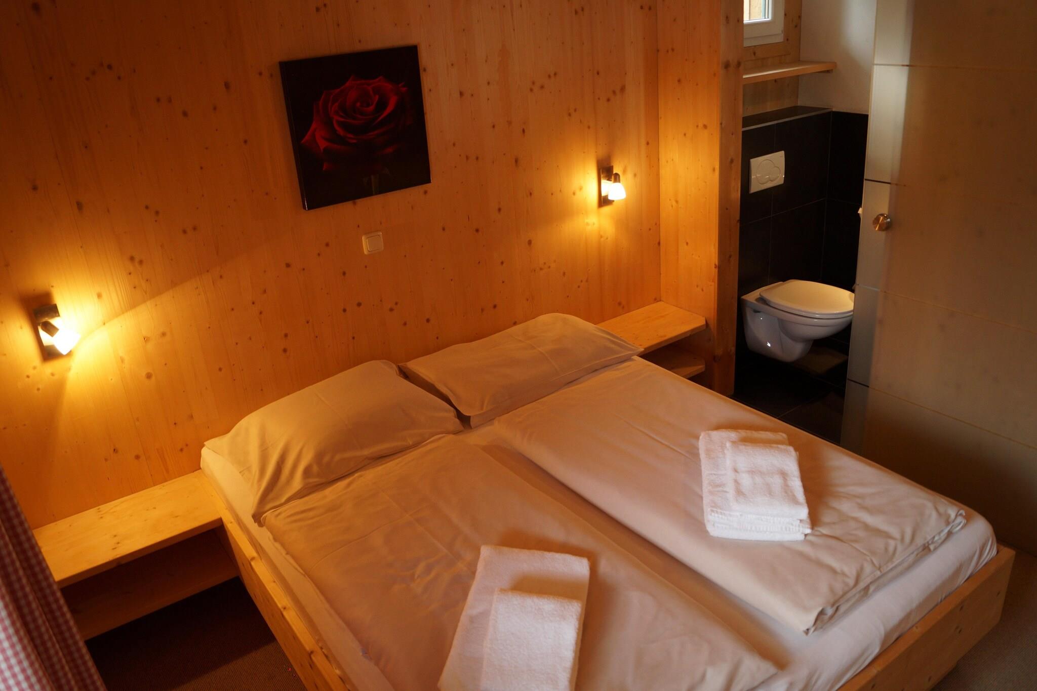 Oplev den ultimative alpine ferie i denne charmerende 130 m² massiv træhytte, designet til komfortabelt at være vært for op til 12 gæster. Beliggende i en rolig fyrreskov 1.800 meter over havets overflade, kombinerer denne rummelige hytte rustik elegance med moderne komfort og tilbyder et perfekt tilflugtssted for familiesammenkomster eller gruppeferier. Træd ud på balkonen for at nyde den betagende udsigt over de omkringliggende bjerge og skov. Efter en dag med udforskning kan du slappe af i den infrarøde sauna eller nyde et afslappende bad i boblebadet. Hyttens førsteklasses beliggenhed gør den ideel til skiløb, vandreture og cykling, med skisportsstedet tæt på og en række udendørs aktiviteter lige uden for døren. Hytten kan prale af fem velindrettede soveværelser: tre med dobbeltsenge, et med køjesenge og et med to sæt køjesenge, hvilket giver fleksible sovearrangementer for alle gæster. Med fire moderne badeværelser, hver med bruser, er der rigelig bekvemmelighed for alle. Det åbne køkken er fuldt udstyret til at imødekomme alle dine kulinariske behov, herunder bestik, køkkengrej, en keramisk kogeplade, ovn, opvaskemaskine og et køleskab med fryser. Yderligere faciliteter såsom brødrister, kedel og kaffemaskine tilbydes også. For nemheds skyld vil et lille startsæt med opvaskemaskiner, opvaskemiddel (prøve), svamp, affaldssække, rengøringsmidler og et viskestykke være tilgængeligt ved din ankomst. Hold forbindelsen med gratis Wi-Fi og nyd underholdning på satellit-tv. Med Butler-kortet eller Butler-programmet inkluderet, vil du modtage personlig service for at forbedre dit ophold. Oplev den perfekte blanding af komfort, bekvemmelighed og naturlig skønhed i denne dejlige alpine hytte.